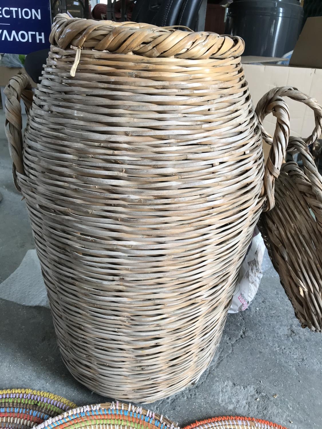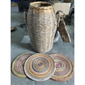 Large Vintage Cane Traditional Basket With 3x Serving Cane Traditional Mats