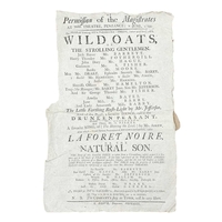 (Early Stagecoach Broadside) O.[rion] Adams Printer Starmar's New Machine, On Steel Springs, From Plymouth to Exon, In One Day, 'Sets out from the Prince George Inn, Fox-hole-Kay, Tuesdays, Thursdays, and Saturdays, Returns from London Inn, Exon, Mondays, Wednesdays, and Fridays, And Carries Passengers at Fifteen Shillings each,' p.1 to recto, 36.5cm x 24.5cm, three folds, light finger soiling to margins, very small nibbles and tears, good to vg, Printed by O. Adams, in South-Side-Street, Plymouth, 1760. Orion Adams (1717–1797) was an itinerant provincial printer active in several British and Irish towns, including Plymouth in the late 1750s. There, he issued the Plymouth Magazine (1758) and helped establish the town's earliest periodical press (Maxted, Devon Book Trades).