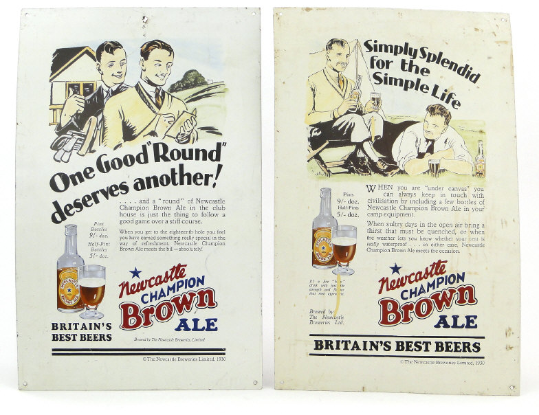 Two Newcastle Brown Ale metal advertising signs, each 61cm x 38cm