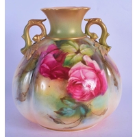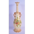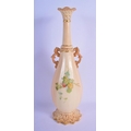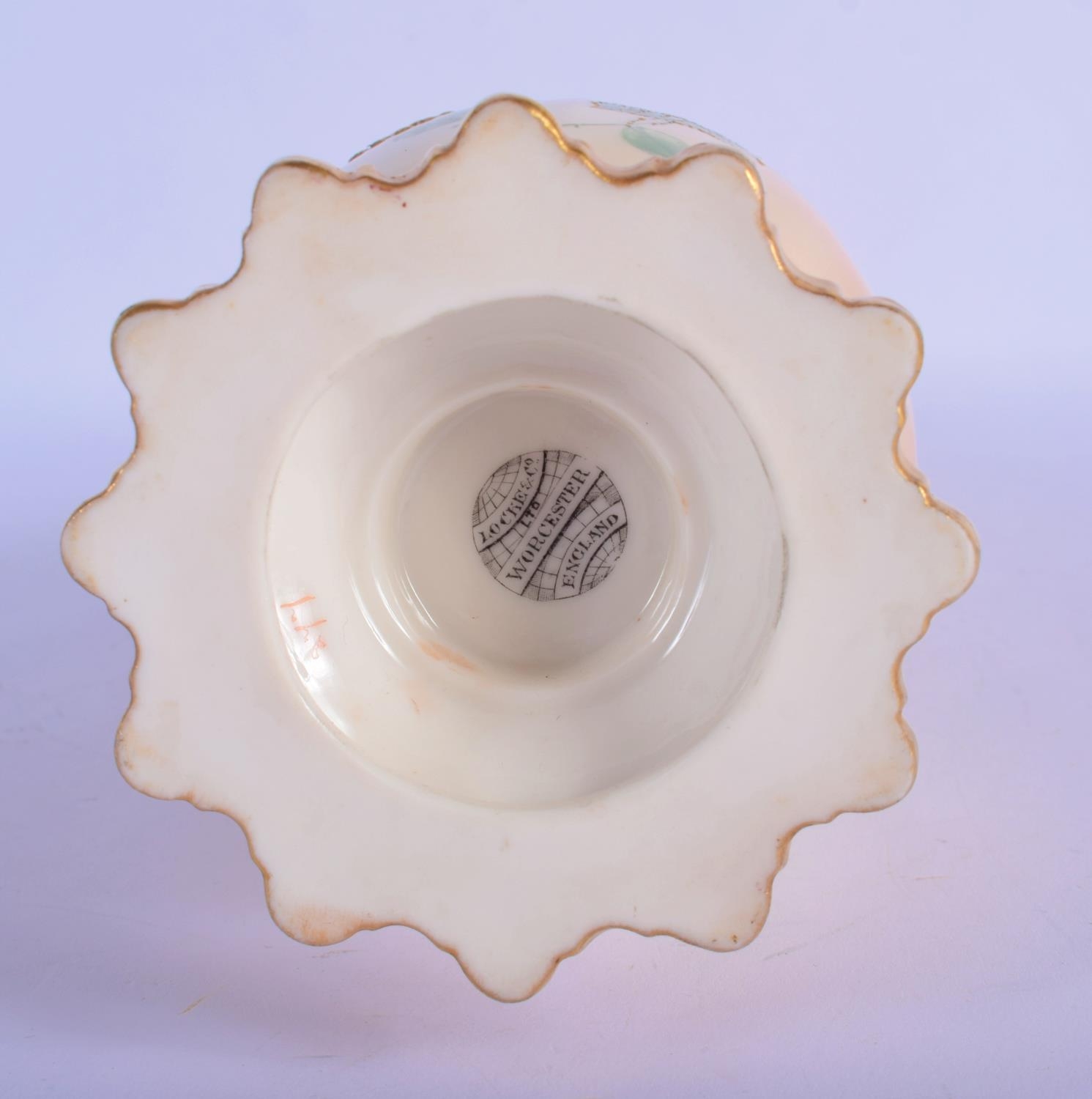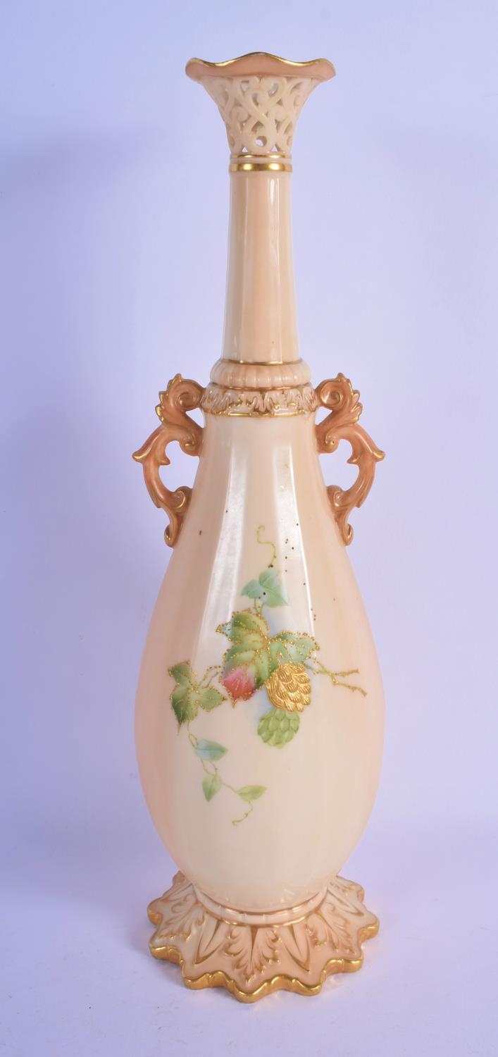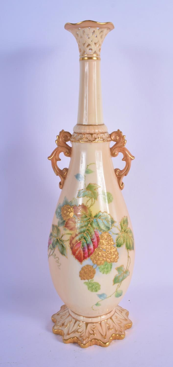 Locke and Co Worcester vase with reticulated neck painted with flowers and leaves hightened in gold c. 1900. 32.5cm High