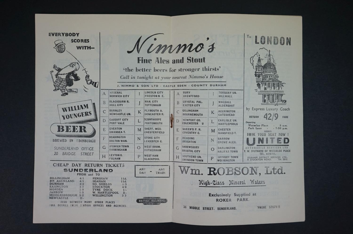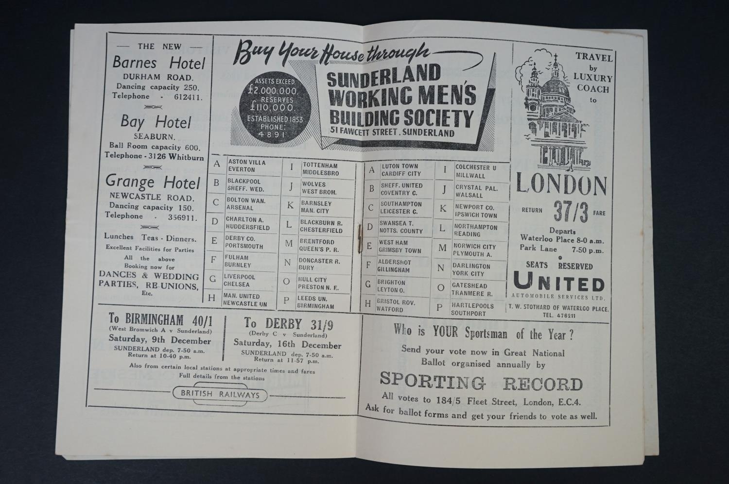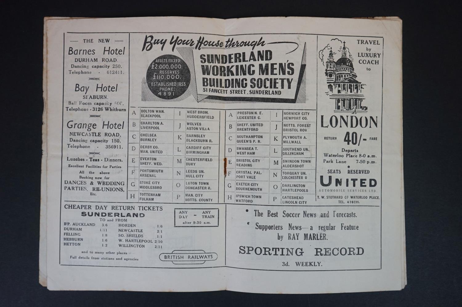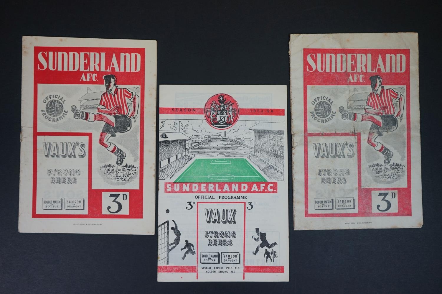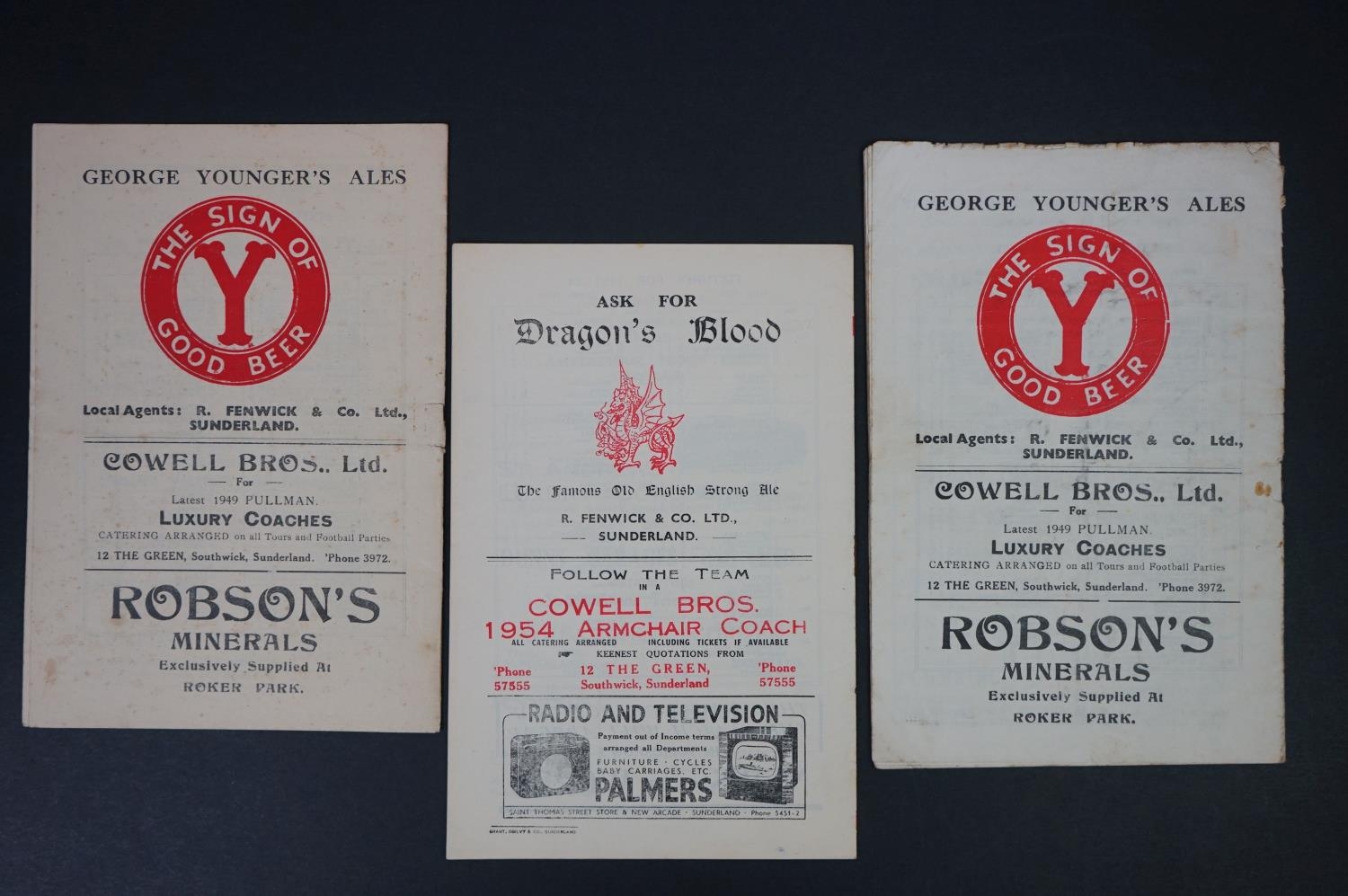 Three early Sunderland home football programmes to include Stoke City 2nd Dec 1950 (slightly loose pages), Newcastle United 26th March 1951 (poor) and Fr Leeds United 30th Jan 1954 (vg)