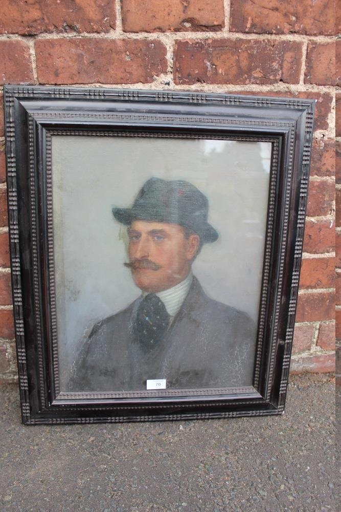 A LATE 19TH / EARLY 20TH CENTURY HEAD AND SHOULDER PORTRAIT STUDY OF A GENTLEMAN WEARING A HAT, unsigned, oil on canvas, framed in nineteenth / twentieth century Dutch ebonised frame and glazed, 49 x 39 cm