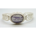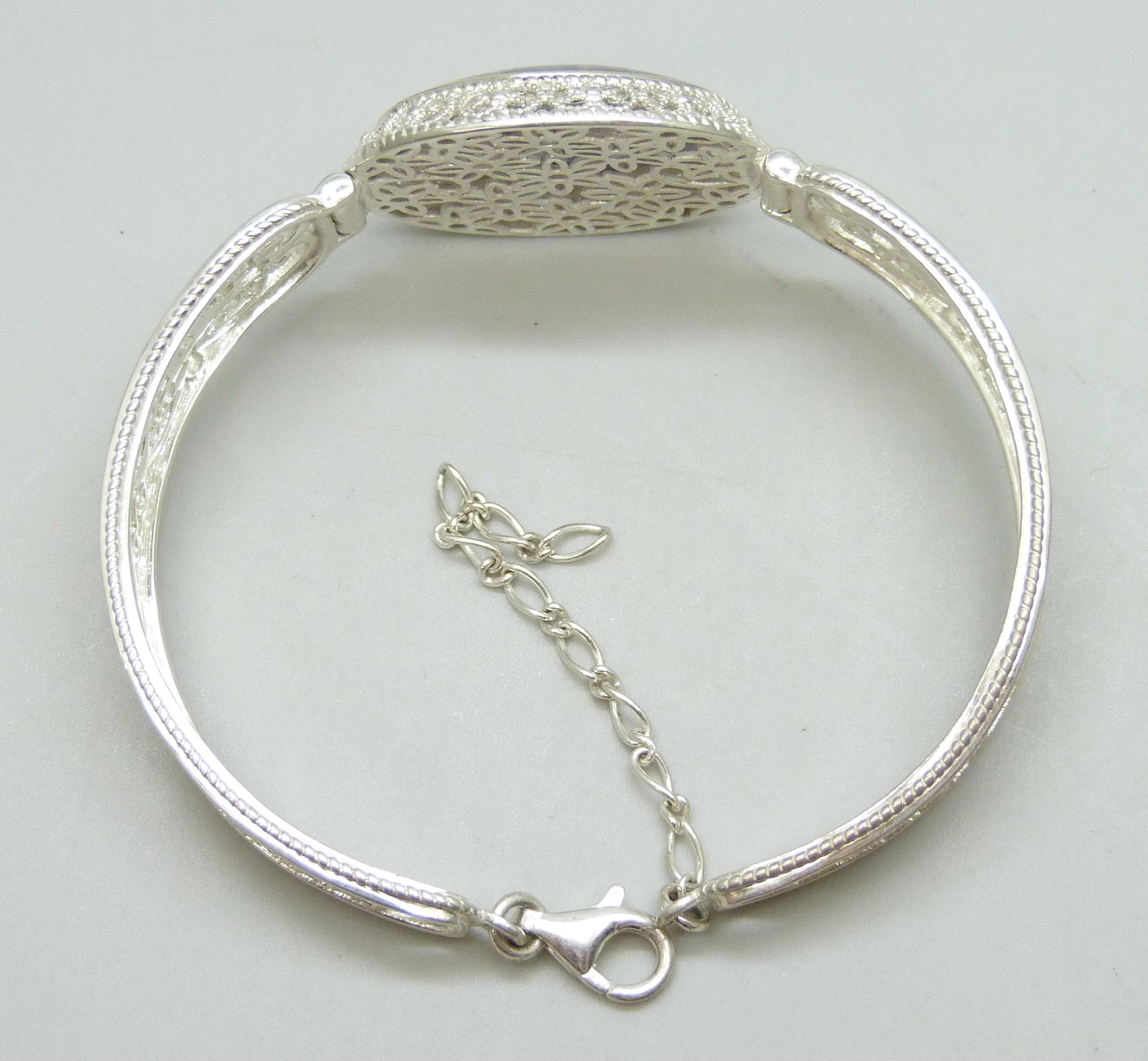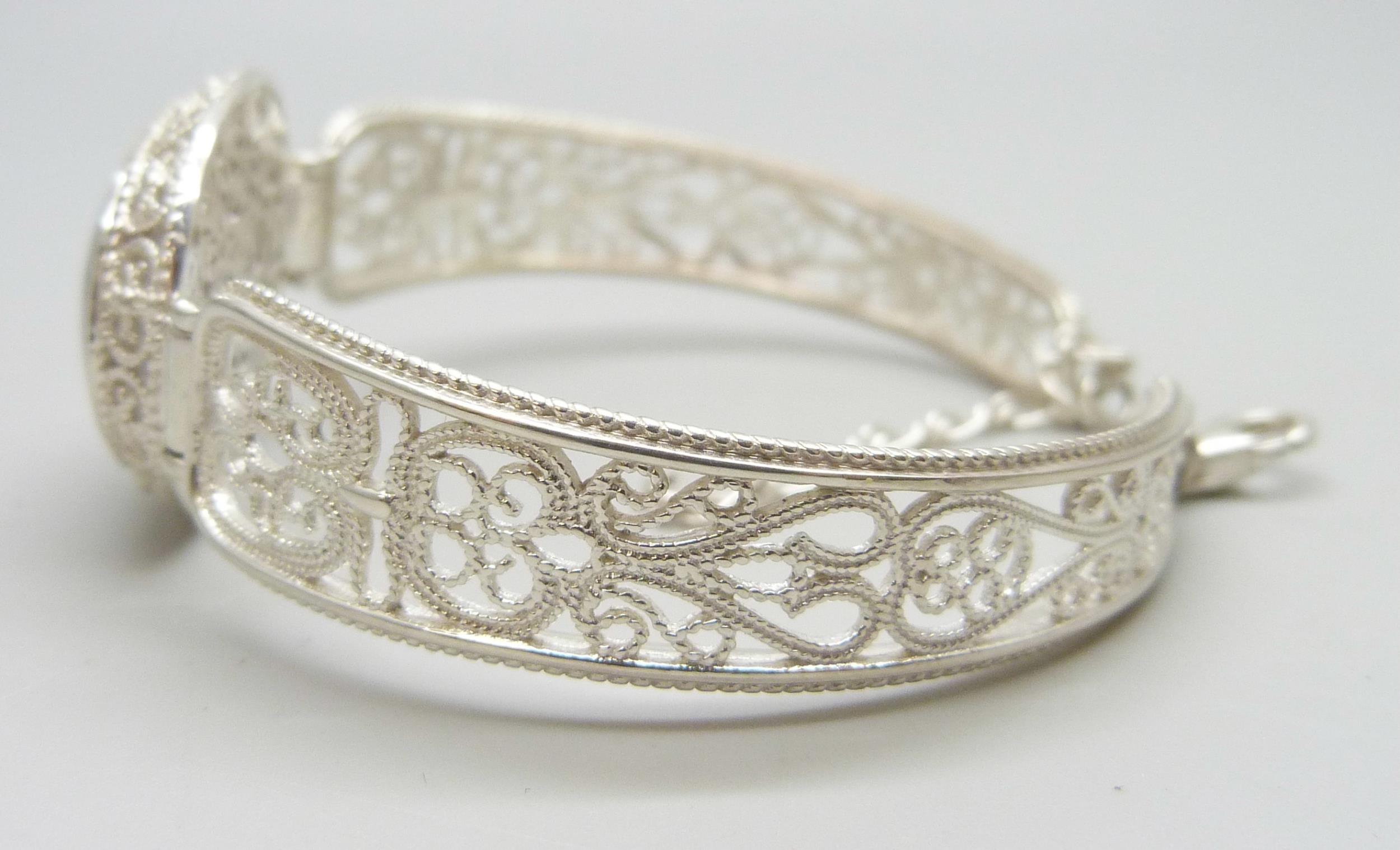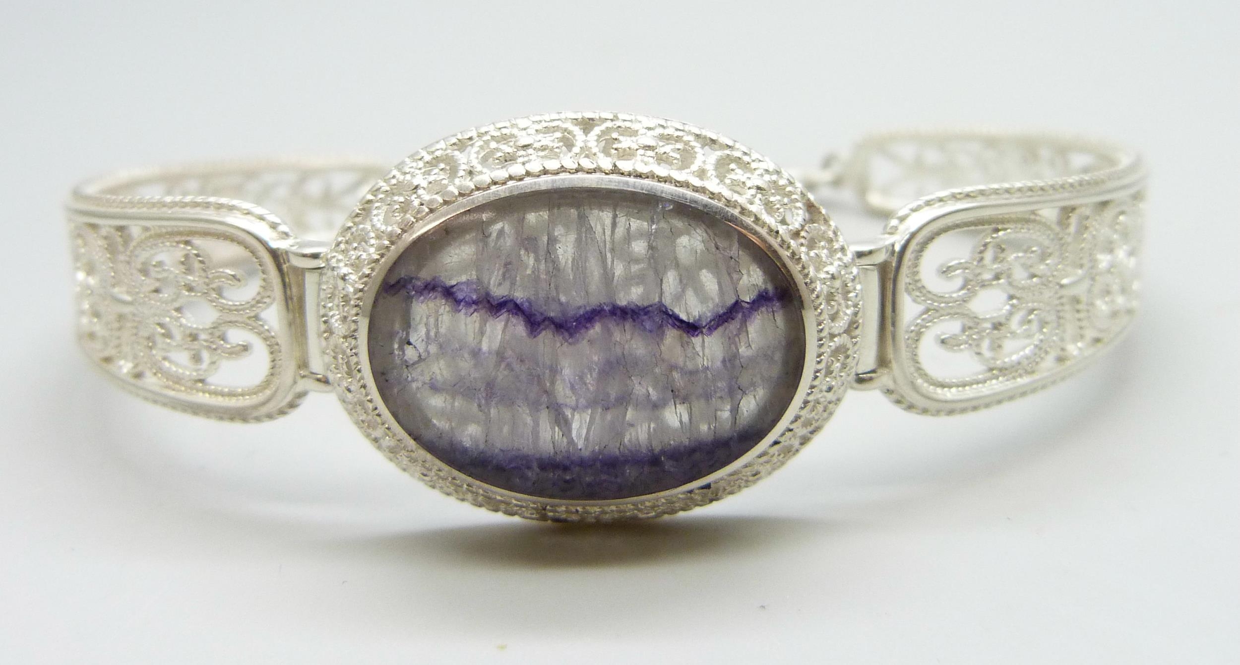 A silver filigree bracelet set with Blue John, by Andrew Elliot, 19g