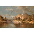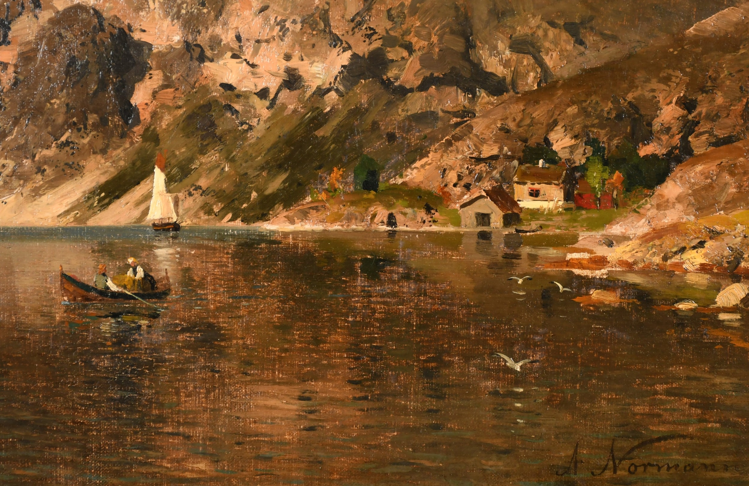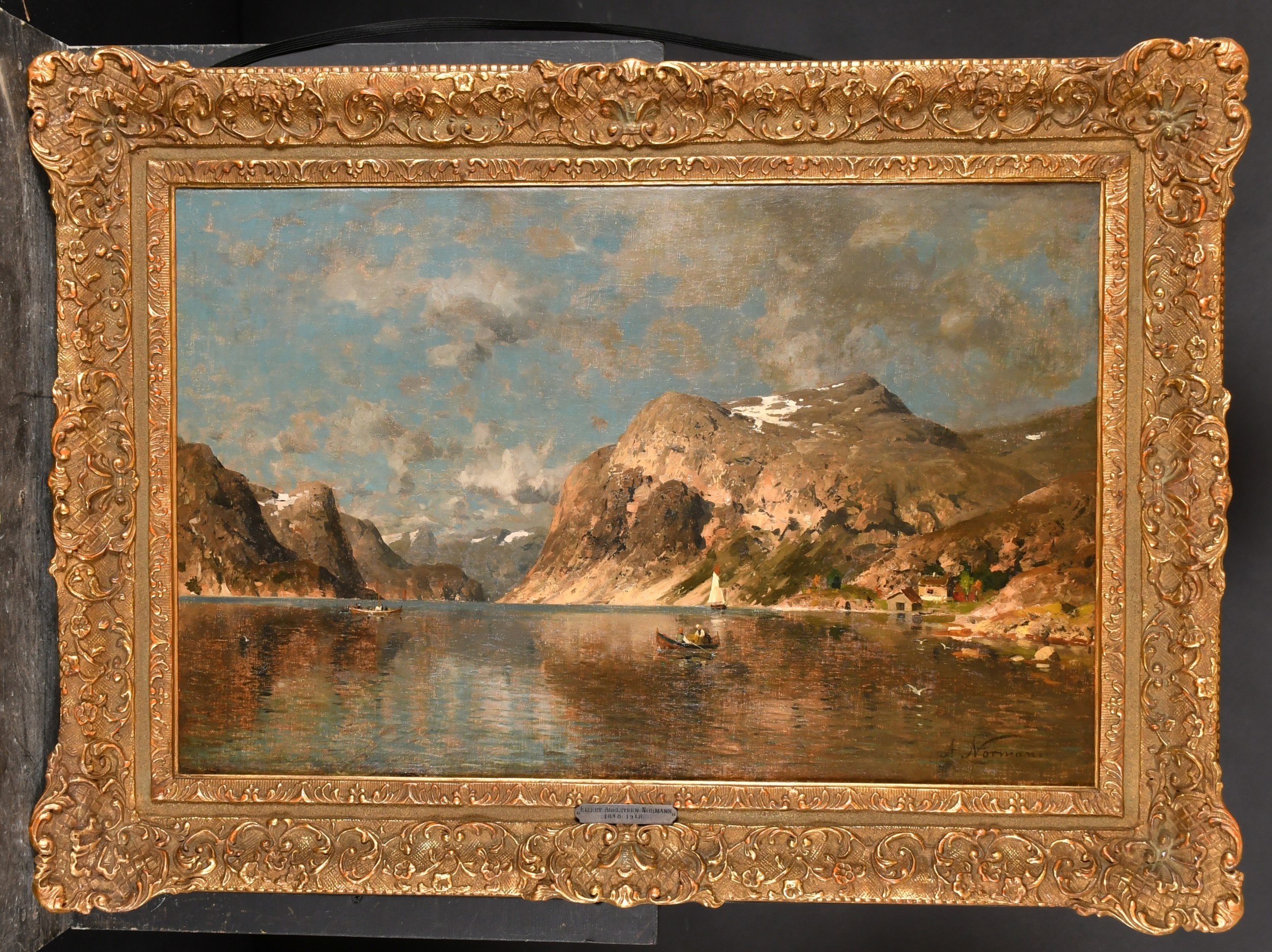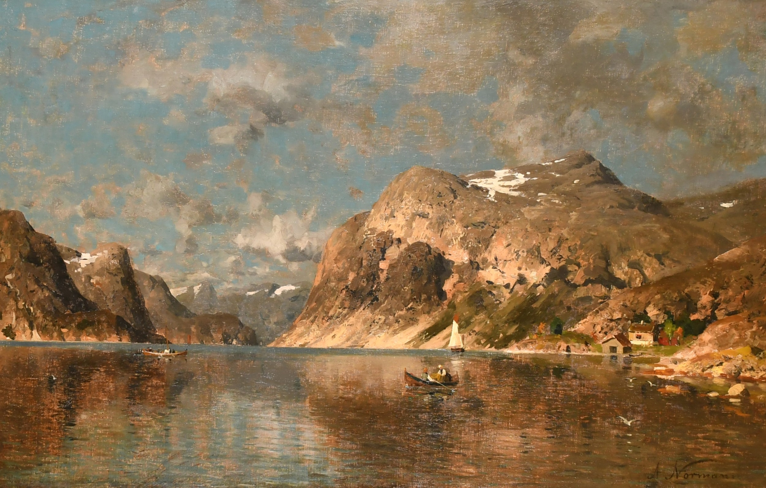 Eilert Adelsteen Normann (1848-1918) Norwegian. A Fjord Scene, Oil on canvas, Signed, 19" x 29.25" (48.2 x 74.3cm)