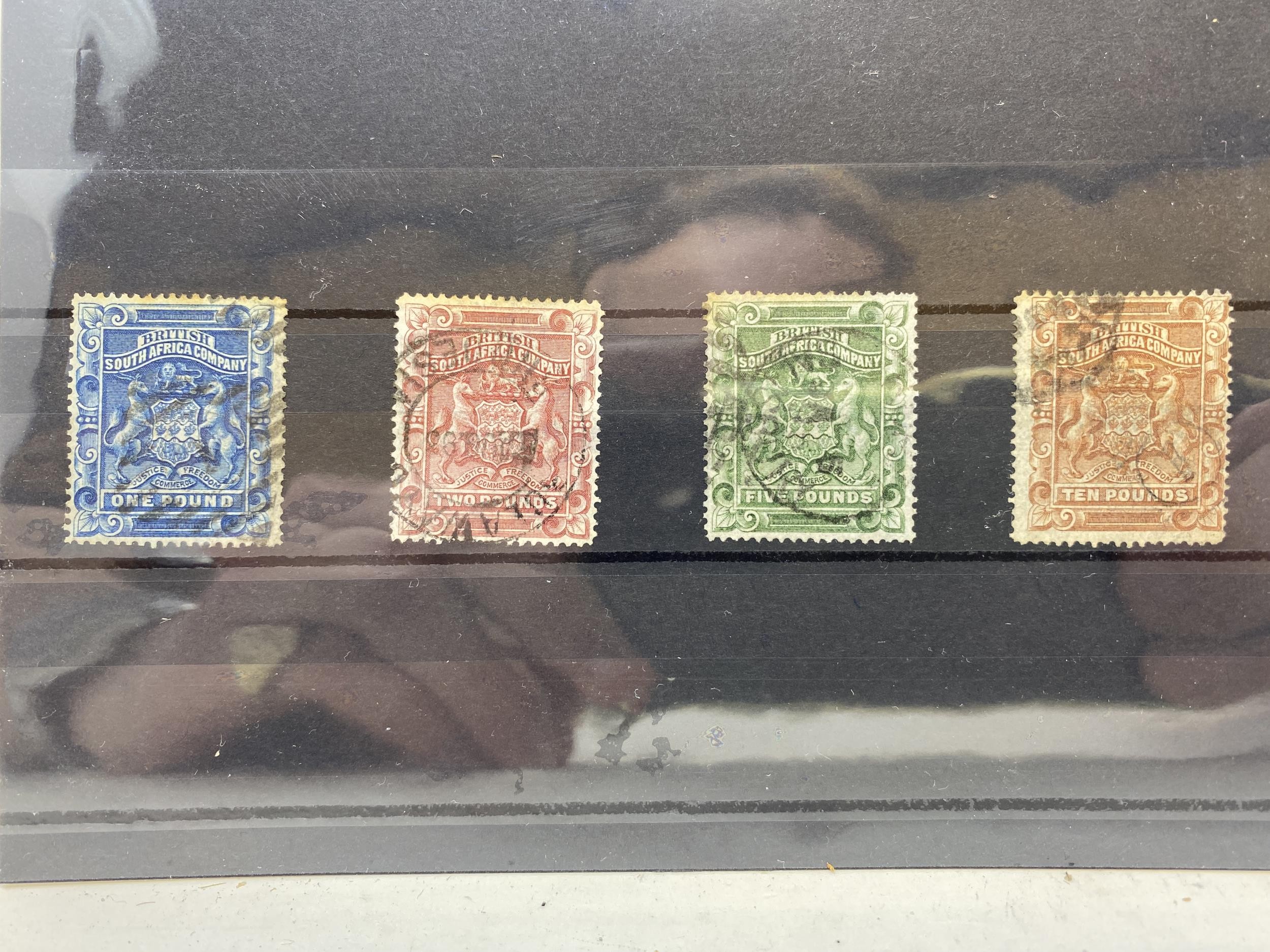 Rhodesia- Rhodesia- 1892-93, £1, £2, £5, and £10 used, some toning to the perfs on the £1 and £5 nevertheless a scarce set. SG10-13, cat. £1490