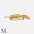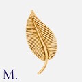 GEORGES LENFANT FOR MAUBOUSSIN. A Gold Leaf Brooch in 18ct yellow gold with tightly woven gold wire sculpted in a leaf design. Signed Mauboussin and serial numbered. French marks for 18K gold with Georges Lenfant maker's mark.