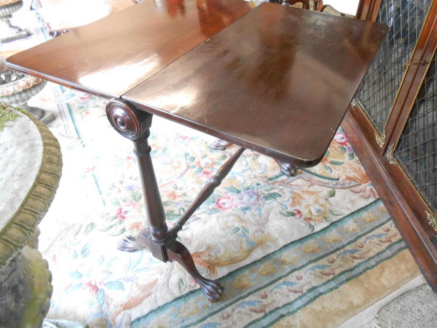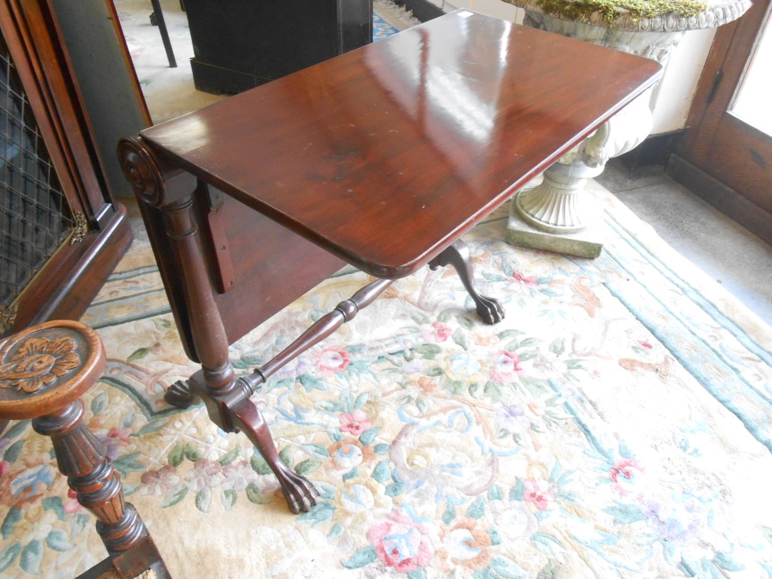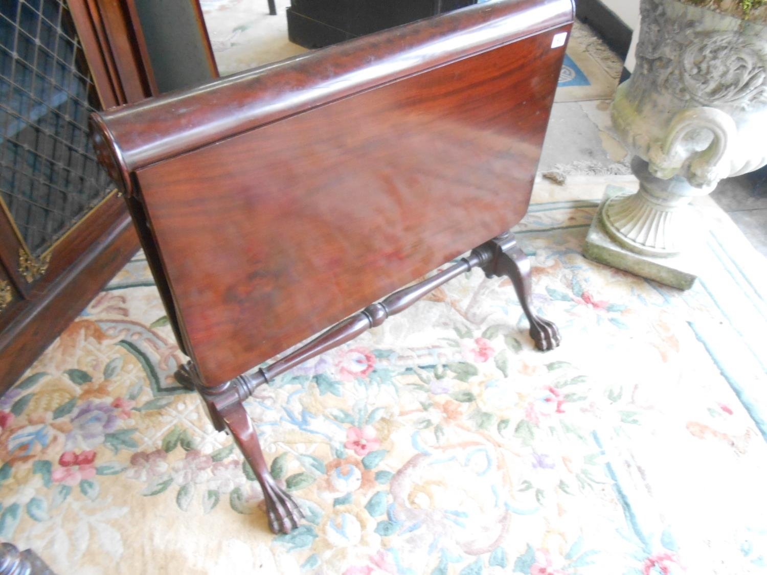 A Victorian mahogany Sutherland table with roll top, two deep drop flaps, on turned legs and feet - 32in. wide