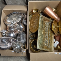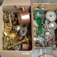 A BOX OF CLOISONNE ENAMEL AND A BOX OF MISCELLANEOUS METALWORK