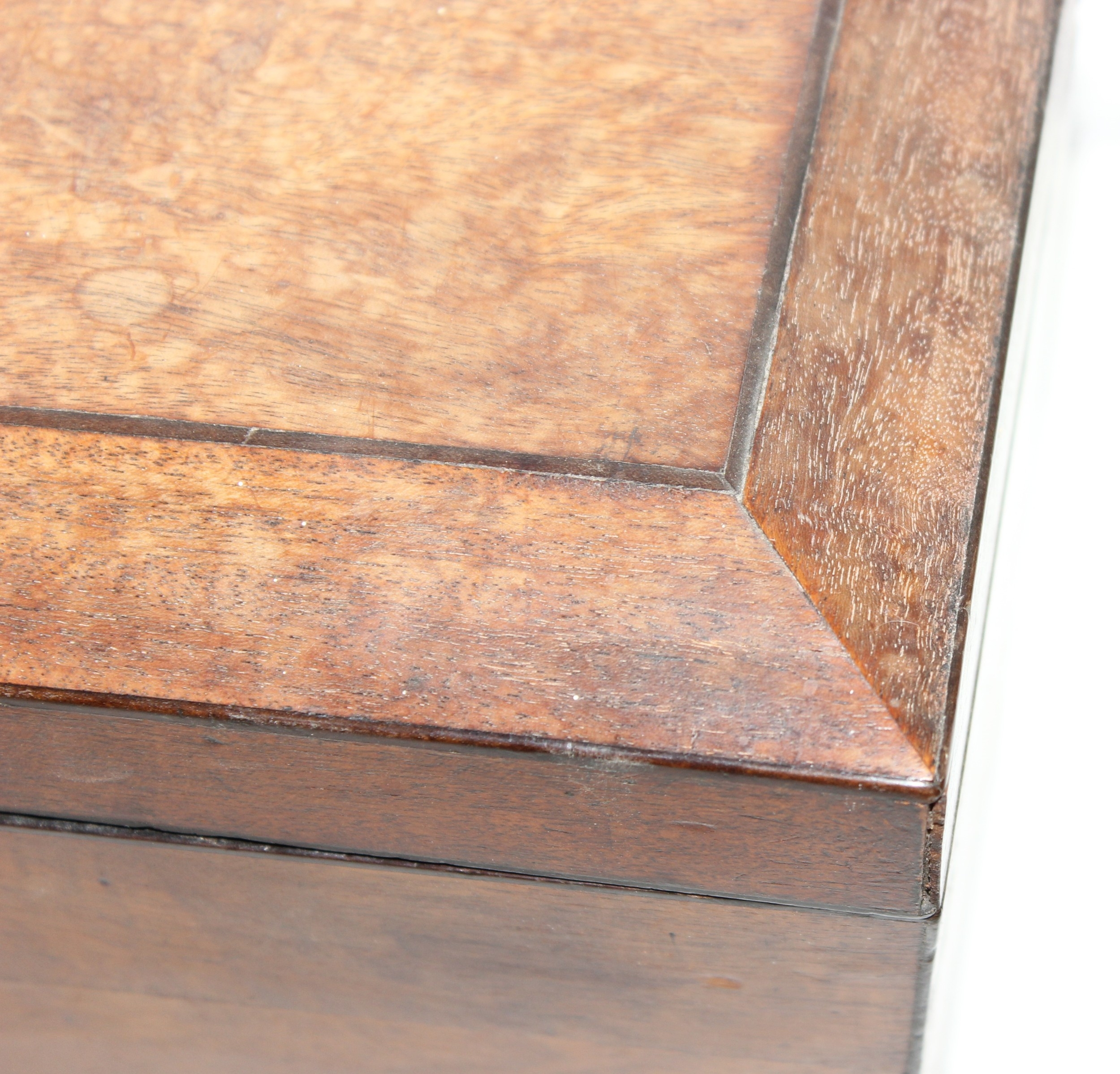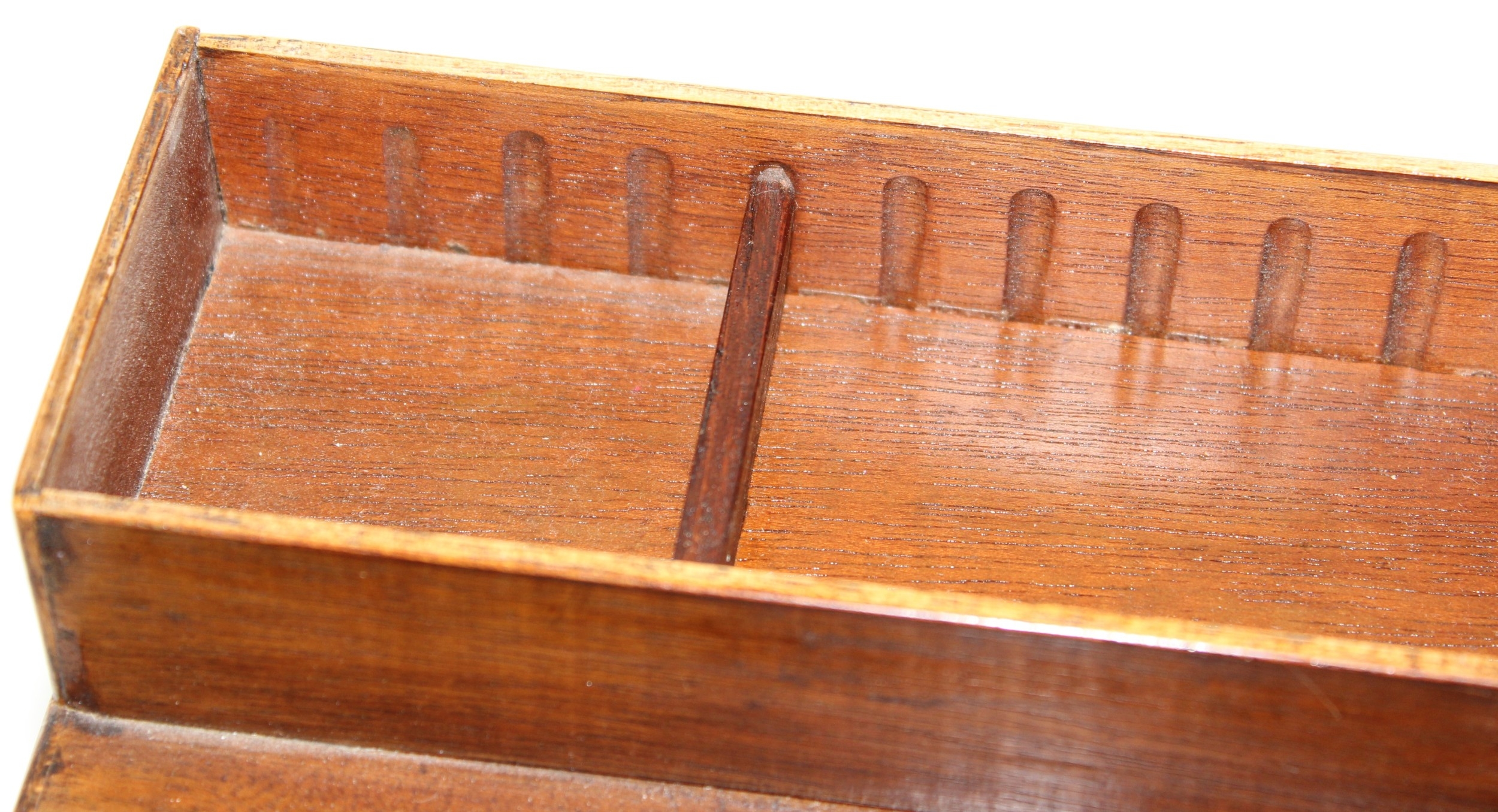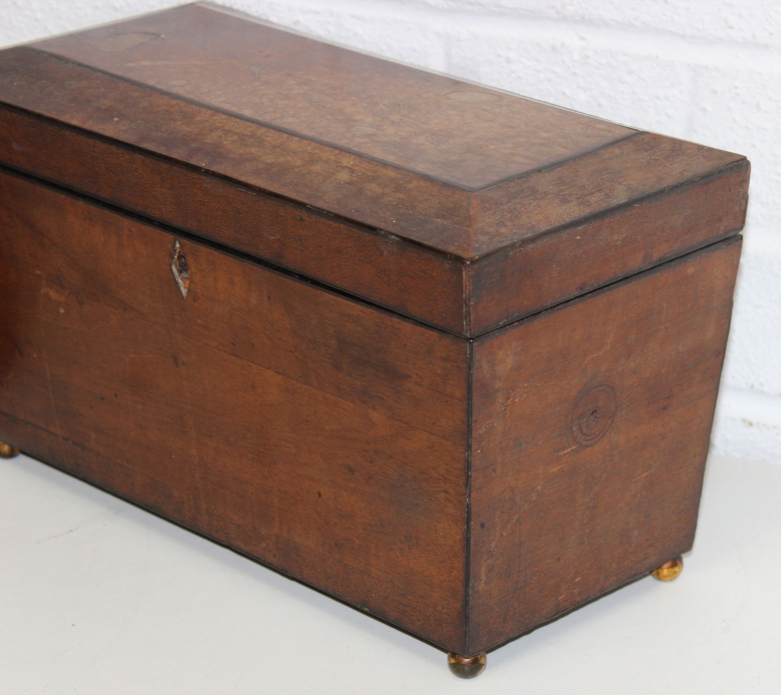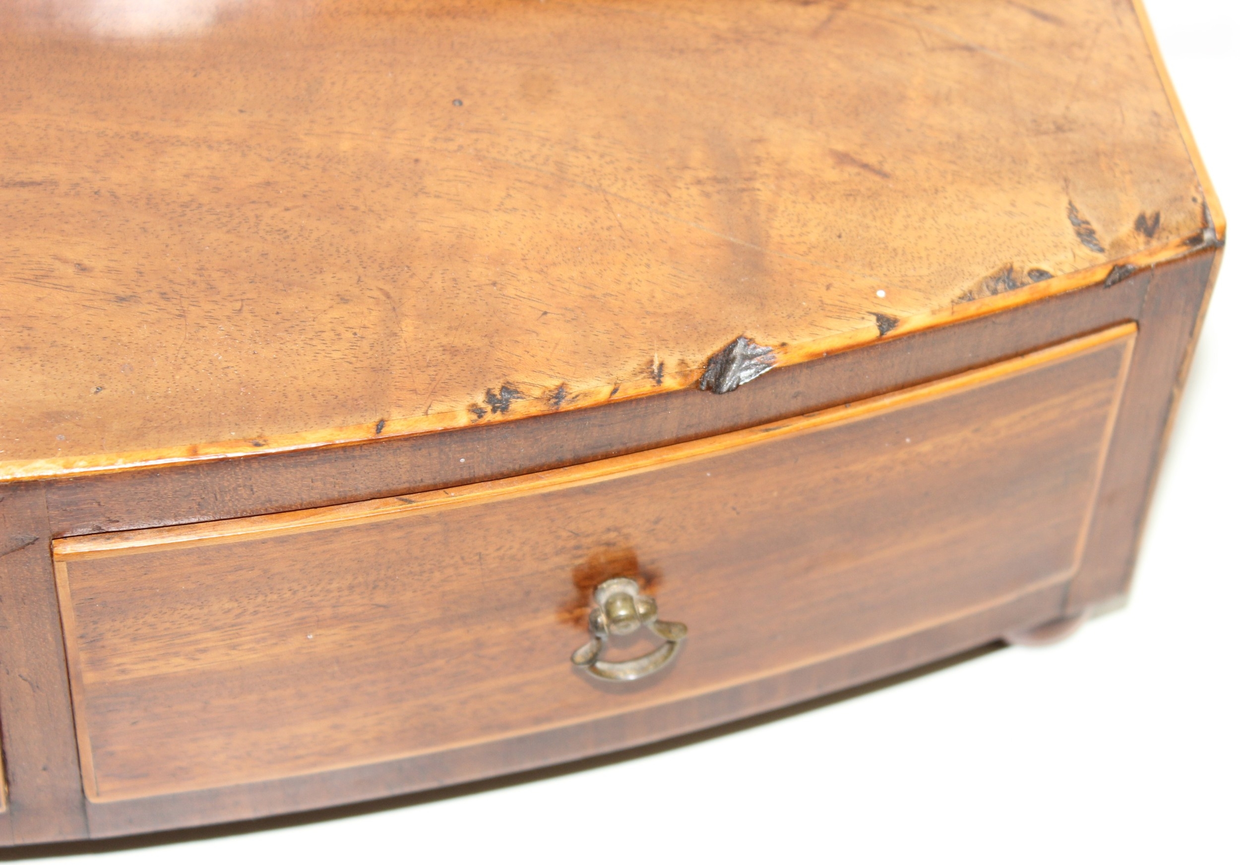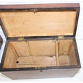 A Victorian mahogany tea caddy with partial interior and a desktop stationary box with bow front, two drawers and lift up lid, 37cm wide [2]