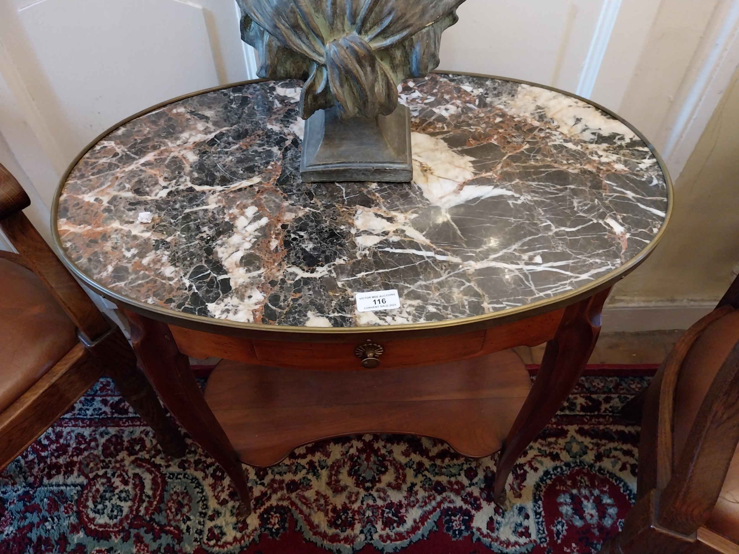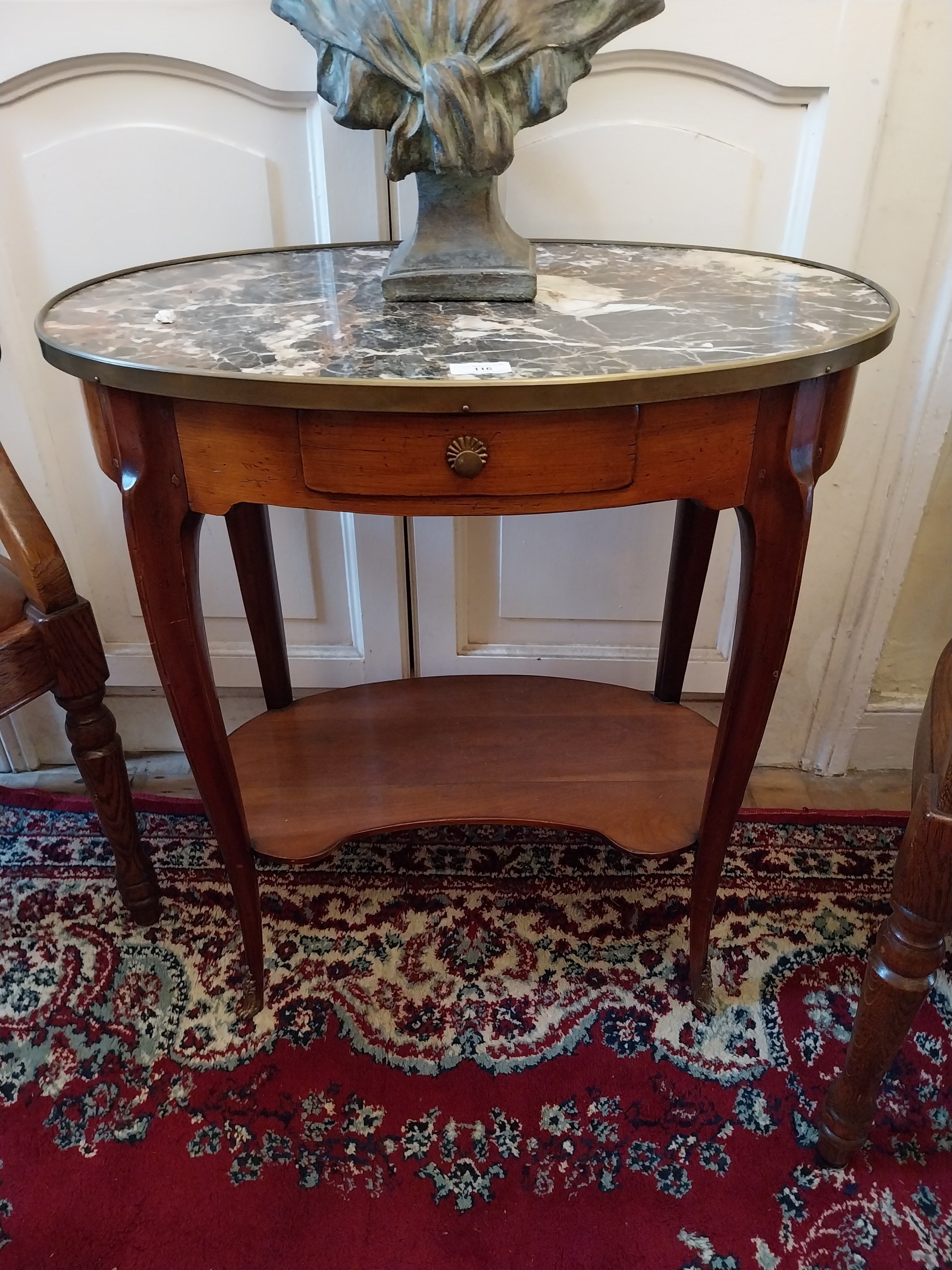 Good quality French walnut lamp table with inset marble top with ormolu mounts. {71 cm H x 65 cm W x 41 cm D}.