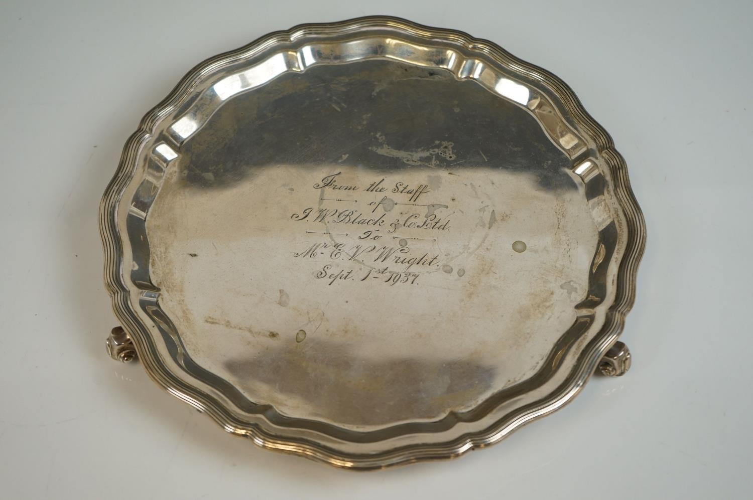A fully hallmarked sterling silver salver, maker marked for S Blanckensee & Son Ltd and assayed in Chester,