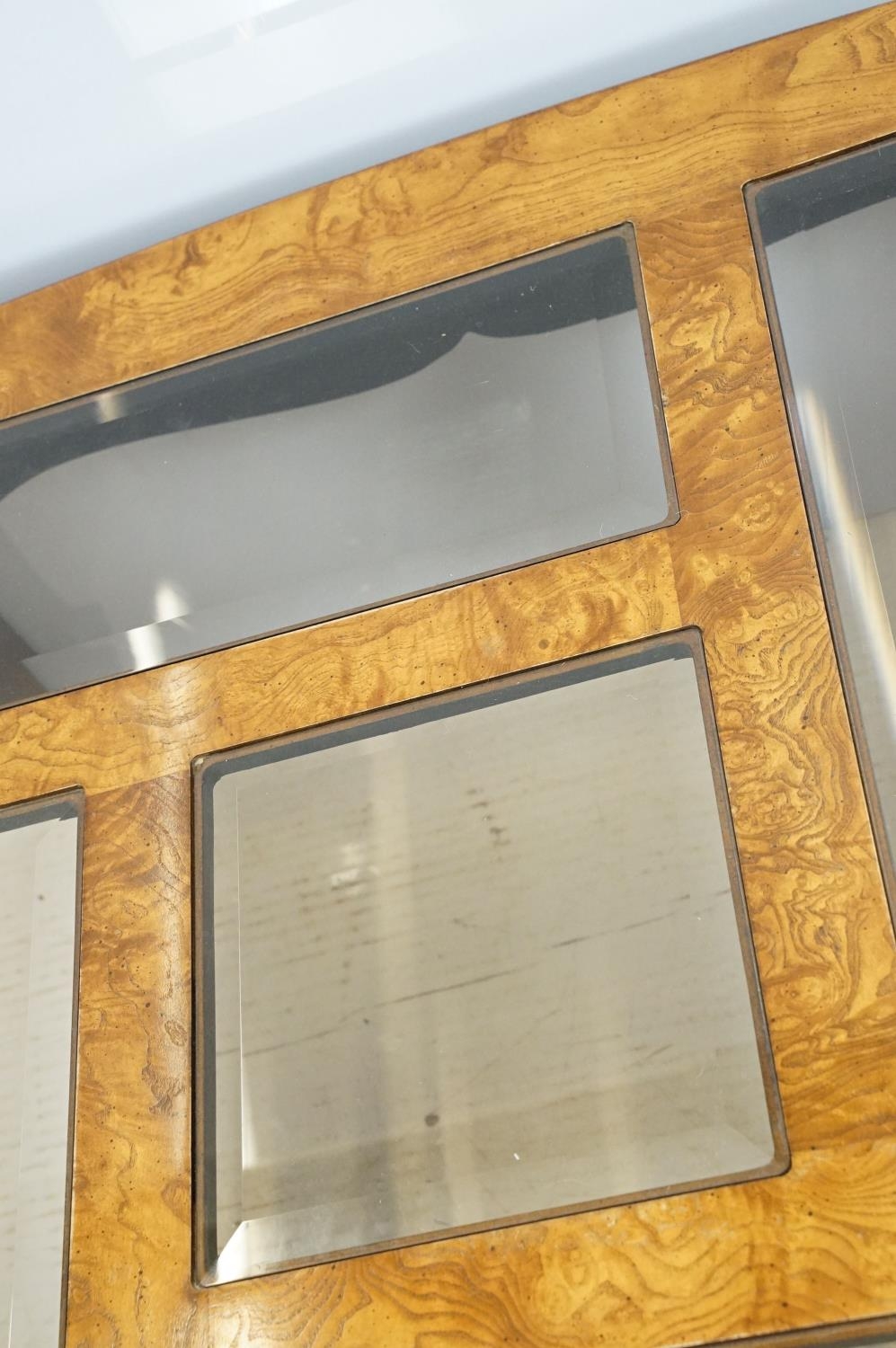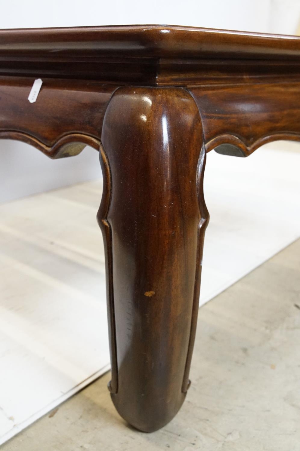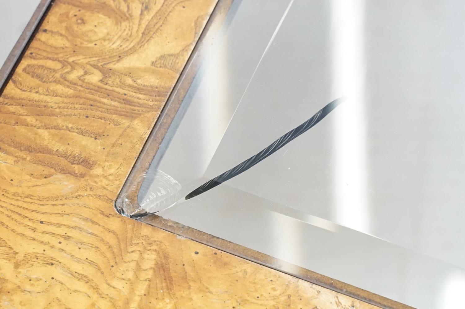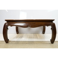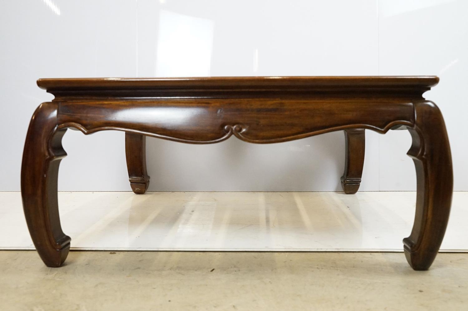 Walnut coffee table, in the Oriental style, with five bevelled glass panels, 44cm high x 96.5cm wide x 96cm deep