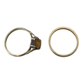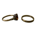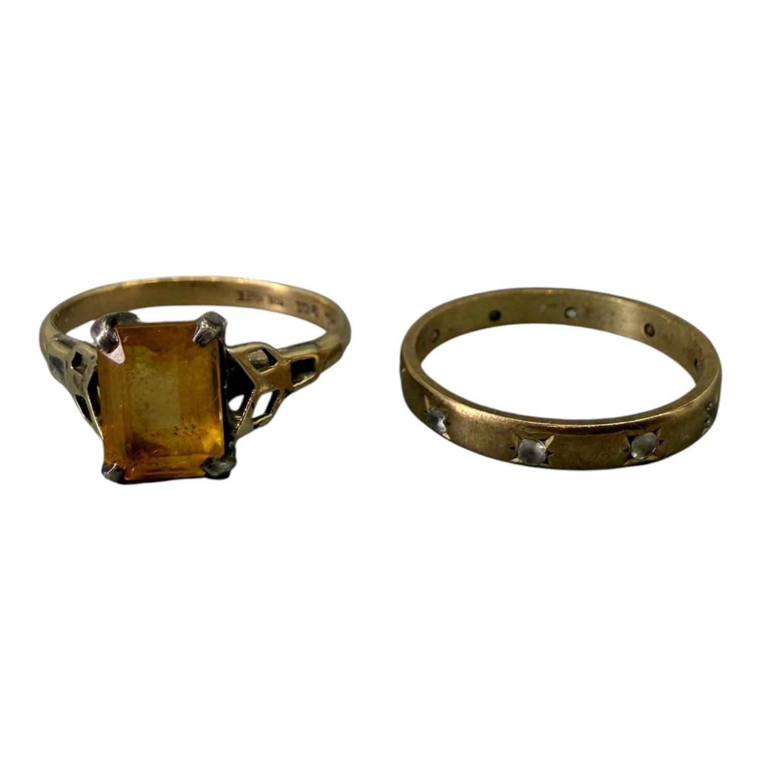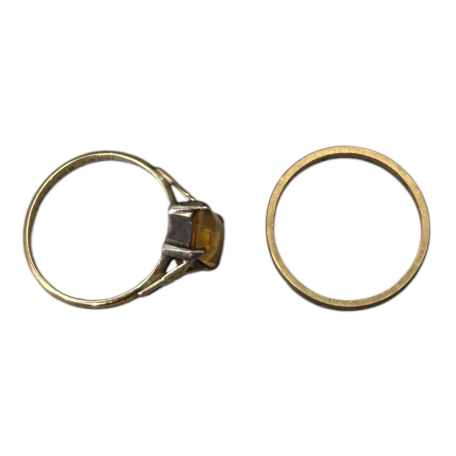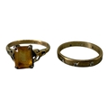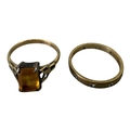 Together with another 9ct gold ring, emerald cut citrine (approx. 8mm x 6mm) set in a silver mount, connected to gold openwork design shoulders and shank.