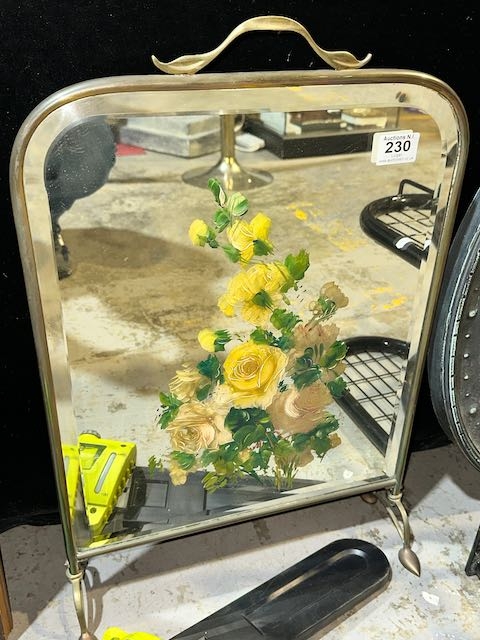 Vintage Mirror Backed Fire Screen With Hand Painted Scene