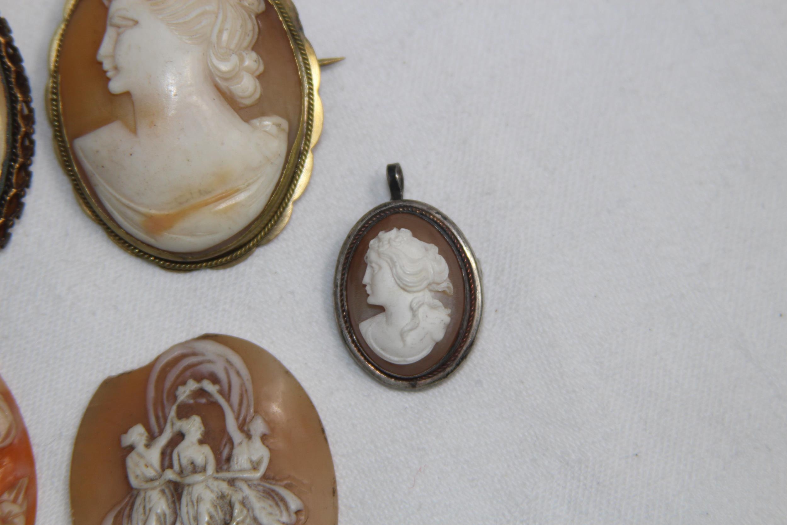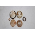 COLLECTION OF SIX 19TH & EARLY 20TH CENTURY CAMEOS, THREE SET AS BROOCHES