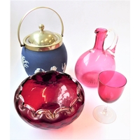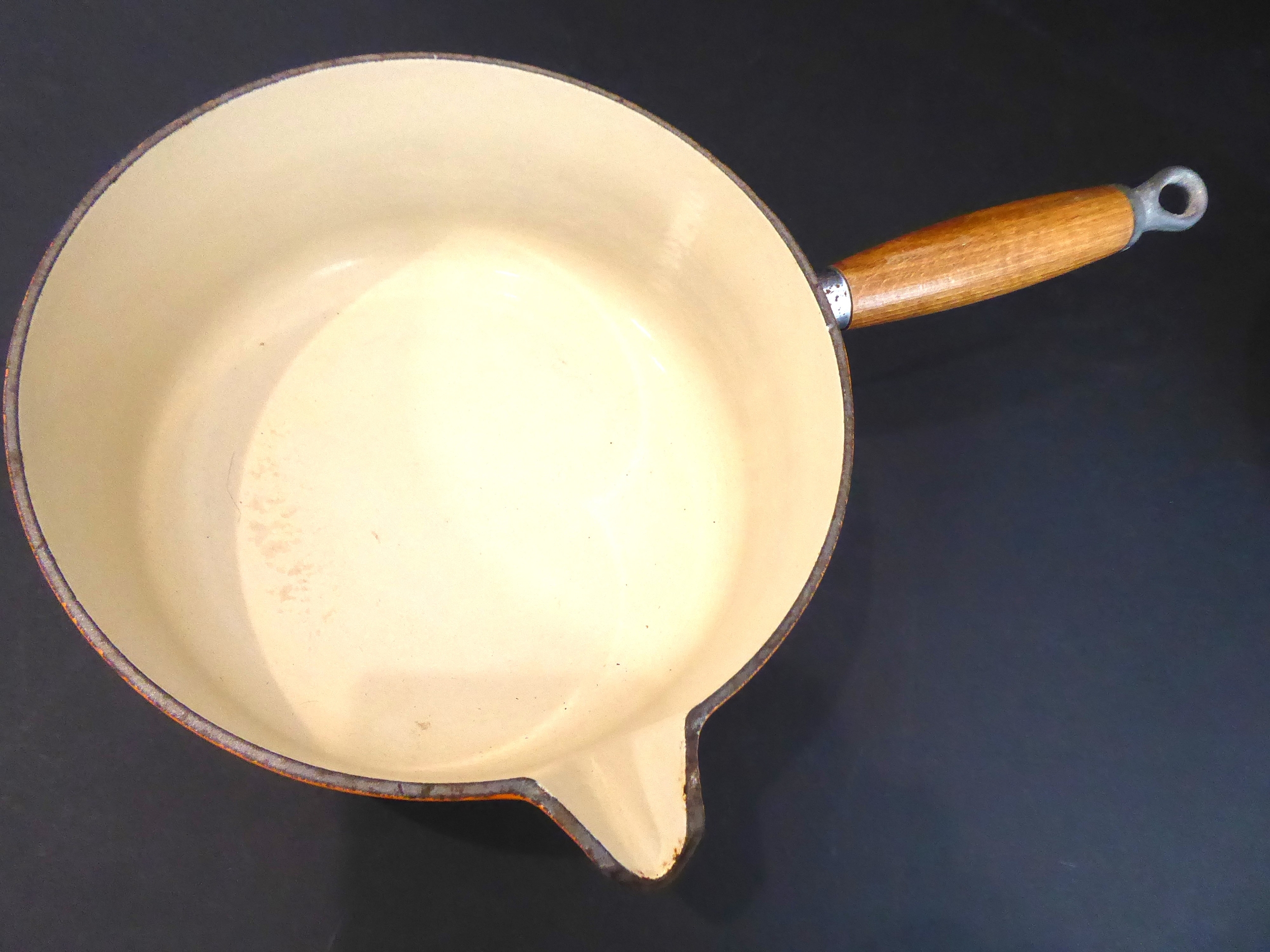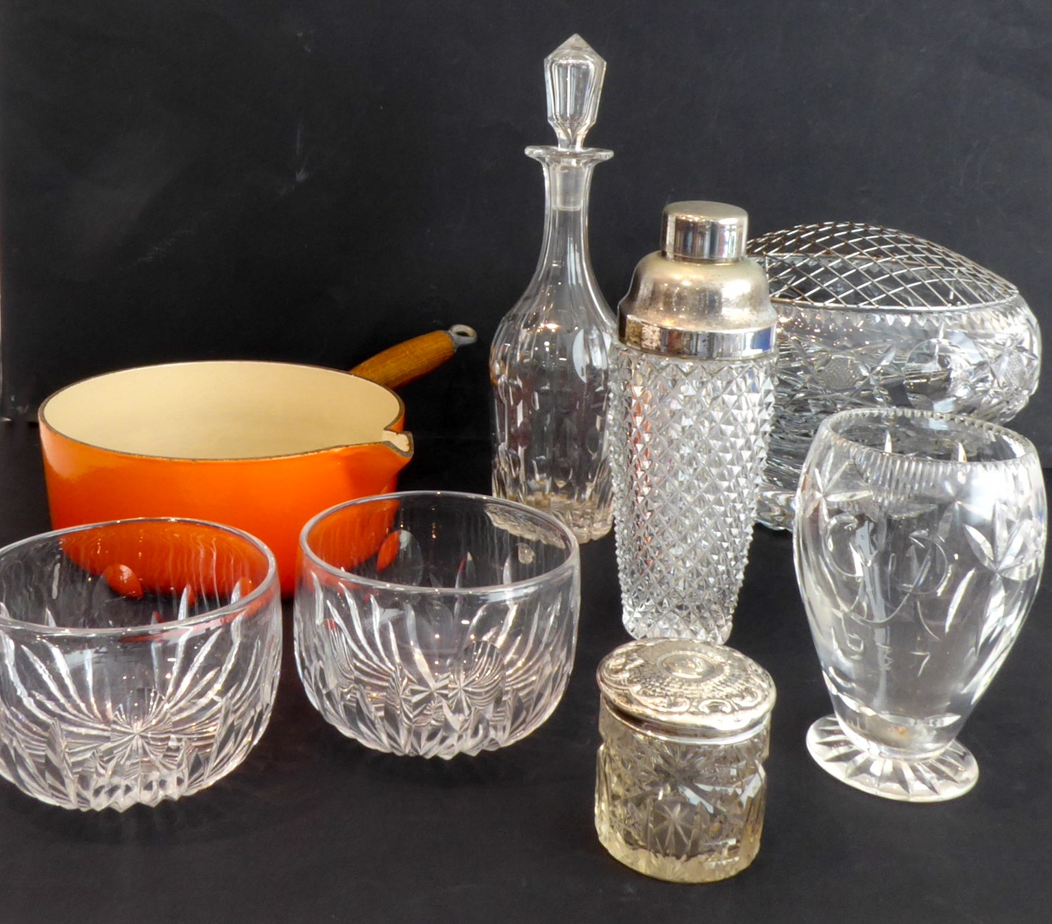 Seven pieces of glassware and a large Le Creuset saucepan: