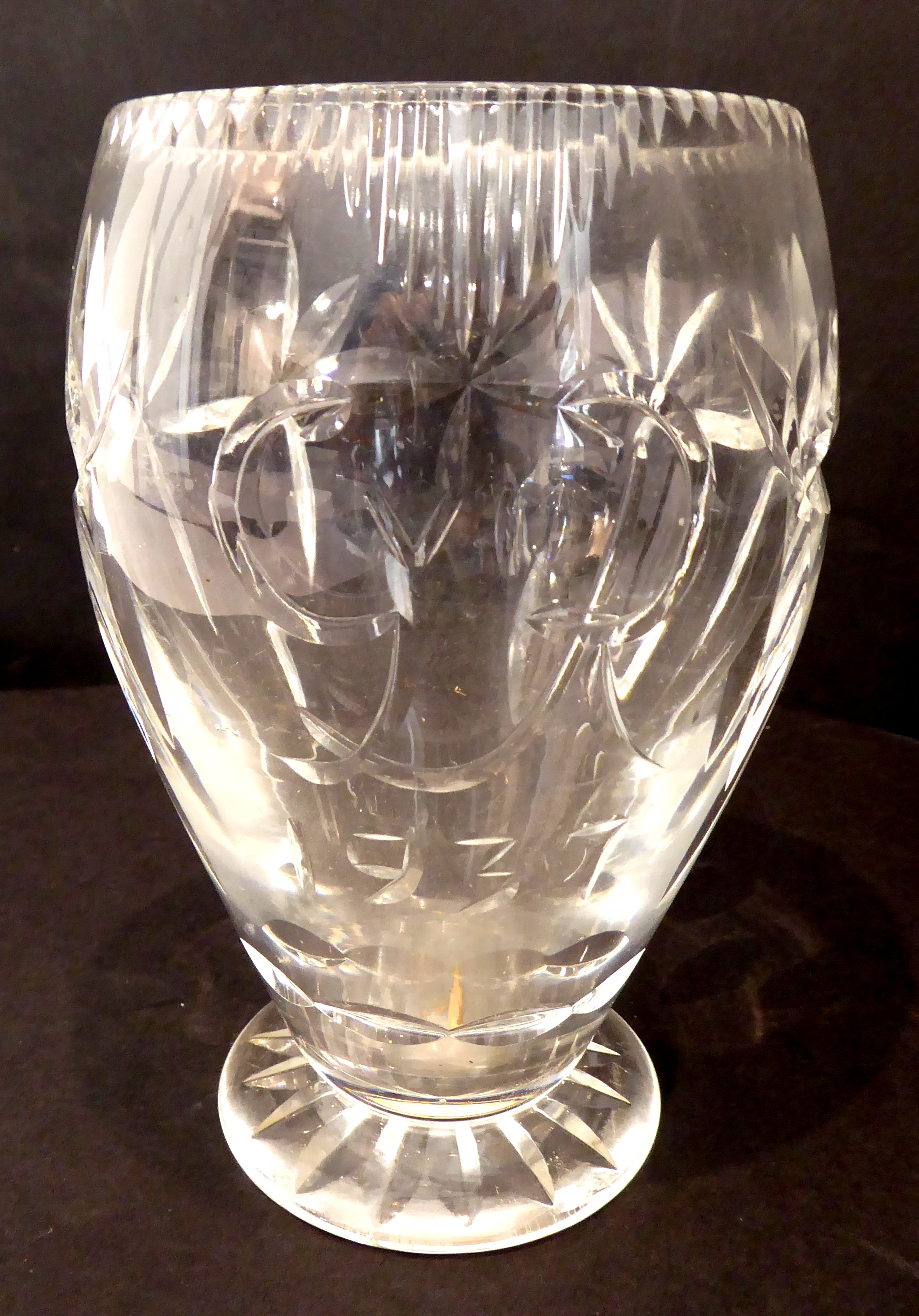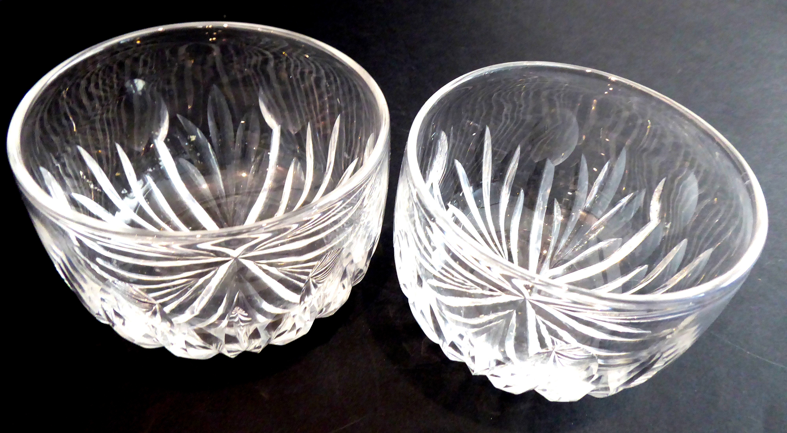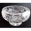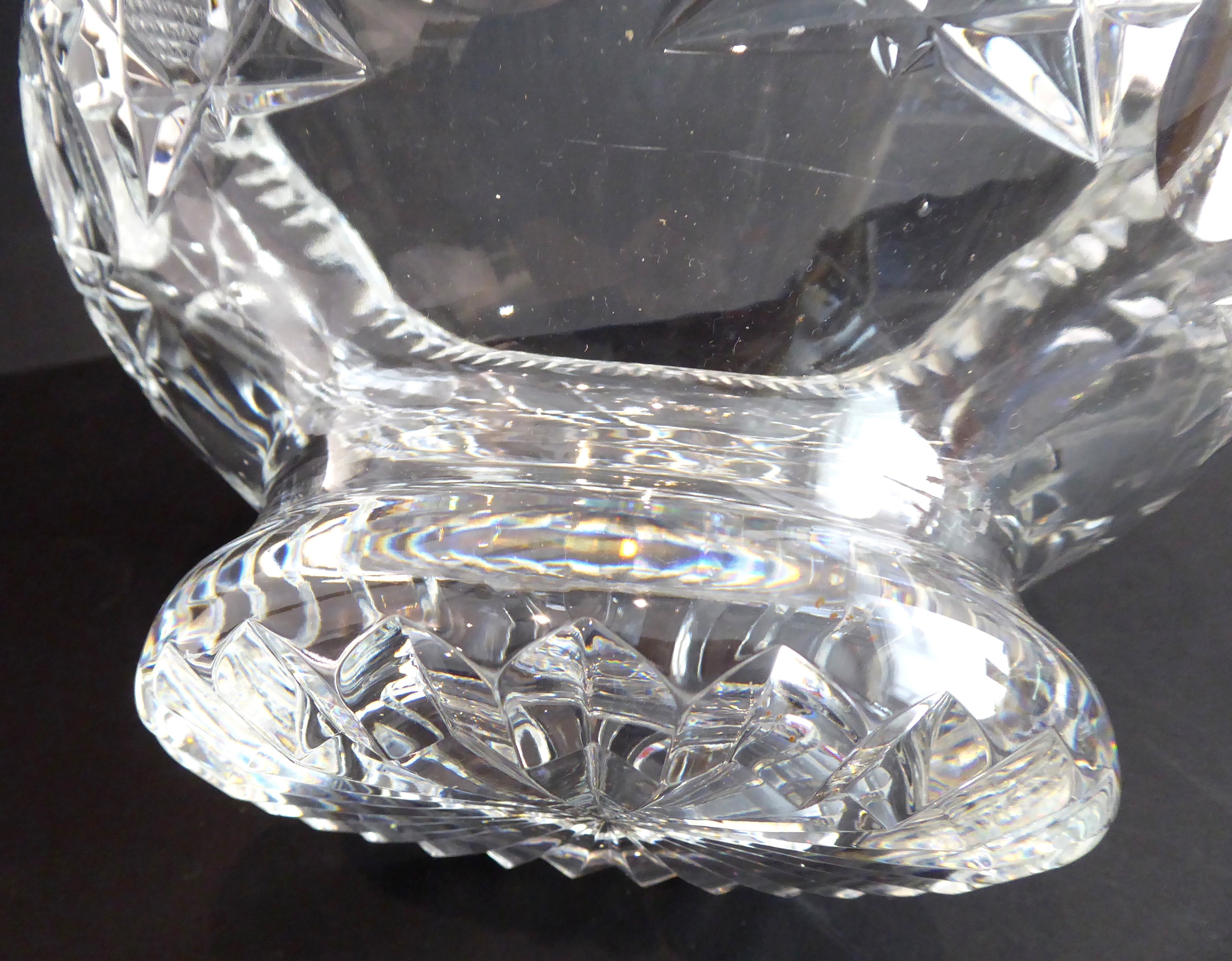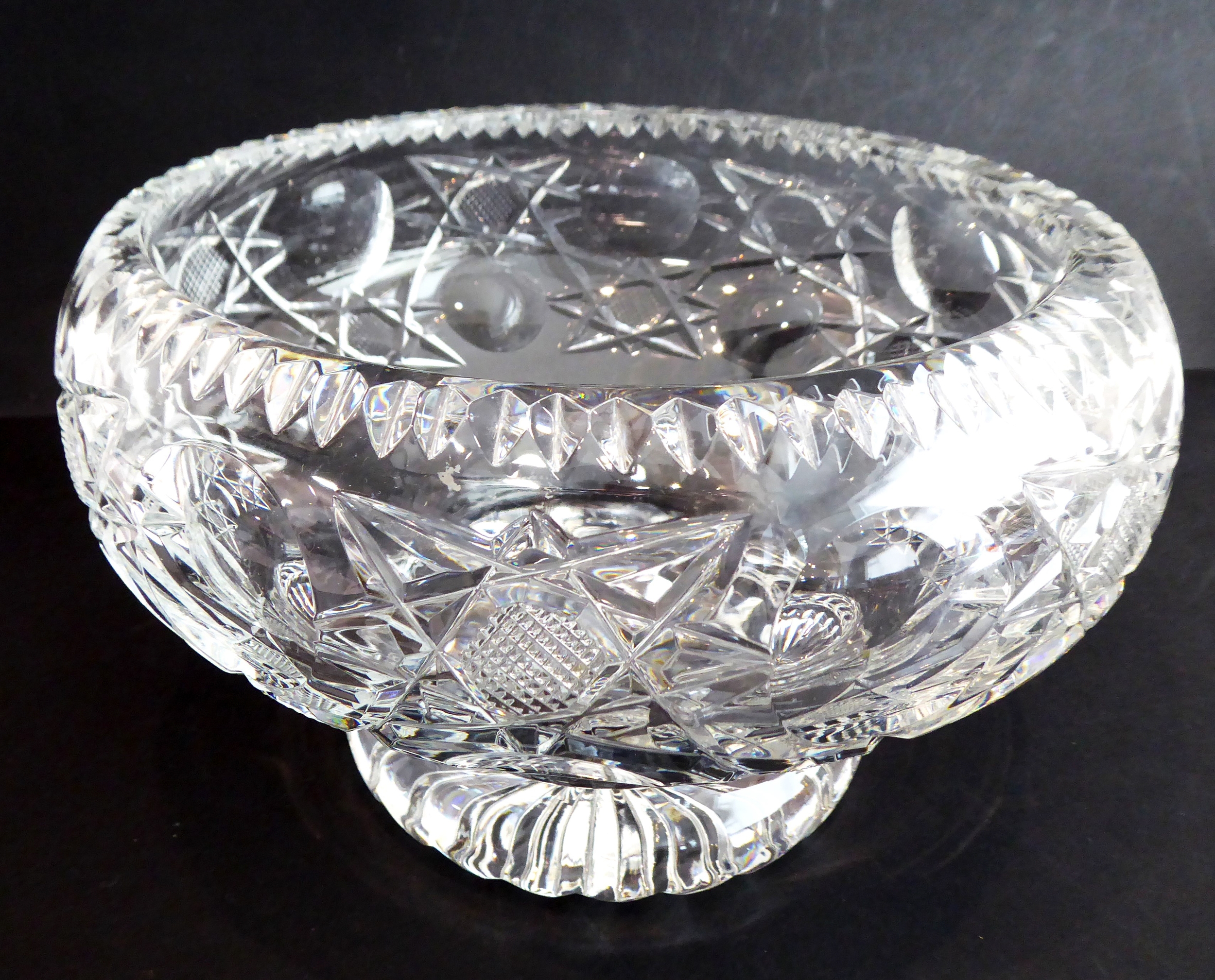 a large mid-20th century hand-cut (probably Bohemian or Czechoslovakian) rose bowl with wire mesh;