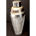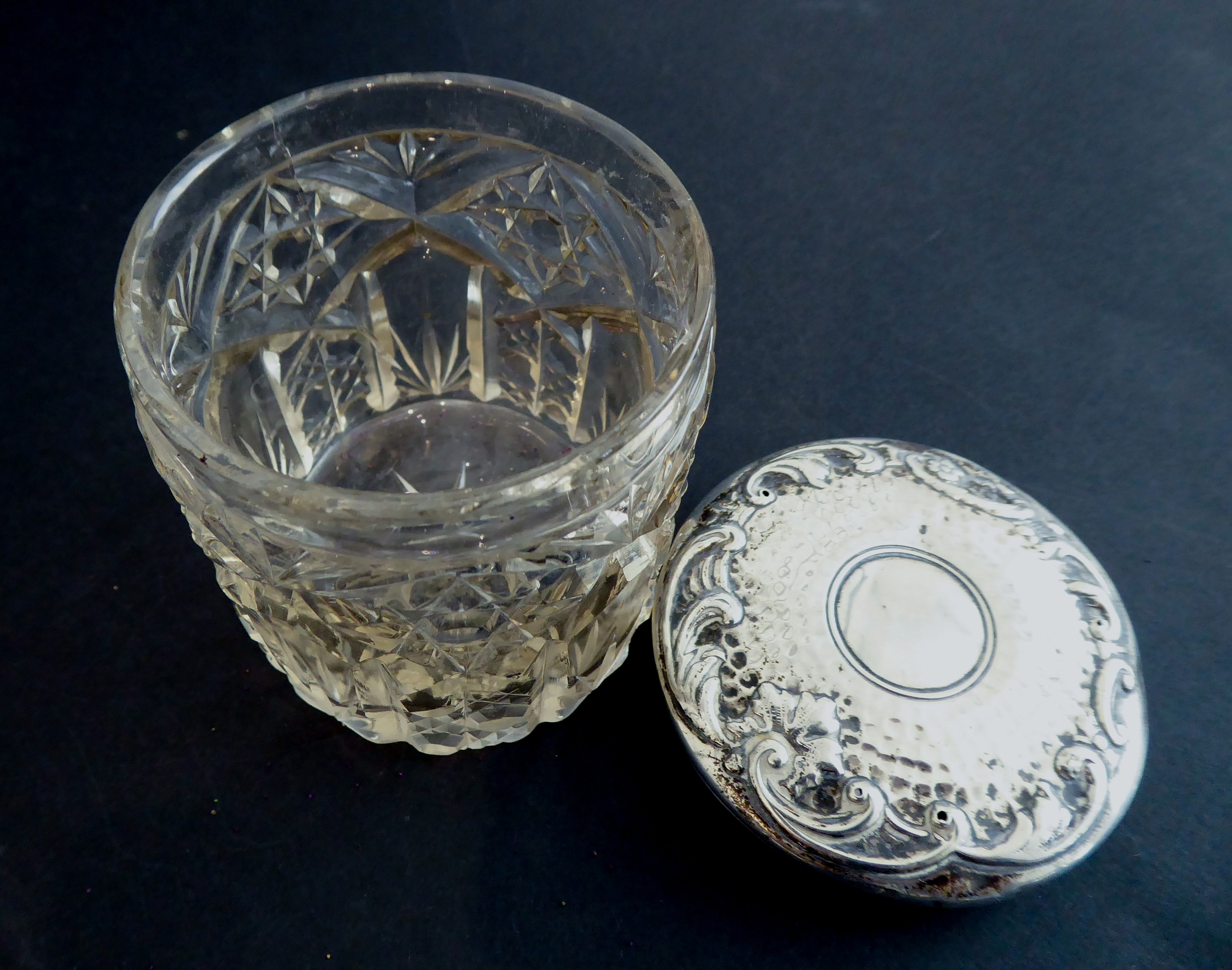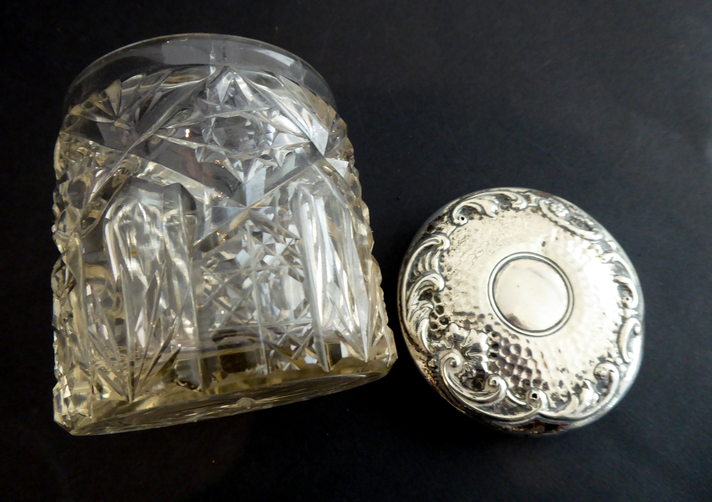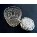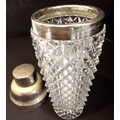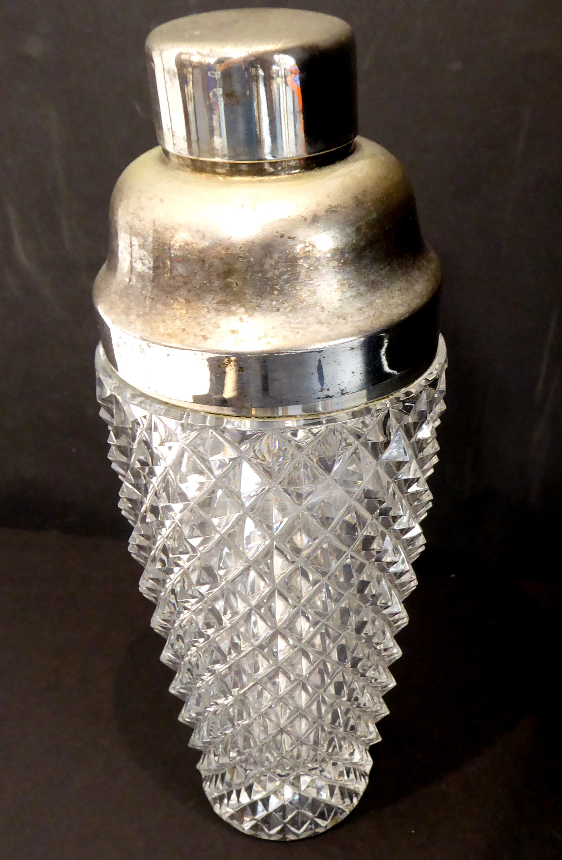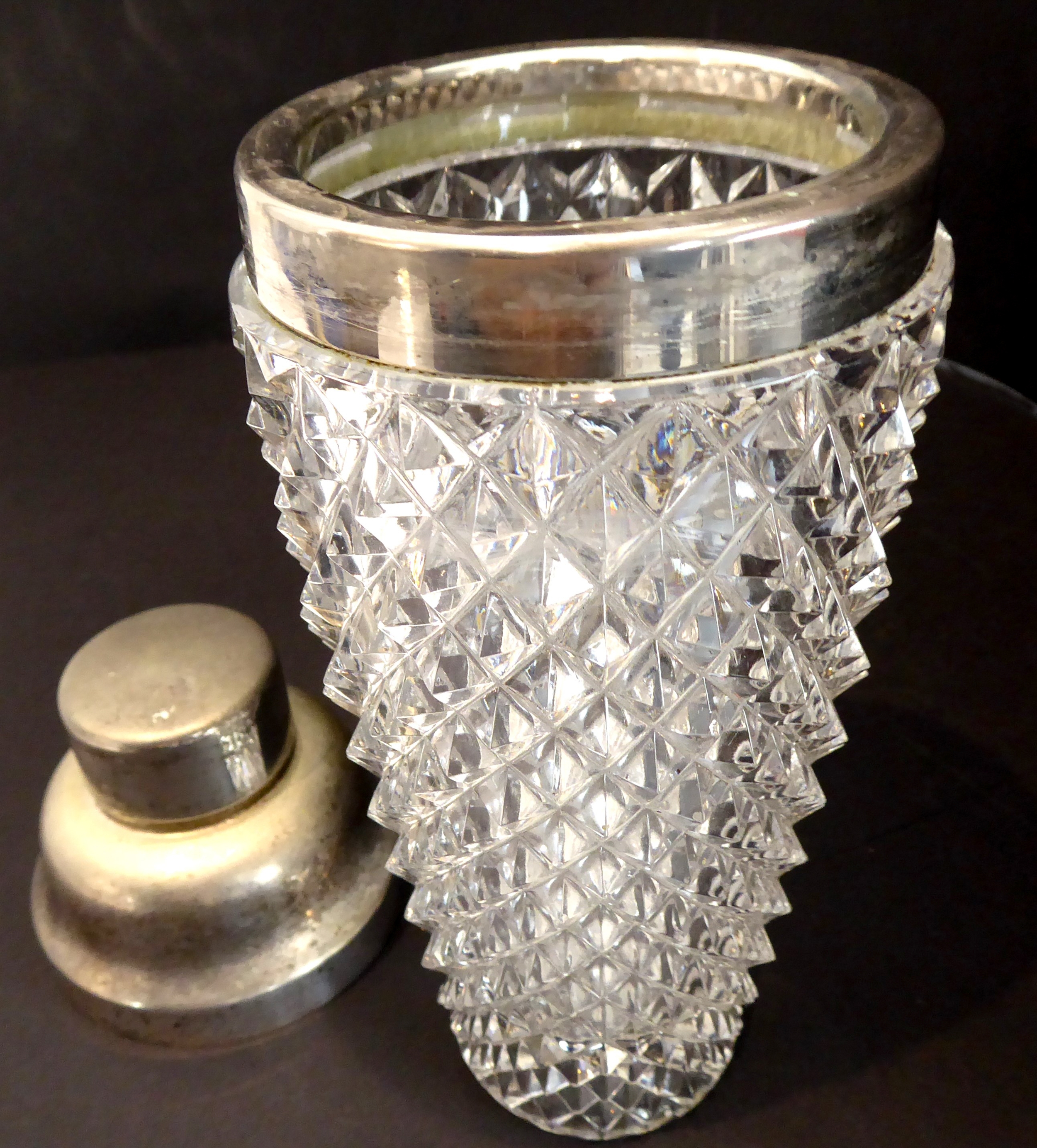 a large mid-20th century hand-cut (probably Bohemian or Czechoslovakian) rose bowl with wire mesh;