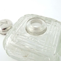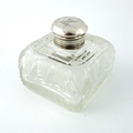 A George III clear cut glass cube ink, white metal screw top with bird heraldry, diamond and linear cut sides, star cut base, height 6cm, width 6.5cm