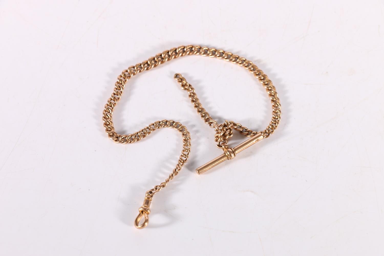 9ct gold curb link watch guard chain, 8.2g