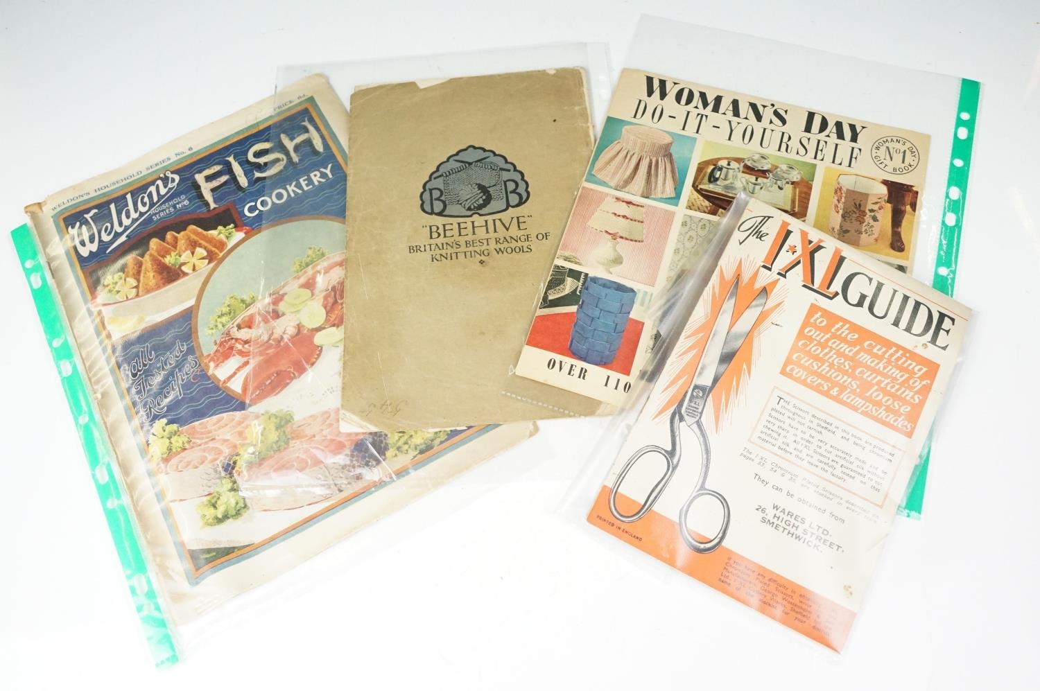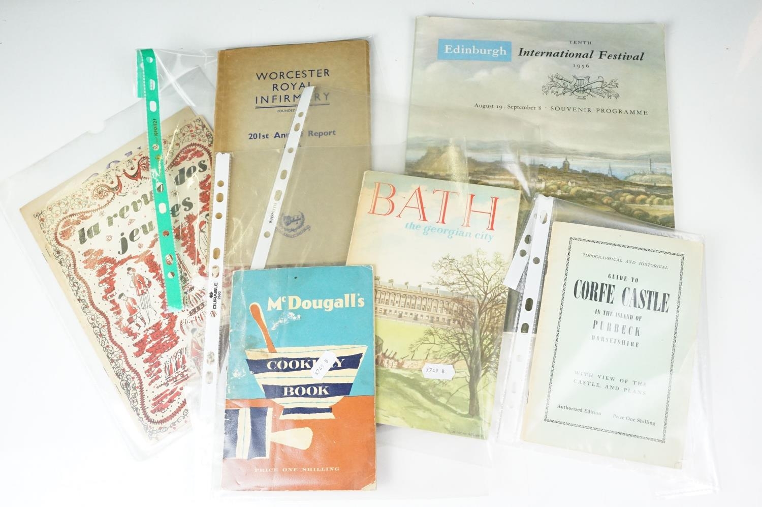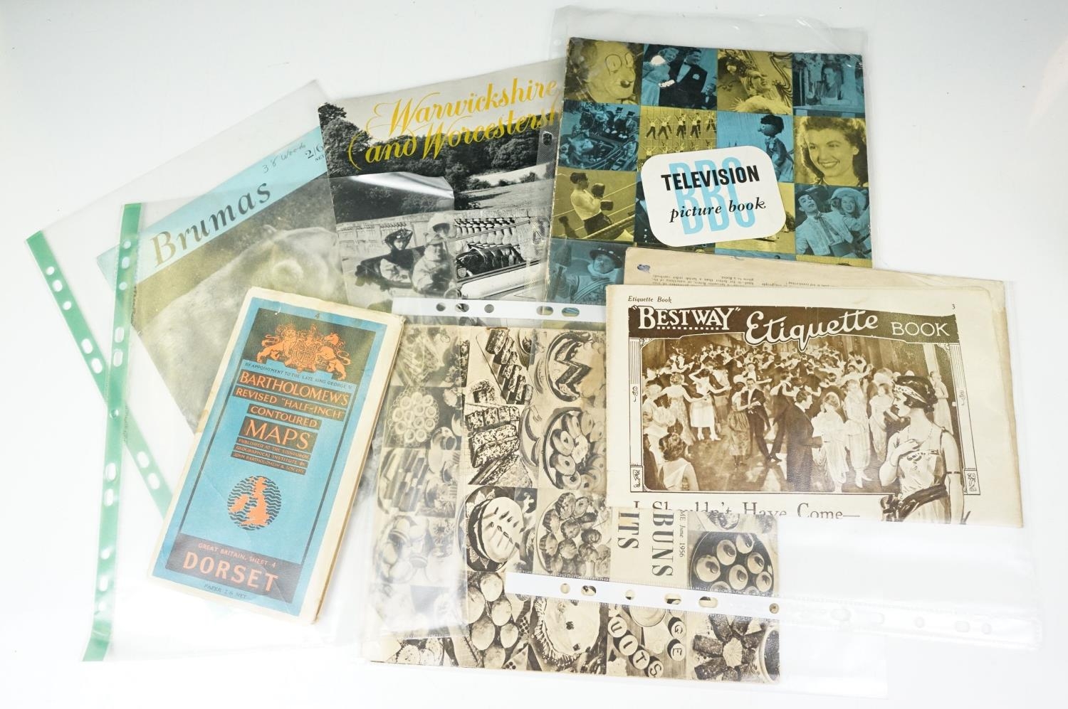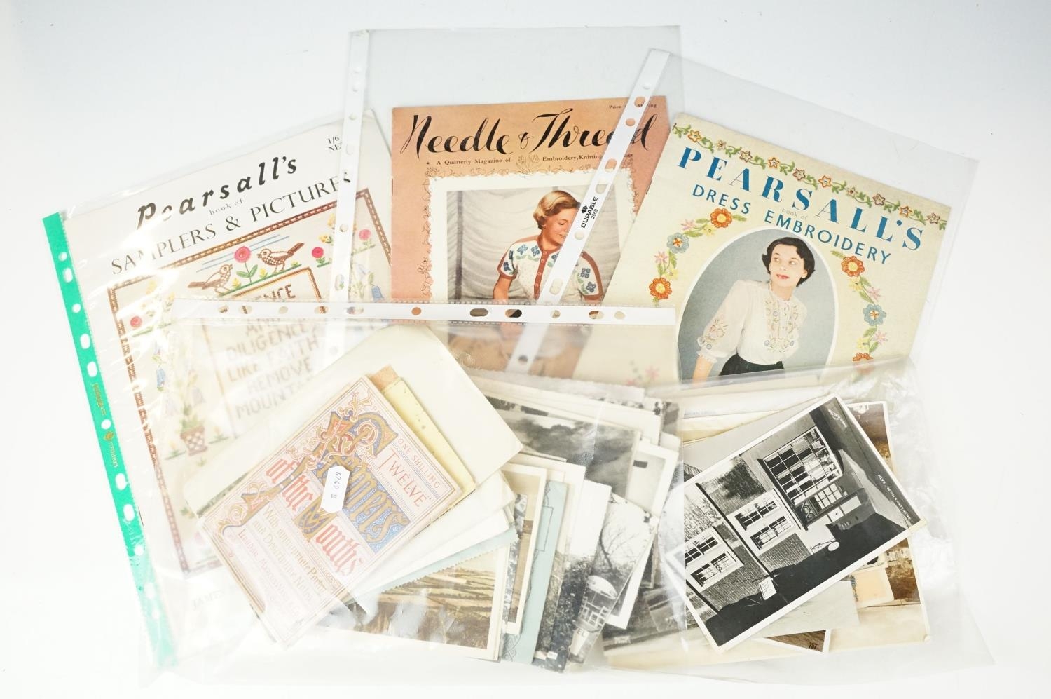 Collection of vintage mostly mid 20th Century ephemera to include theatre programmes, women's magazines, group of black and white postcards, recipe periodicals and similar. 1 box.