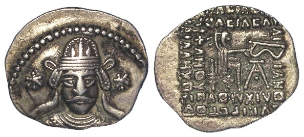 Parthia, Vonones II silver Drachm 51 AD, 3.68g. Sellwood #67.1. VF.