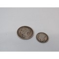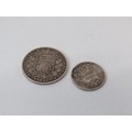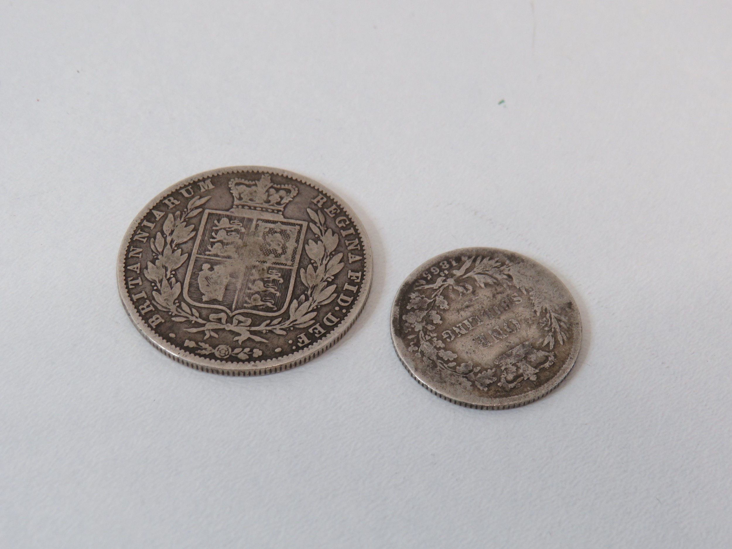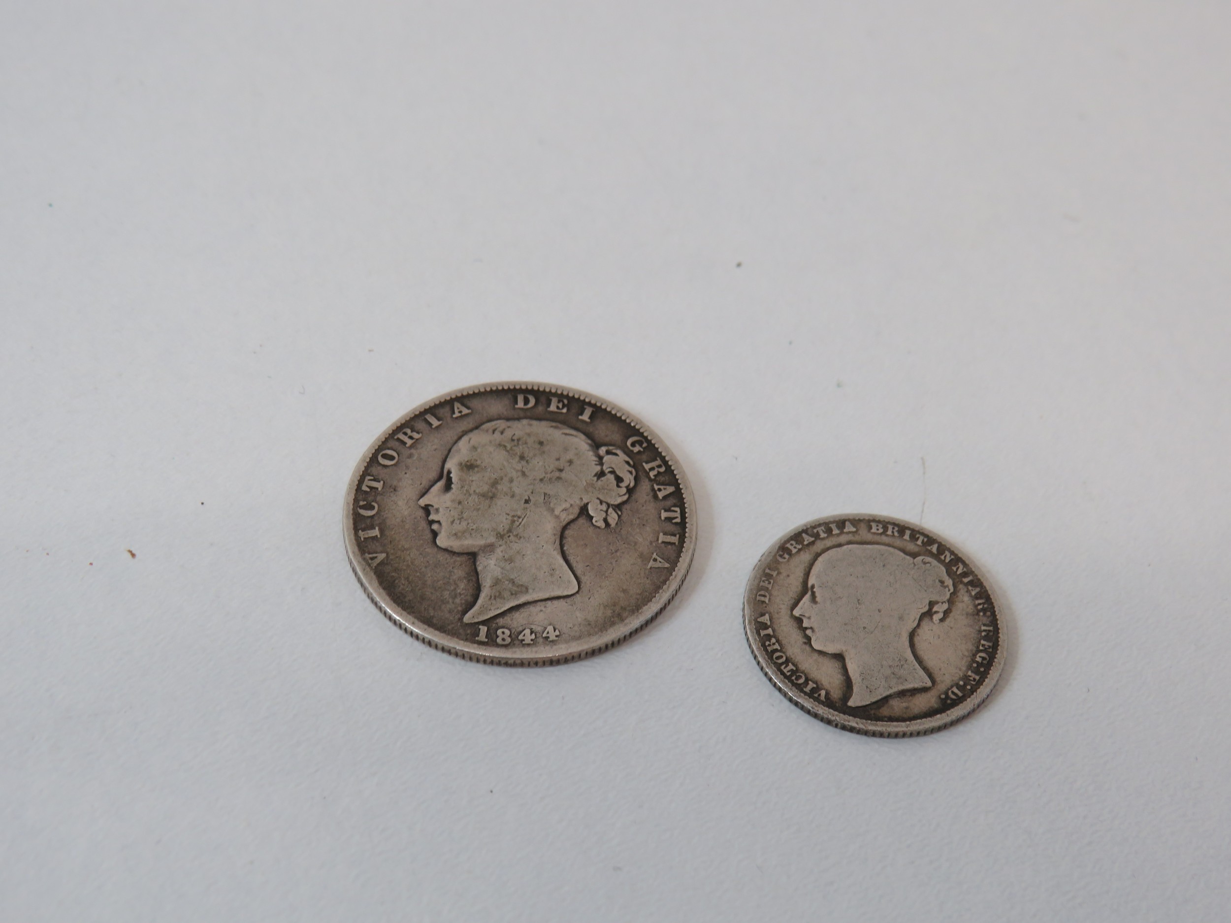 Rare 1844 Victoria silver half crown coin and silver Young Head 1865 shilling