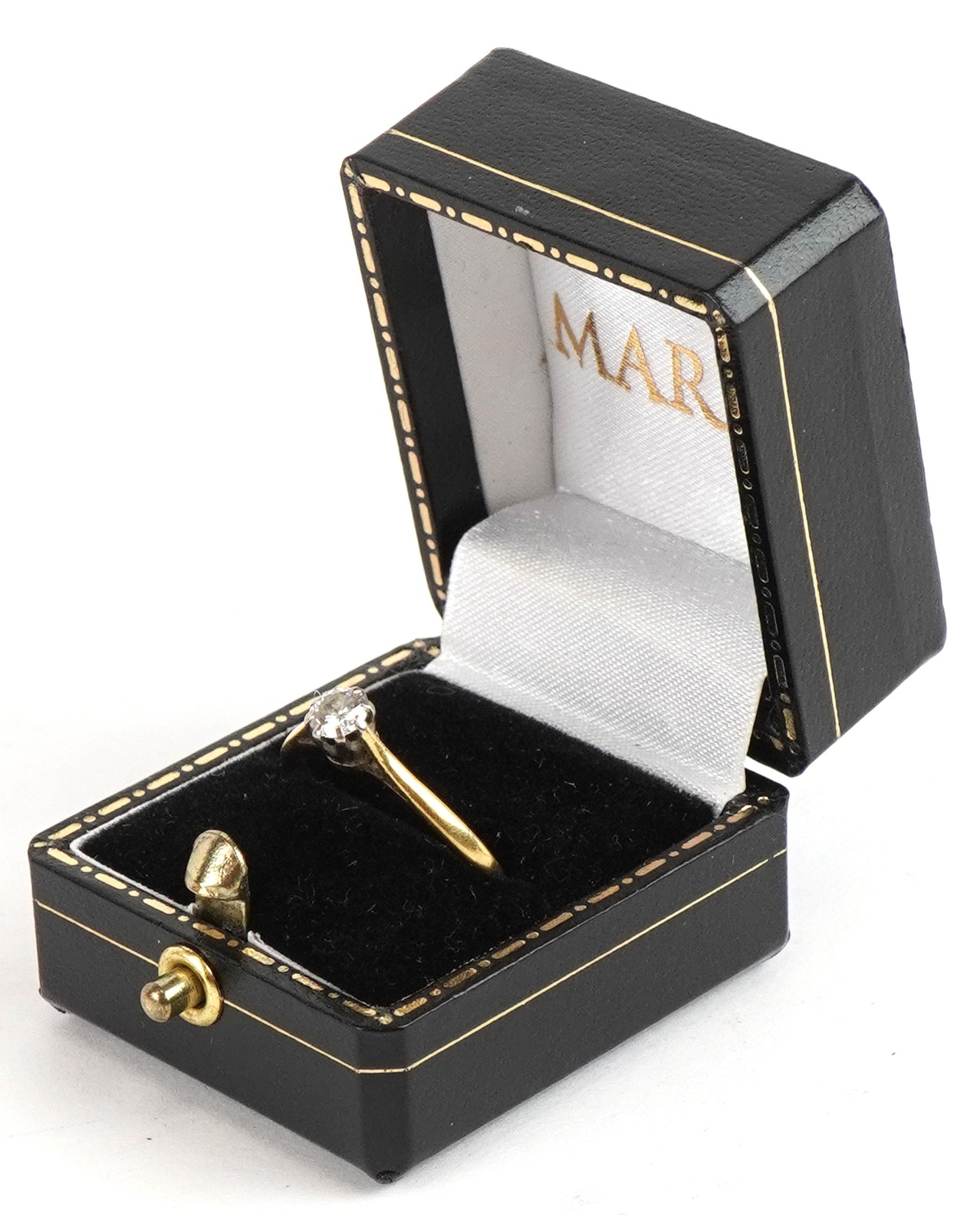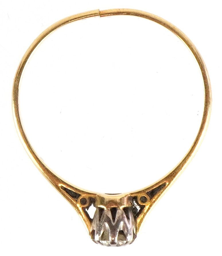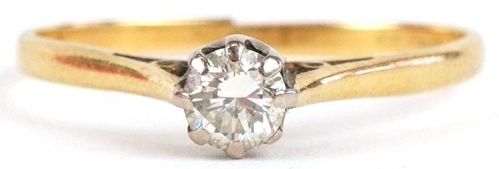 An 18ct gold diamond solitaire ring, the diamond approximately 3.80mm in diameter, size P (Broken), 1.6g.