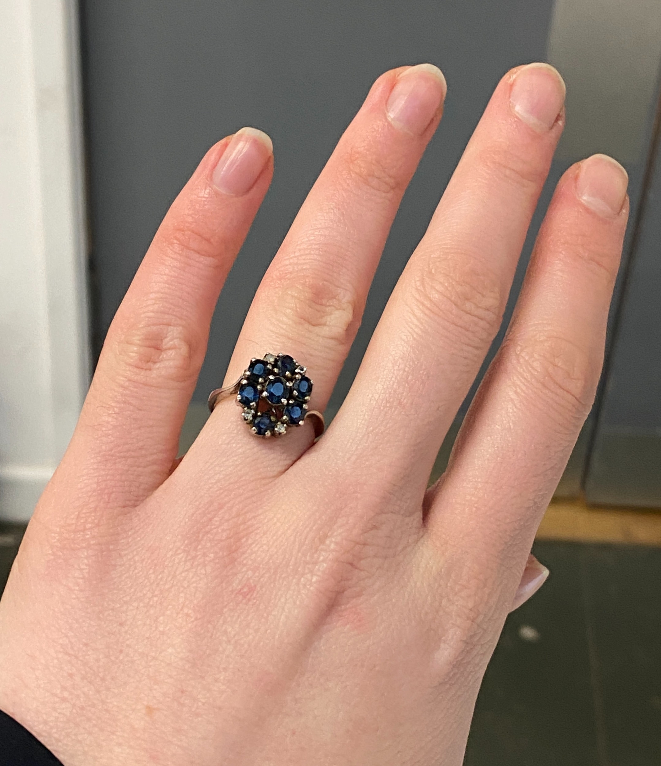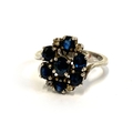 A silver and sapphire cluster ring, size M 1/2, 4g