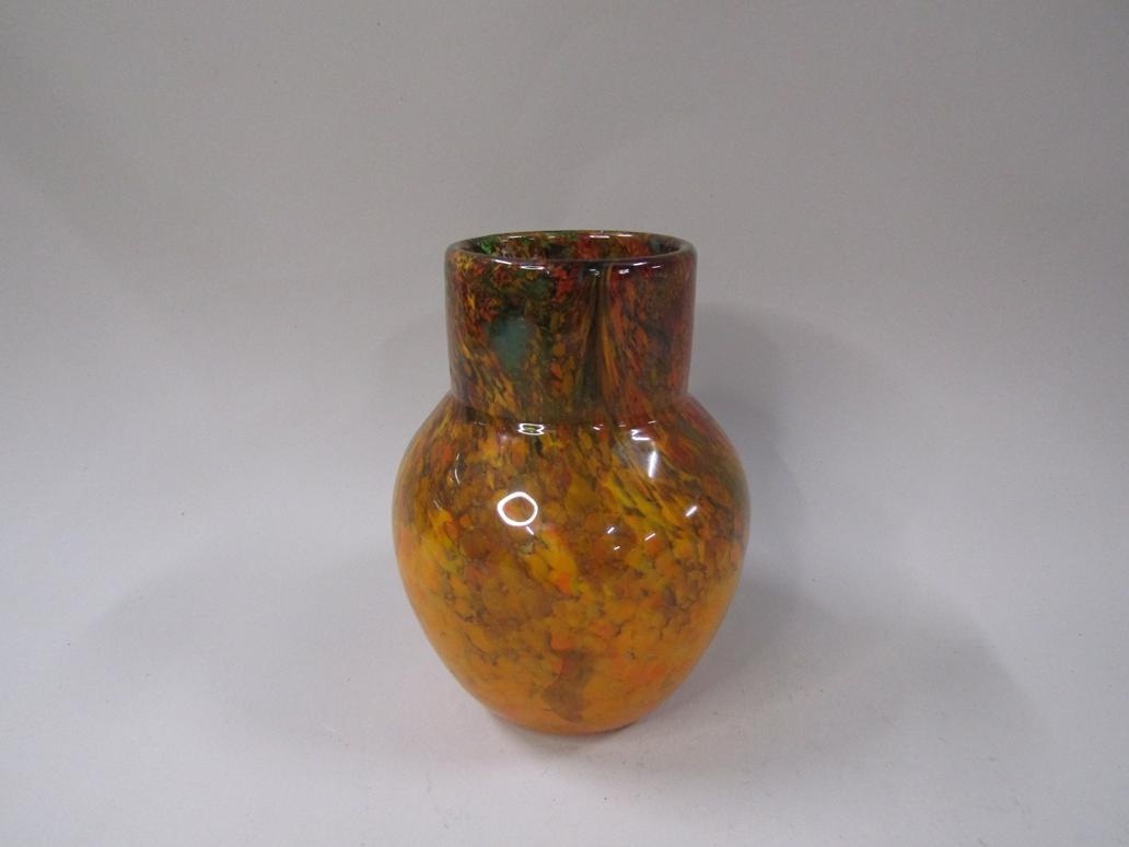 MONART GLASS N IX SHAPE VASE IN ORANGE, BROWN AND GREEN