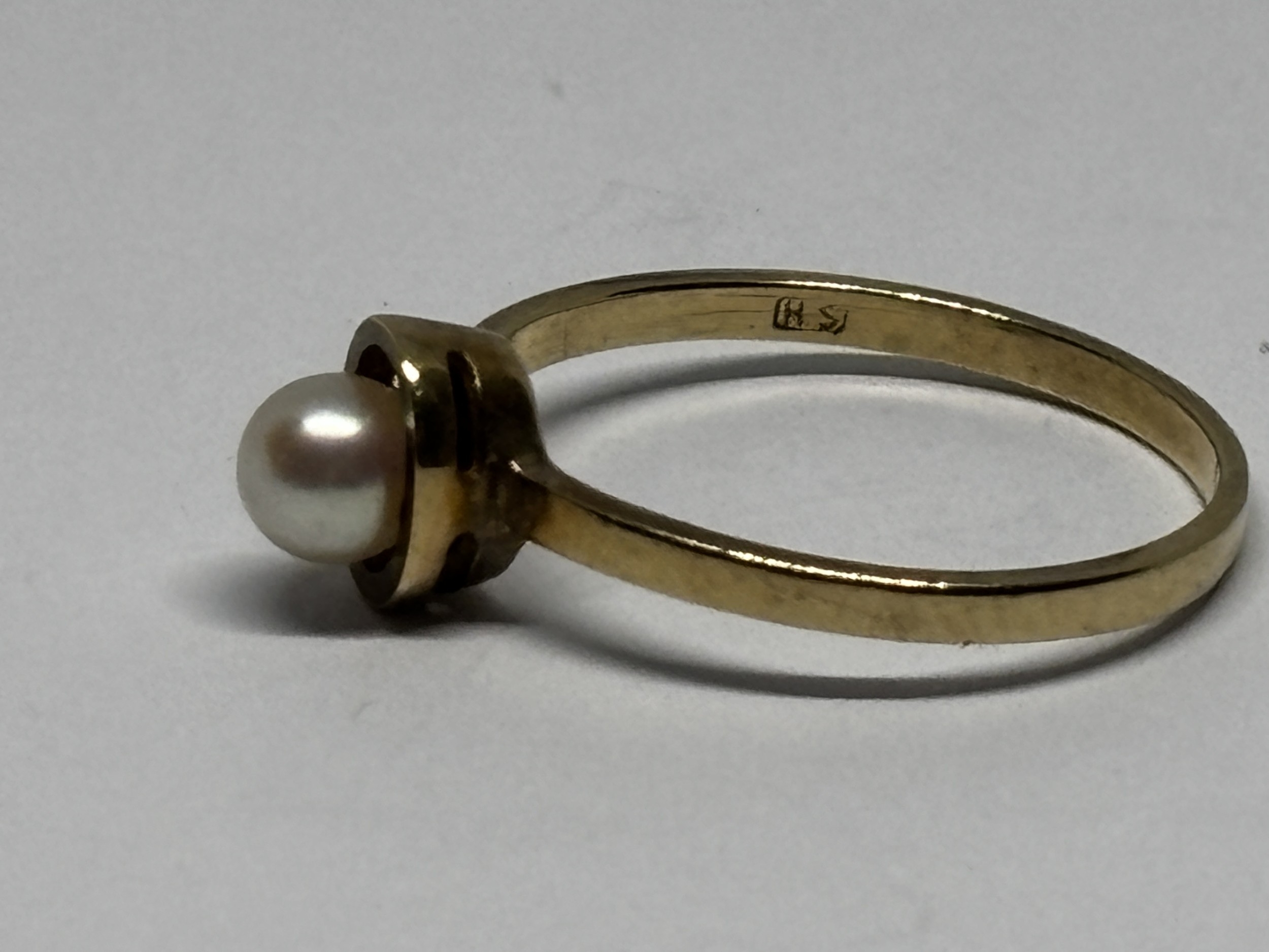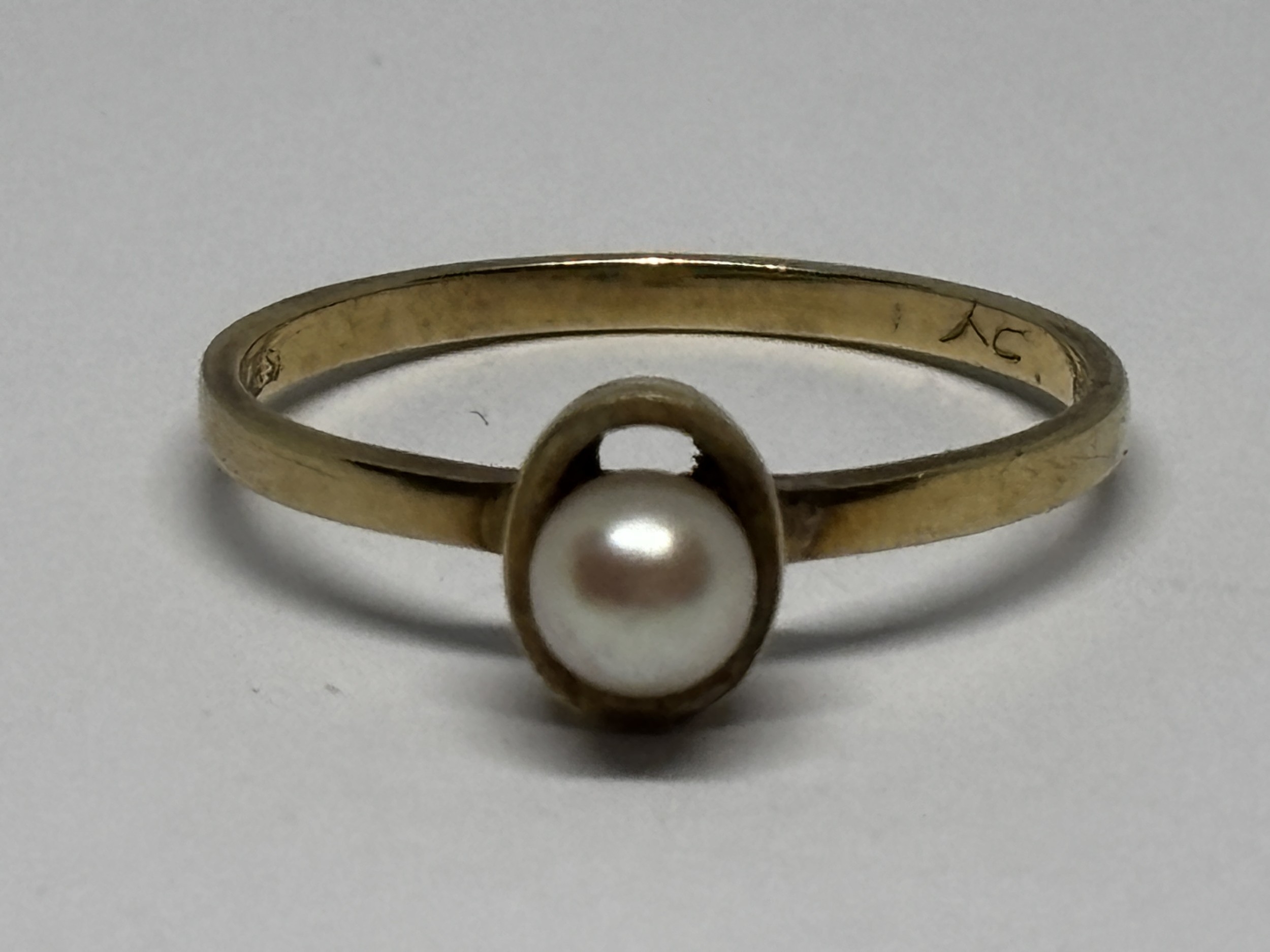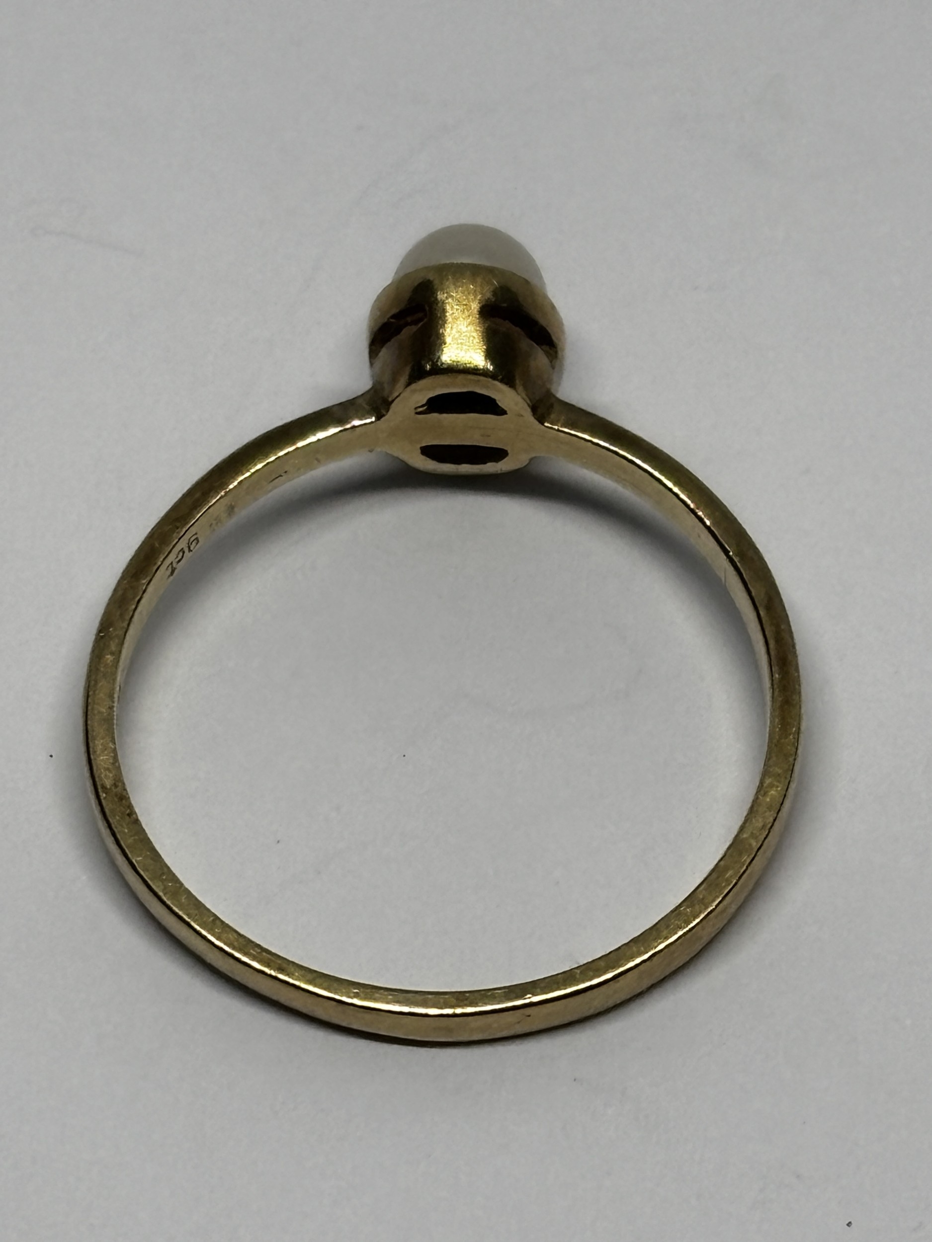 A 9 CARAT GOLD RING WITH A SOLITAIRE PEARL SIZE P/Q GROSS WEIGHT 1.61 GRAMS