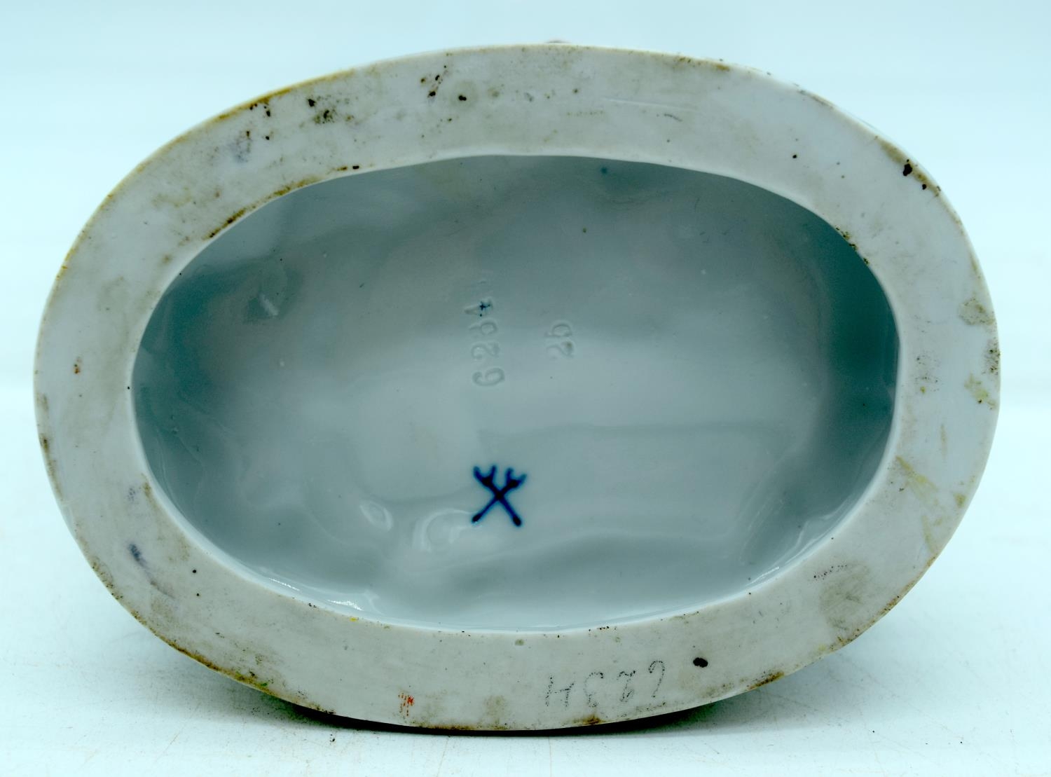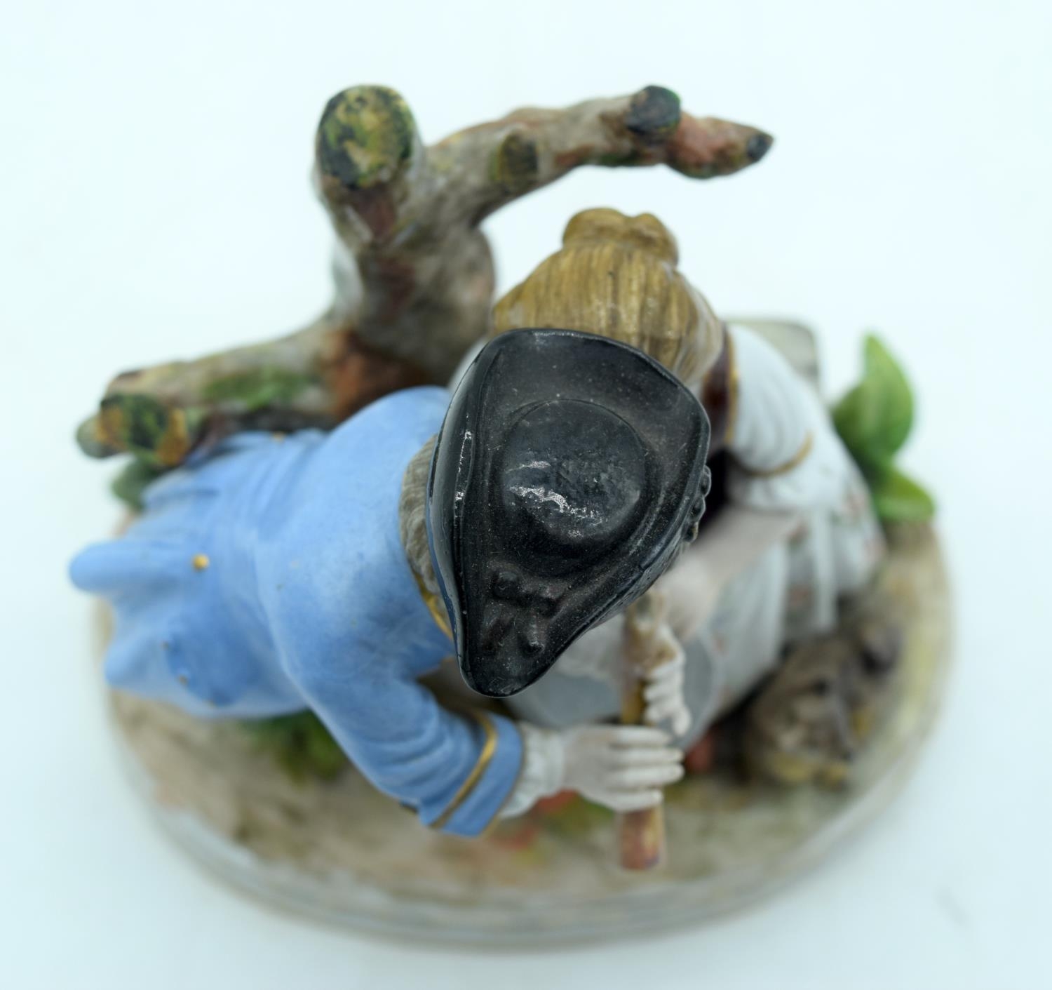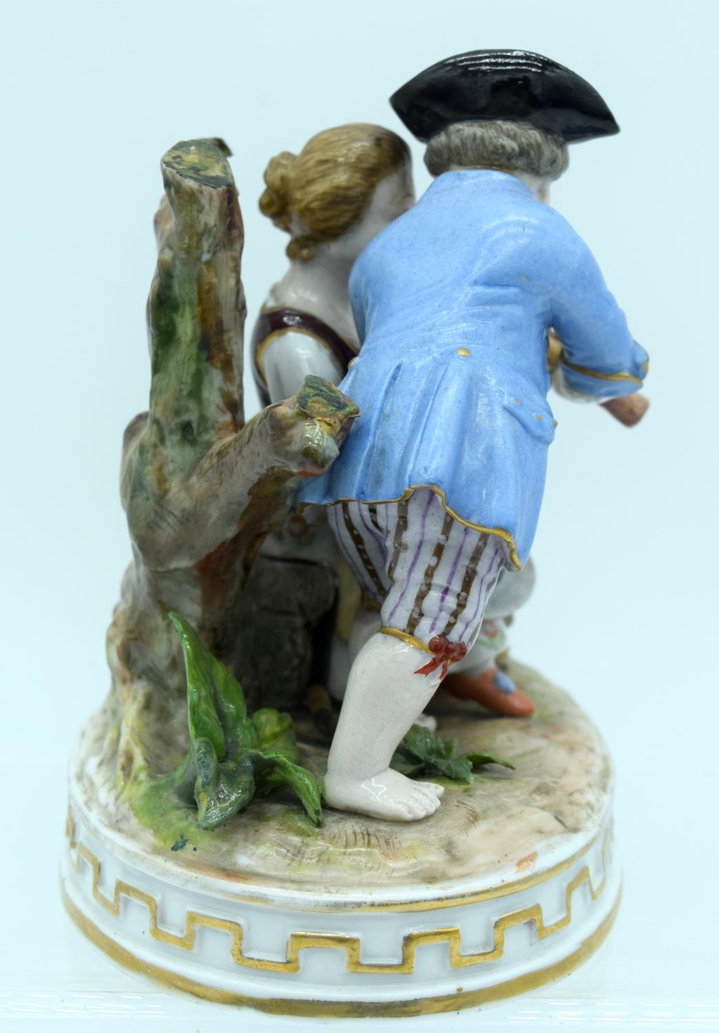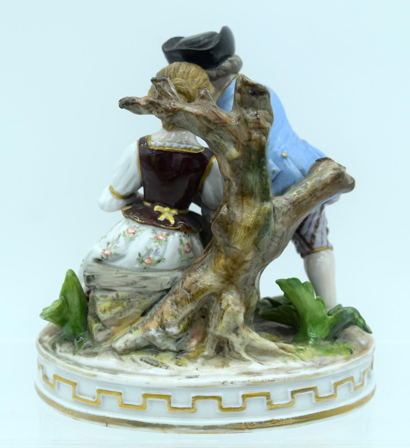 AN ANTIQUE GERMAN PORCELAIN FIGURAL GROUP modelled as a boy and girl playing a pipe. 13 cm x 11 cm.
