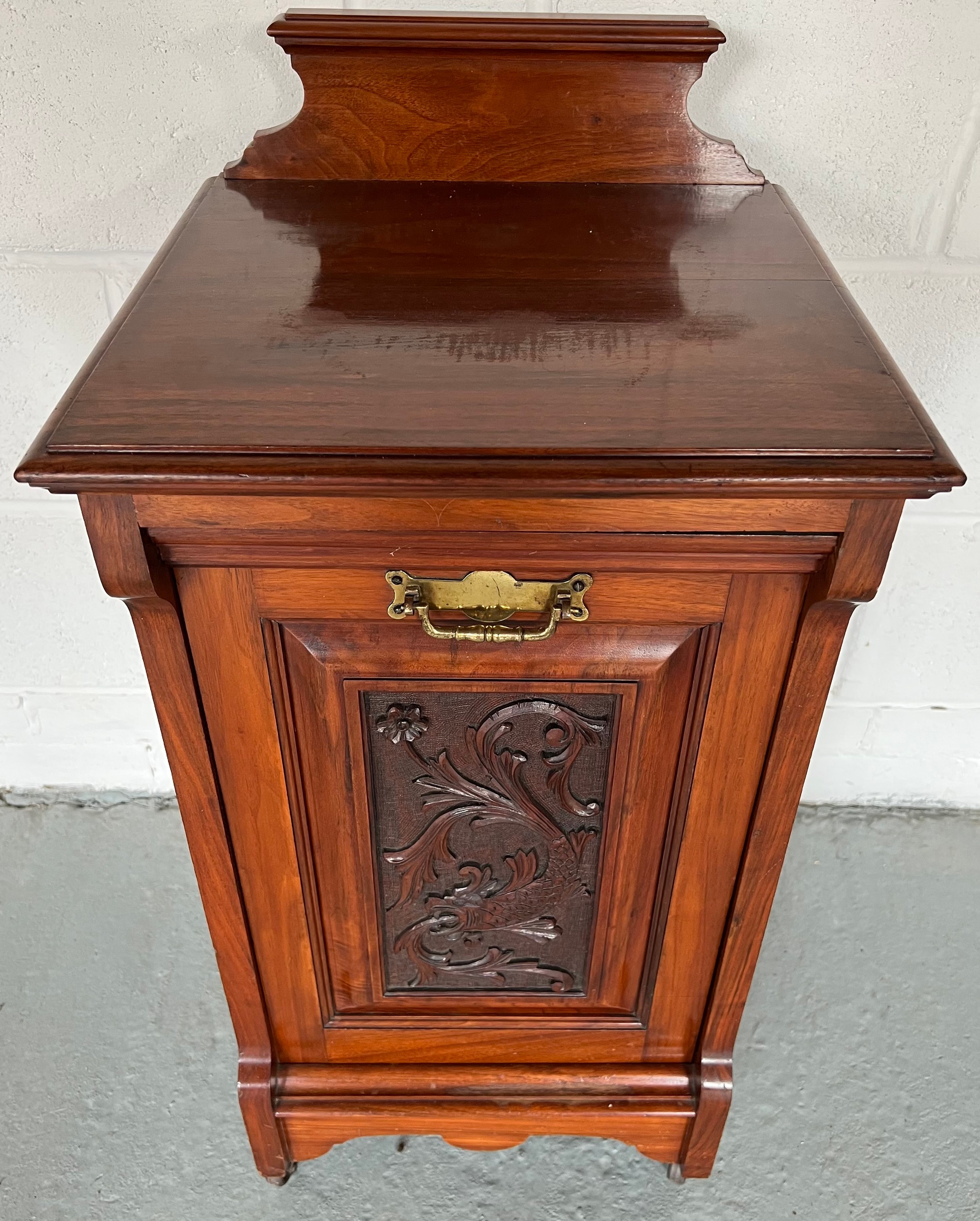 An Edwardian coal purdonium 80cm h x 38cm square approx. On castors.