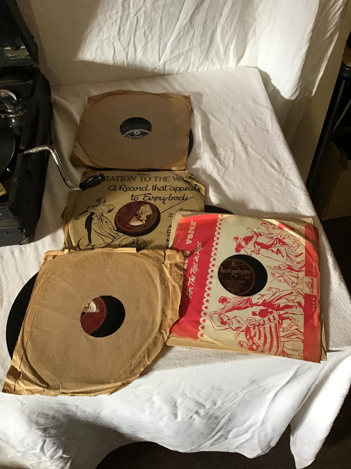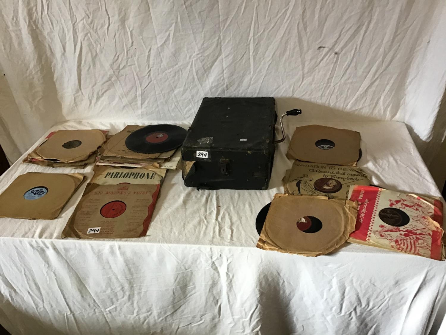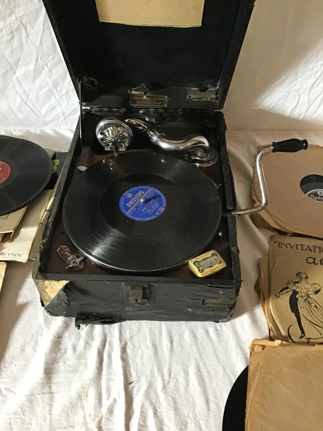 VINT PICNIC GRAMAPHONE AND A COLLECTION OF 78 RECORDS