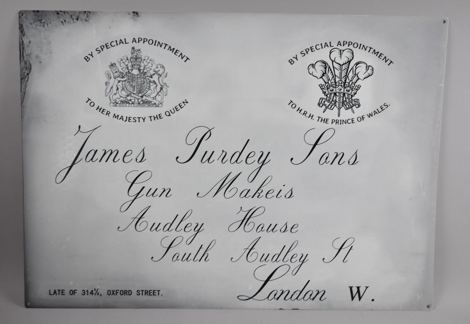 A Reproduction Printed Sign on Tin Panel for James Purdey & Sons, 50x70cm