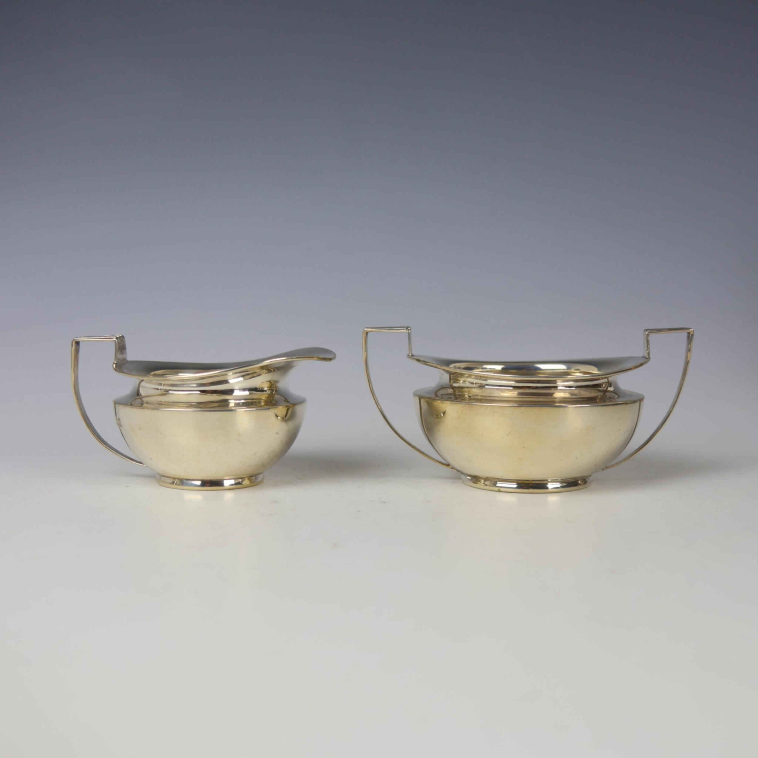 An Edwardian silver milk jug and sugar bowl, Daniel & John Wellby, London 1909, the grooved angular handles above plain polished body upon circular base, sugar bowl 7cm high, gross weight 12ozt (2)