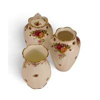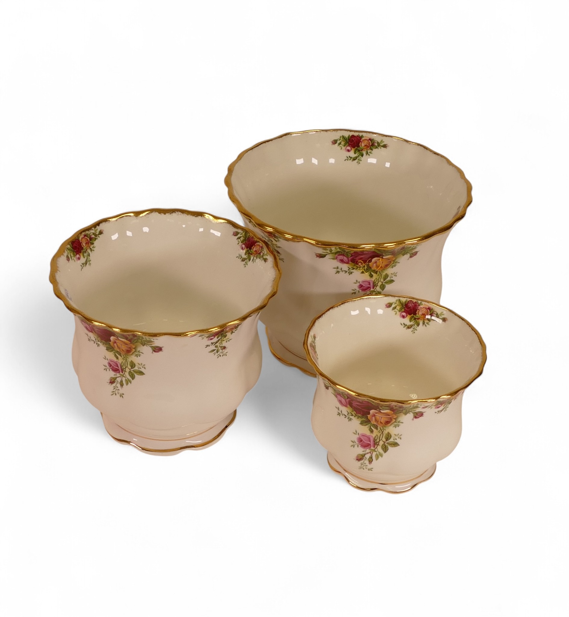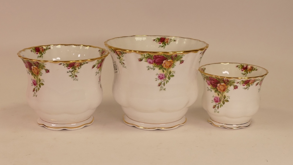 Royal Albert 'Old Country Roses' a set of graduated sized footed Plant Pots; Tallest:-15cm (3)