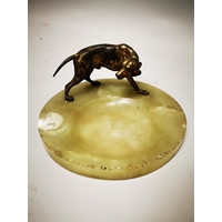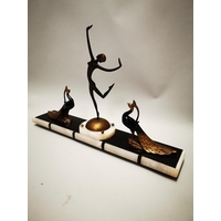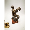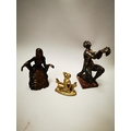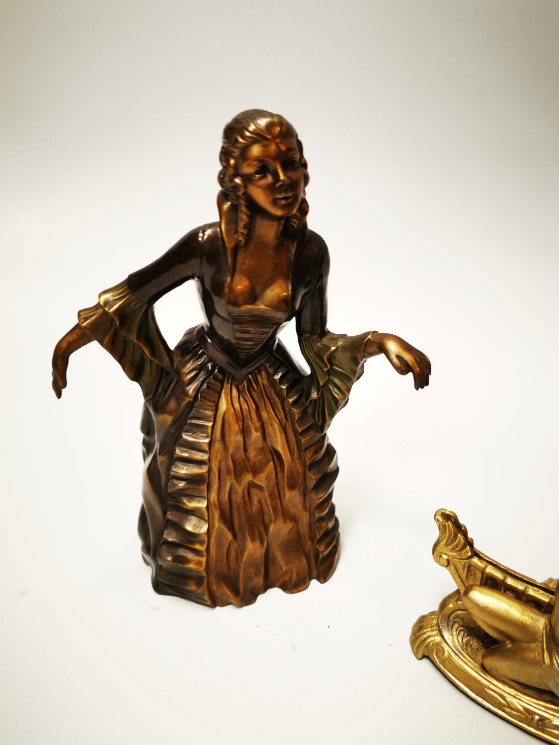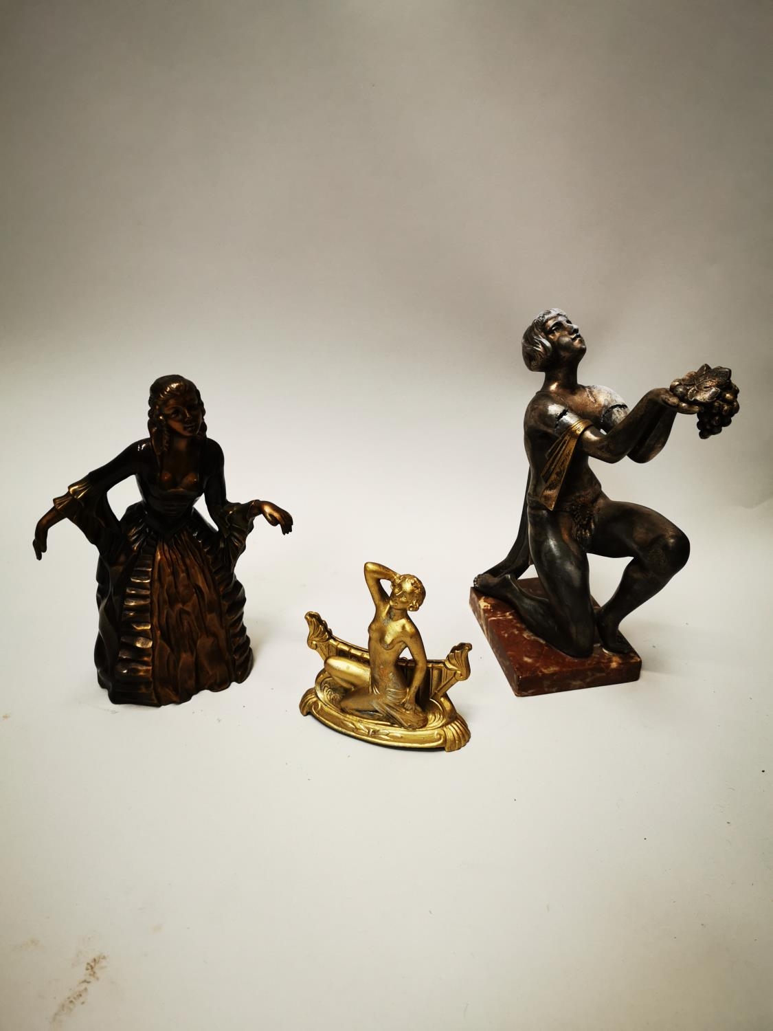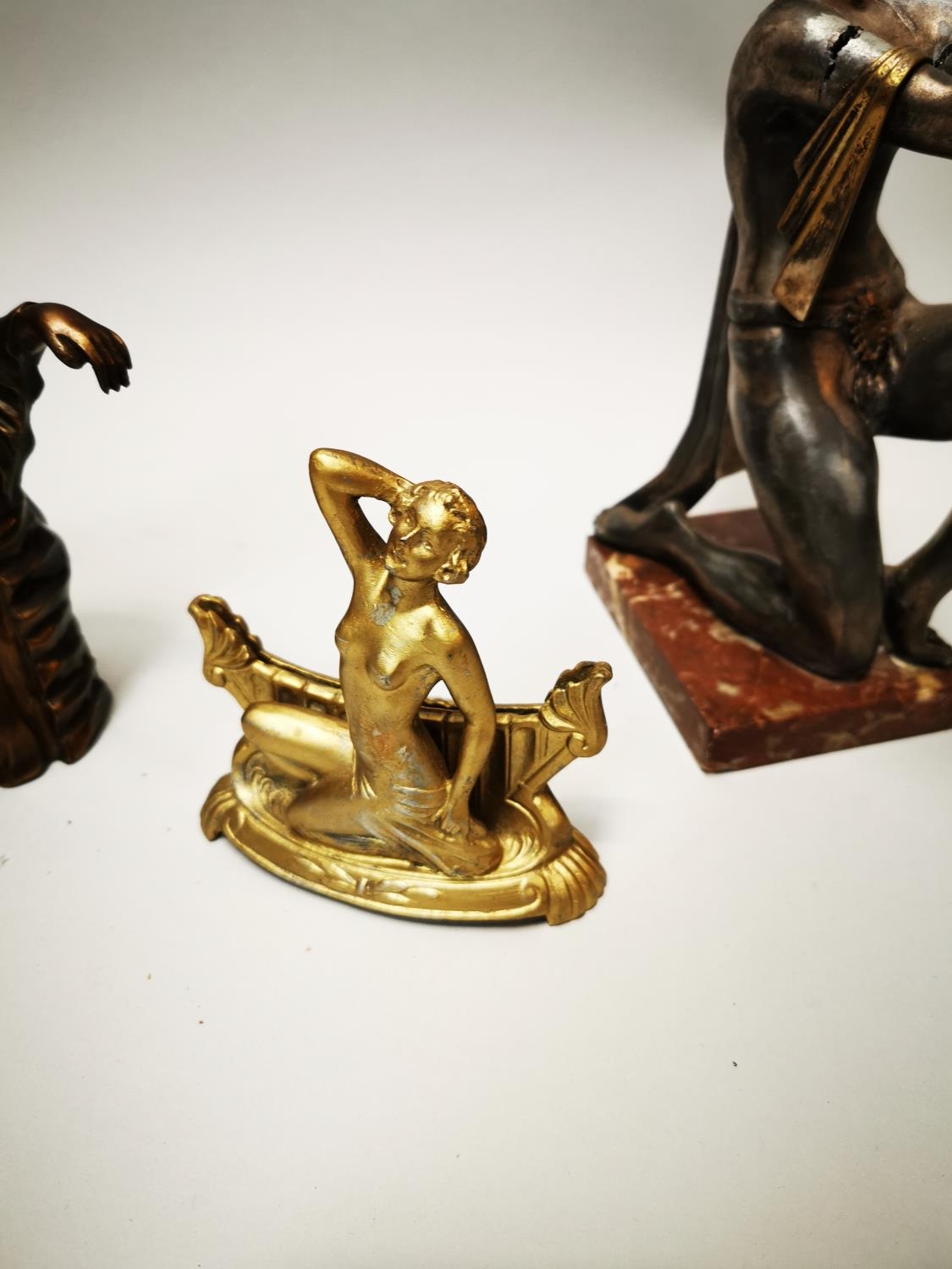 Three gilded metal figures in the Art Deco style {23 cm H, 21 cm H and 12 cm H}.