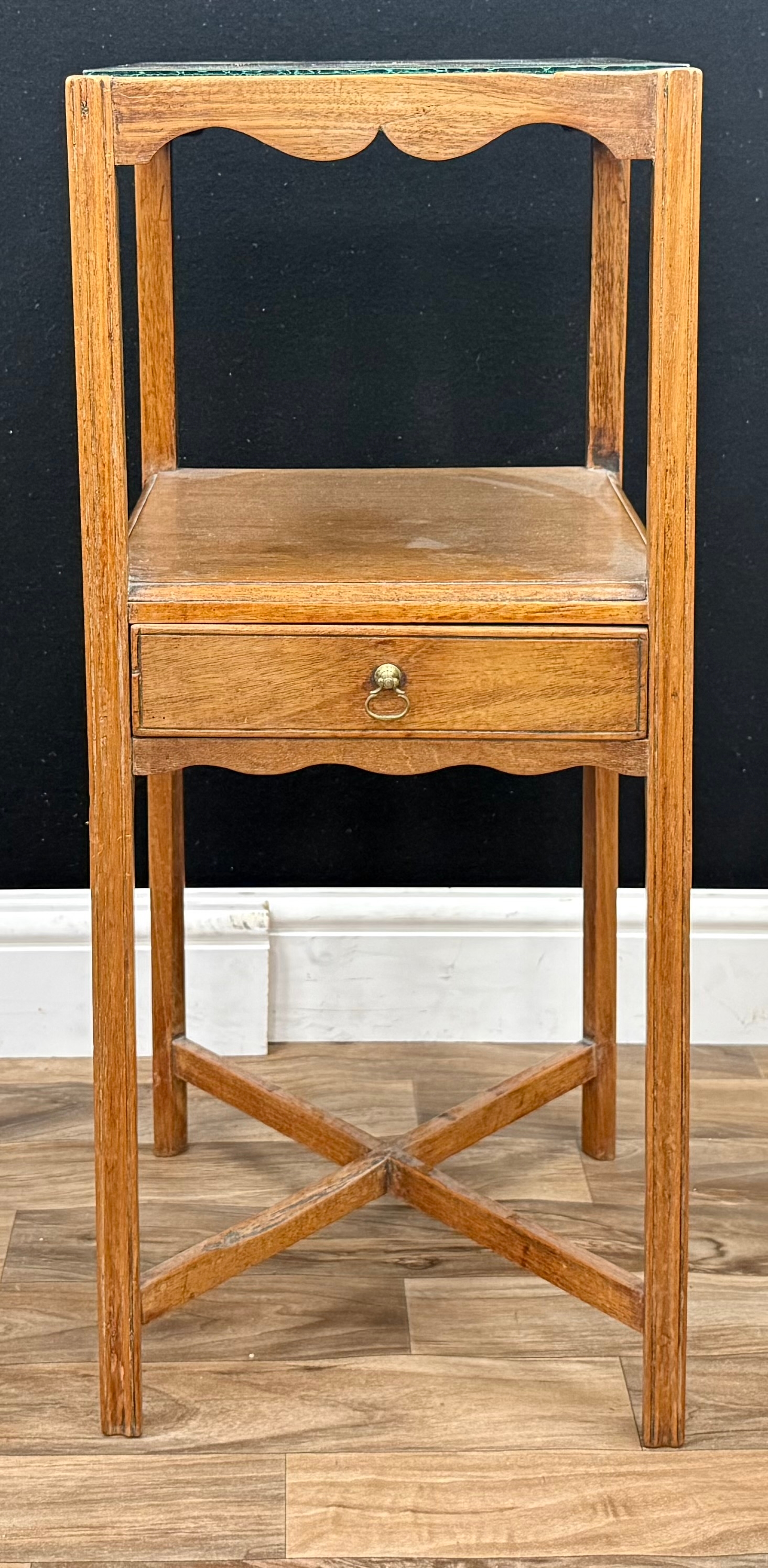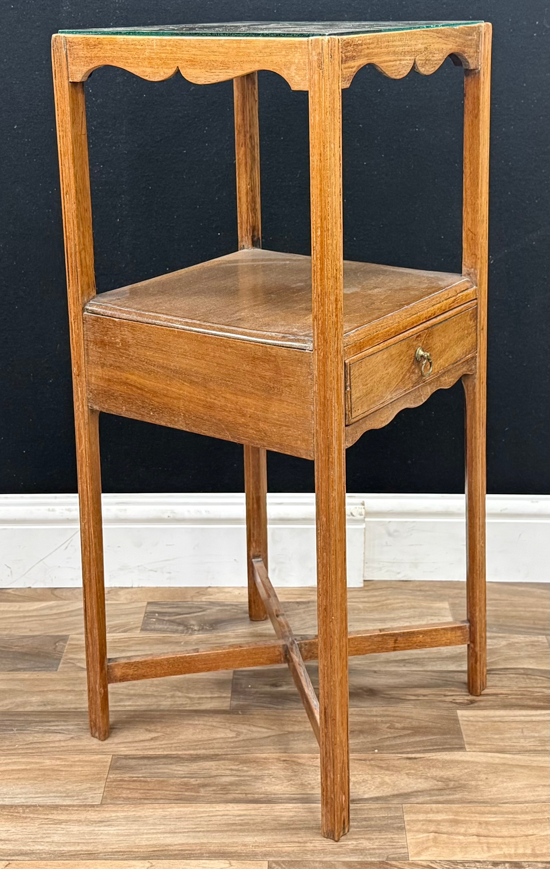 A George lll mahogany washstand, drawer to centre, X-stretcher, 75.5cm high, 31.5cm square, c.1810