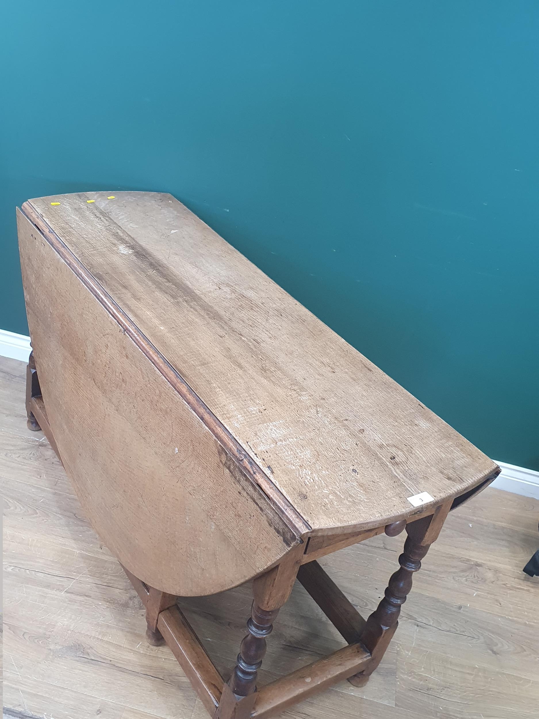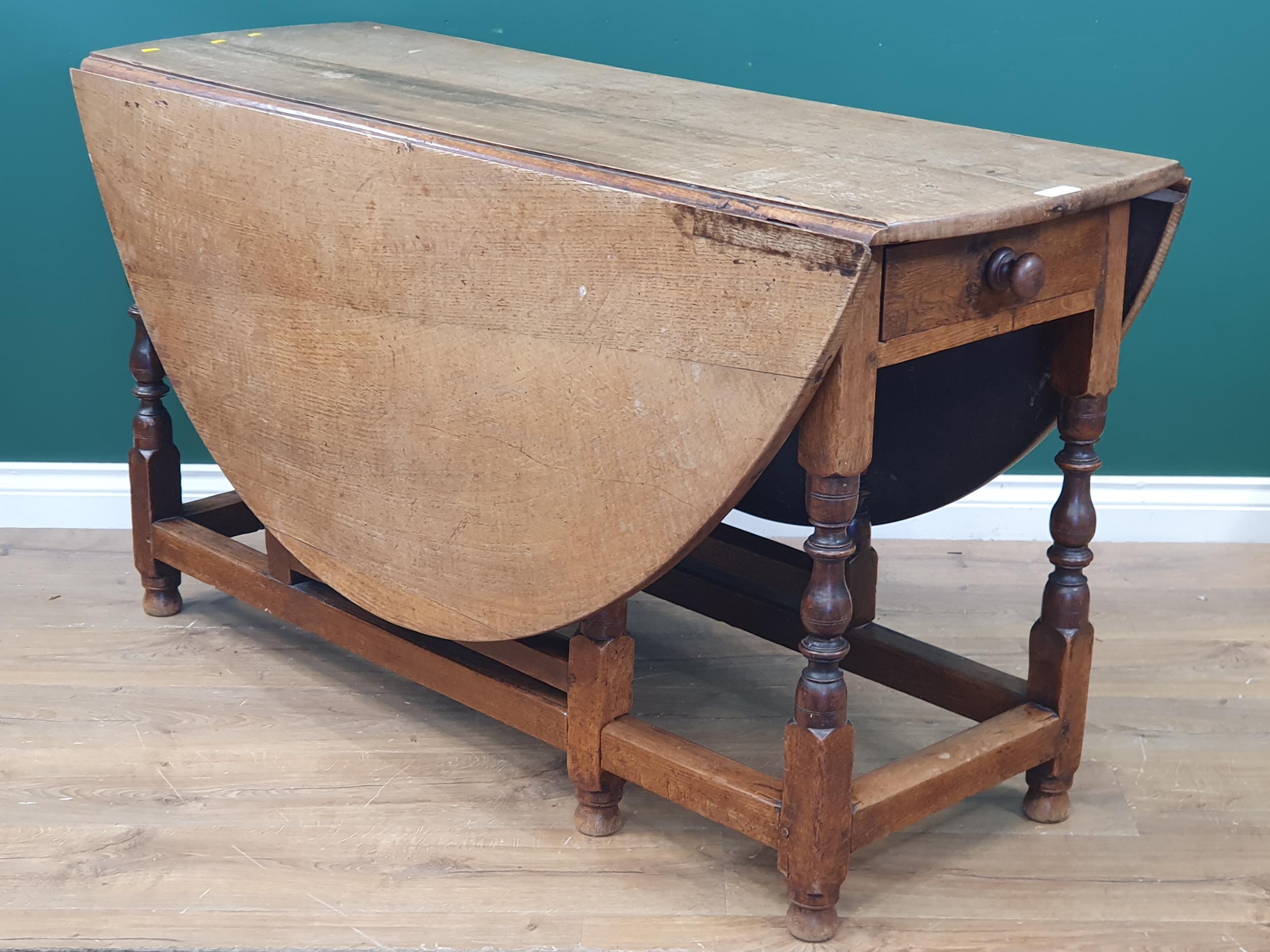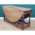 An early 18th Century oak Gateleg Table, with two fitted drawers and raised on turned supports united by stretchers. (R6).