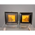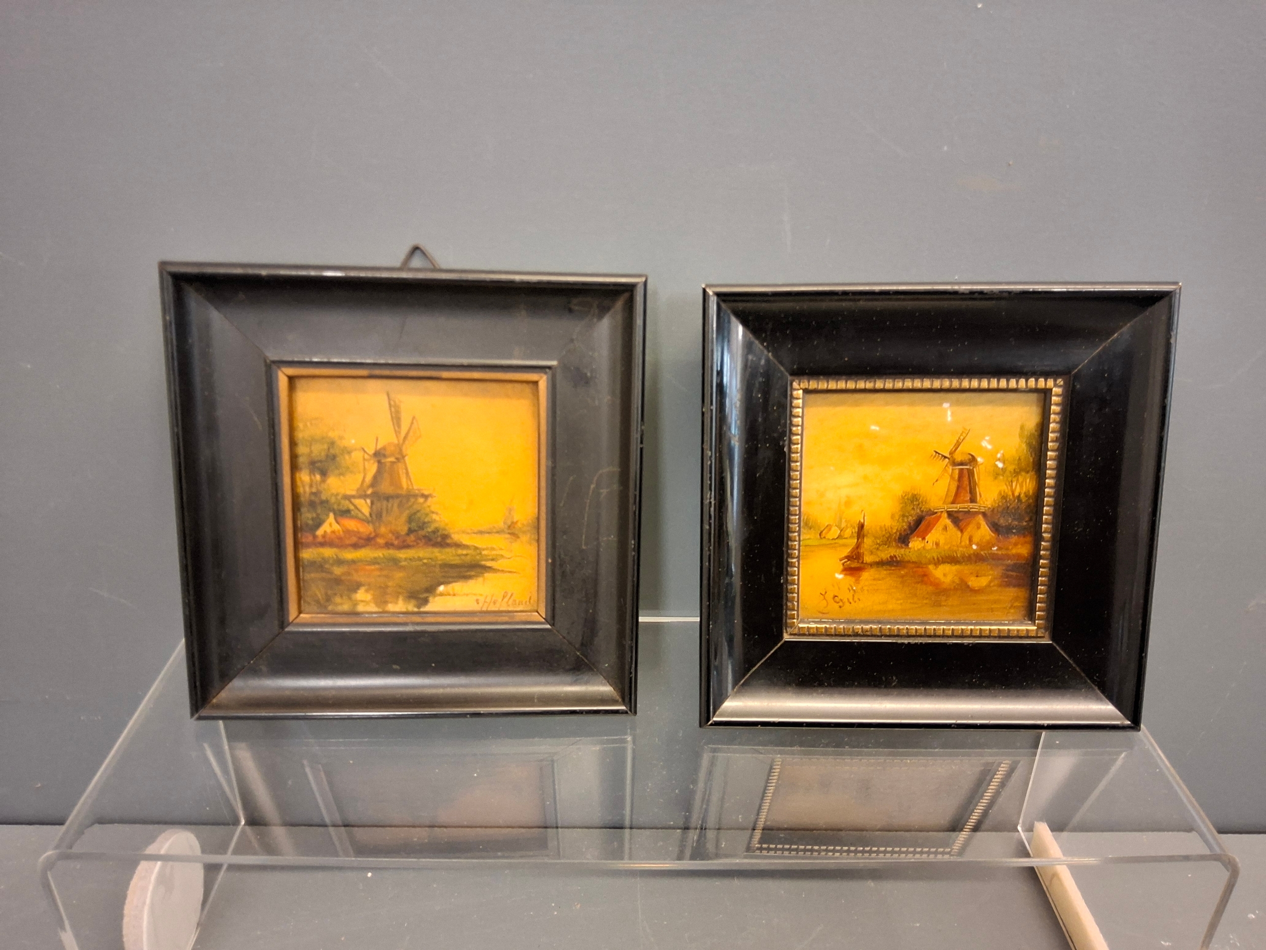 Two Dutch late 19th early 20th century hand painted tiles in frames which measure 12.5cm x 12.5cm