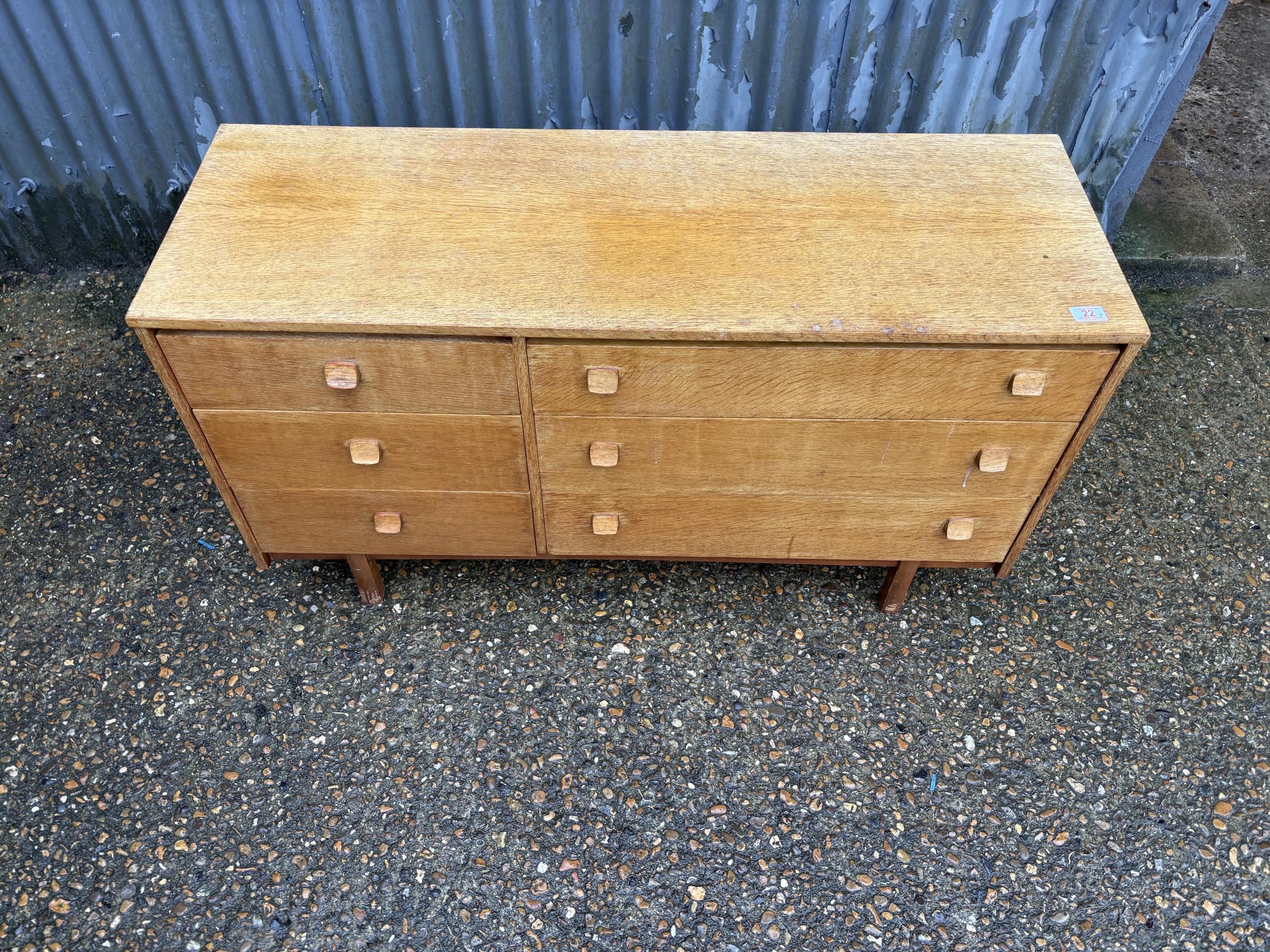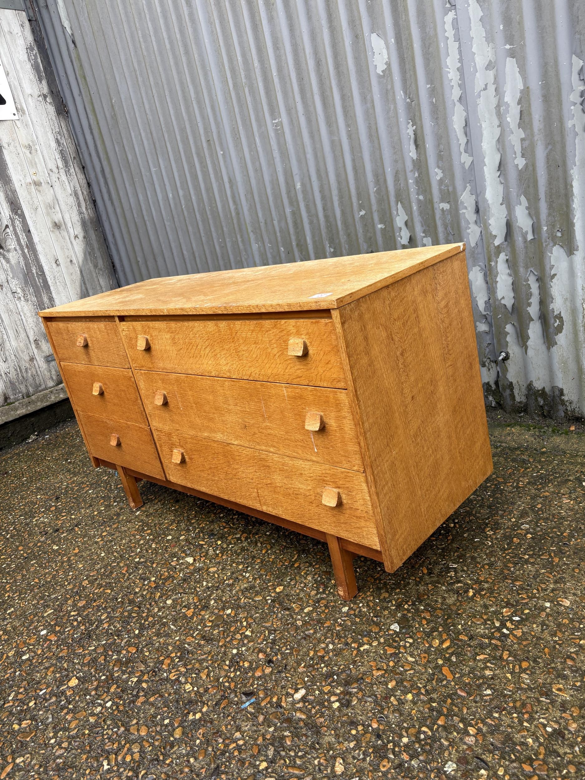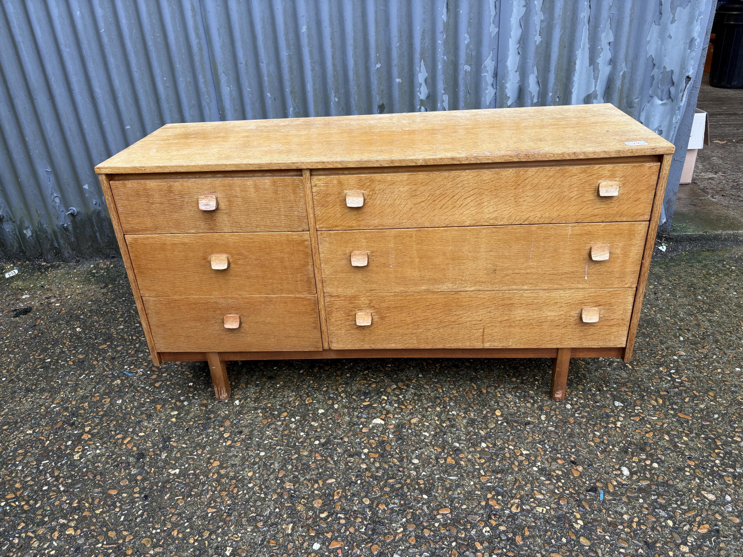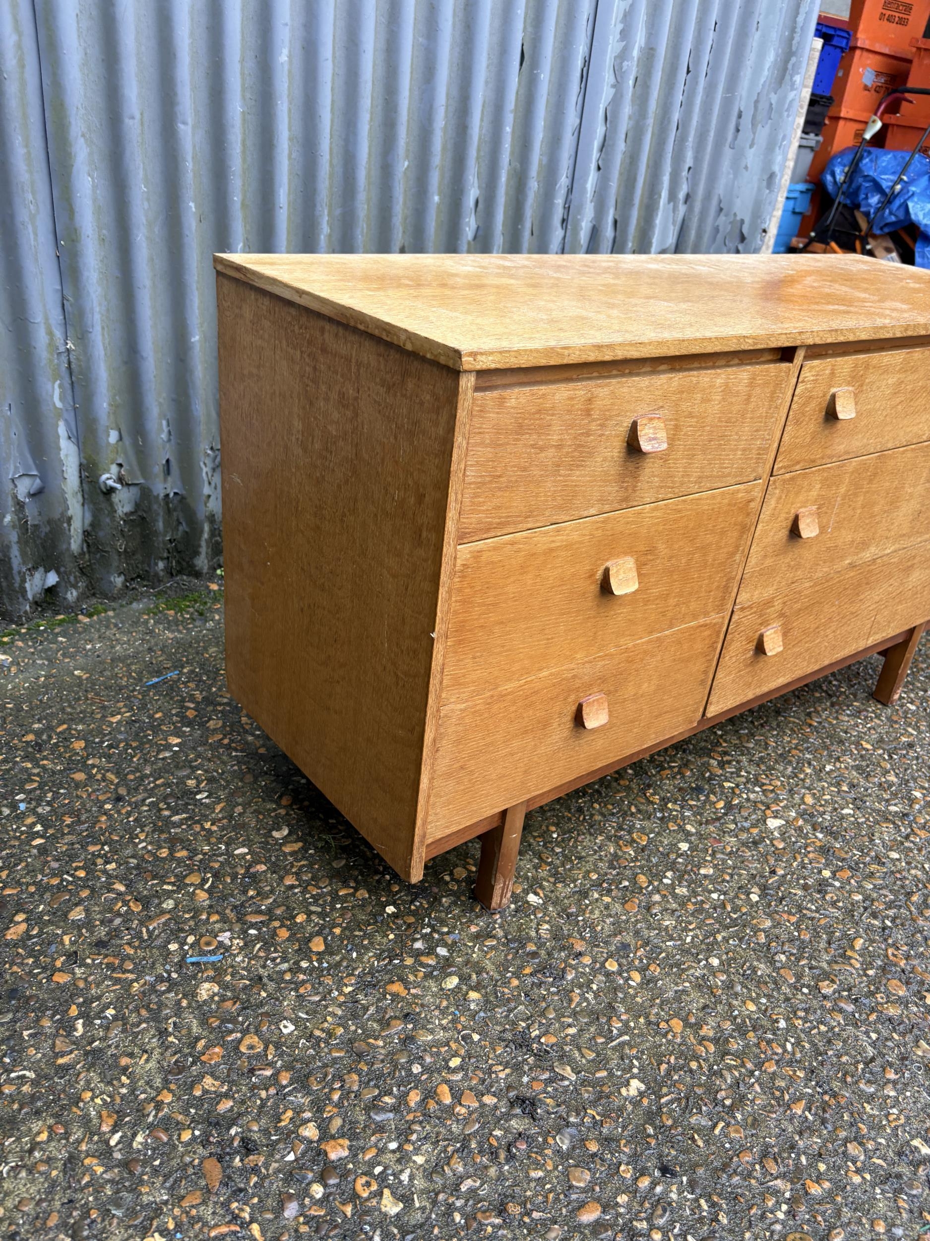 A retro light oak lowboy chest of drawers 120x42x70