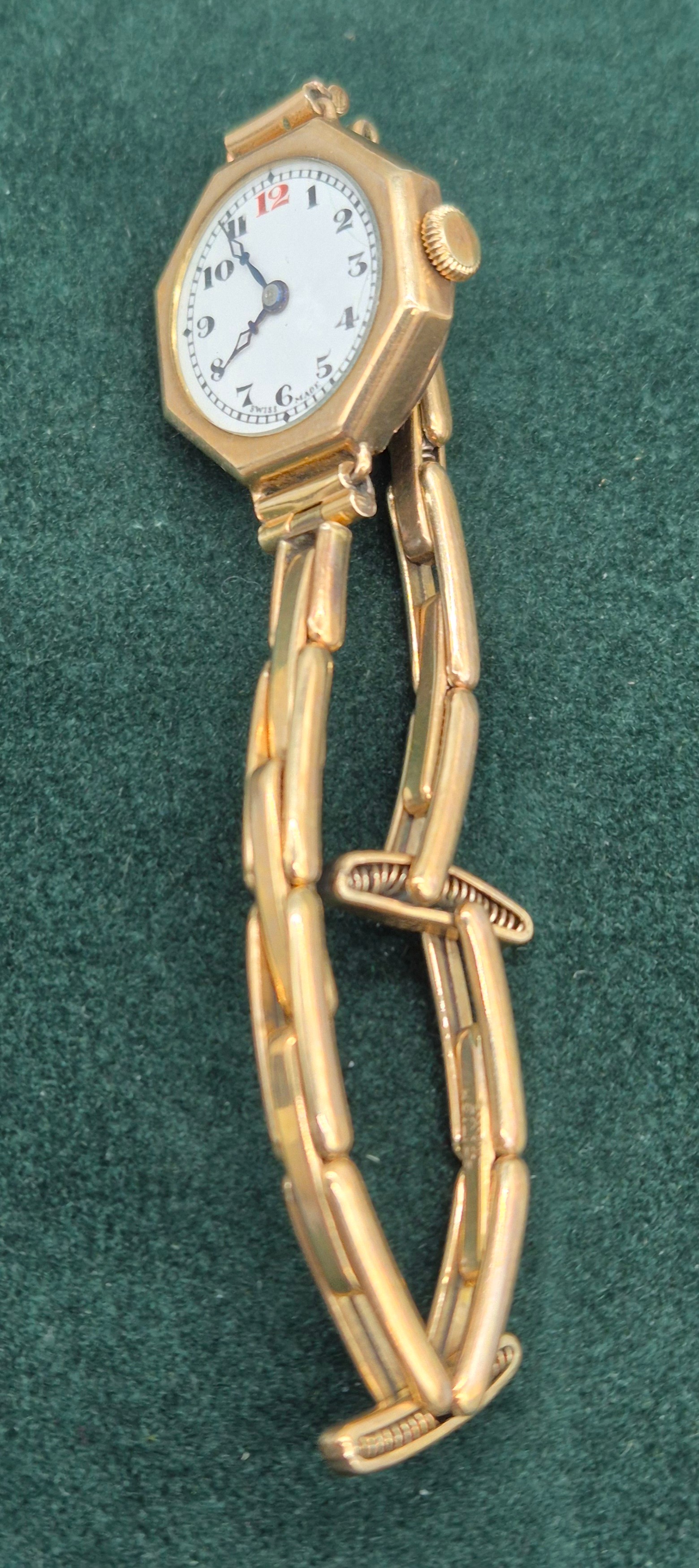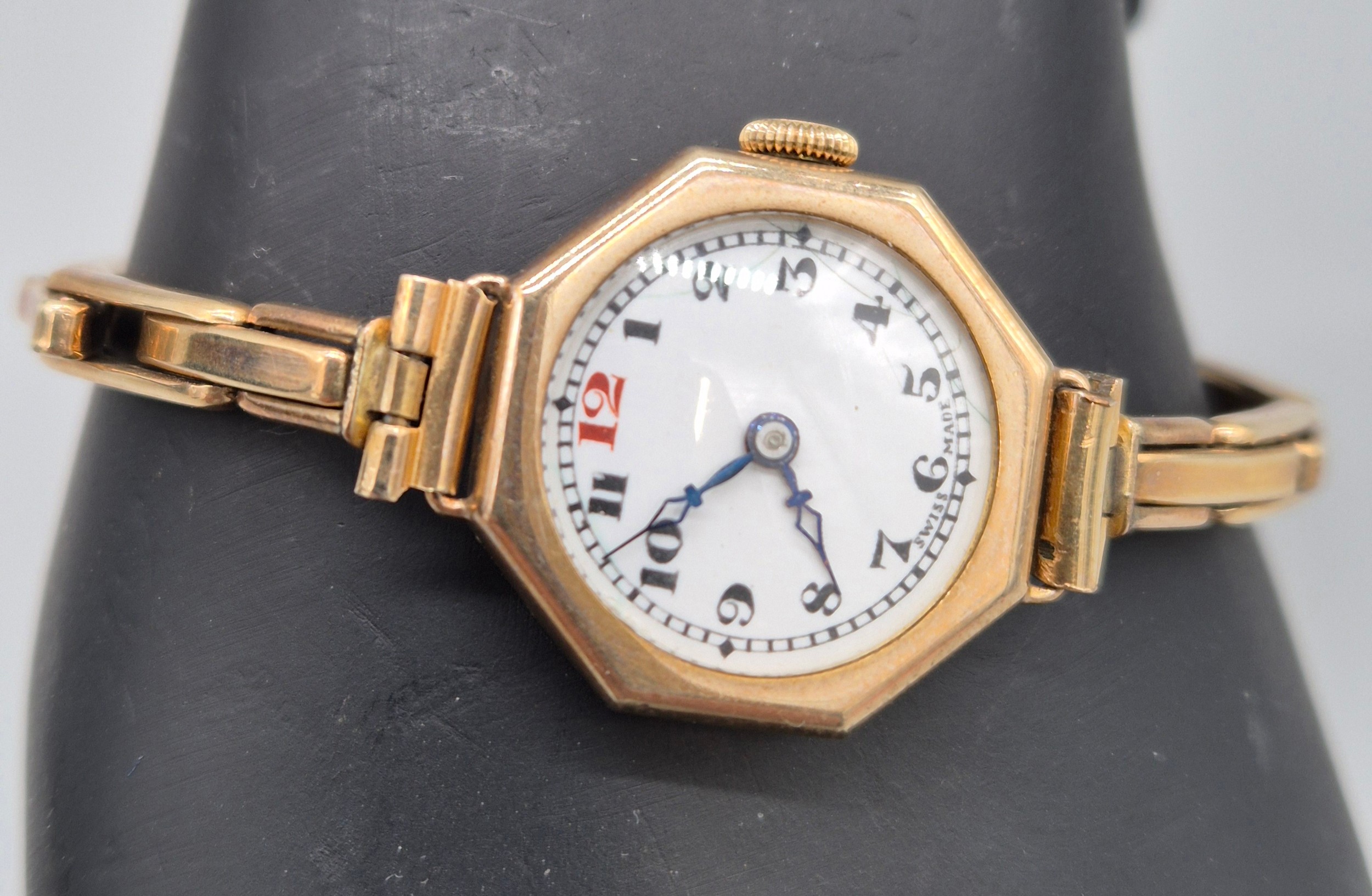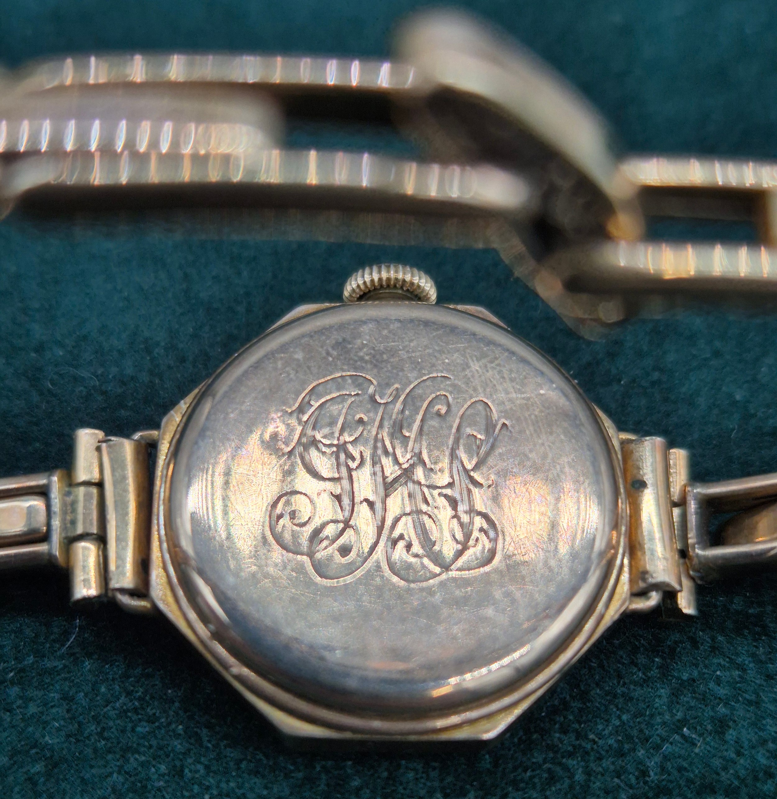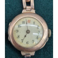 Vintage Bernex No.2 9ct gold cased watch fitted with a rolled gold elasticated wrist band. 15 jewels, 17971 serial number.