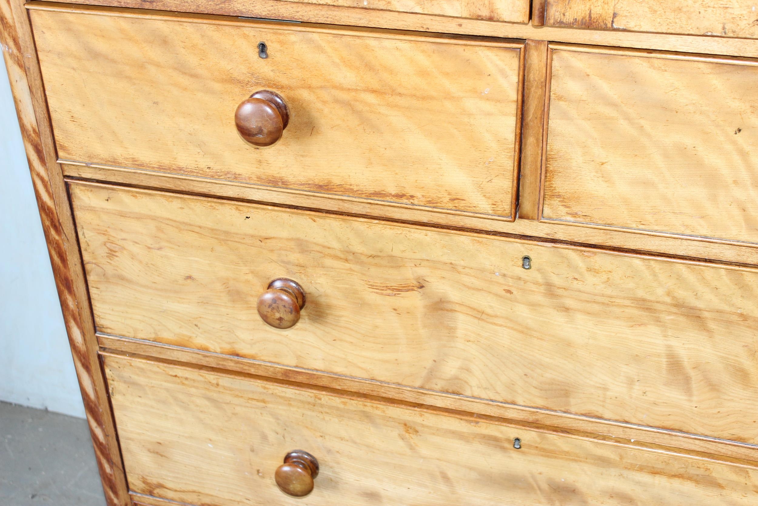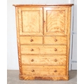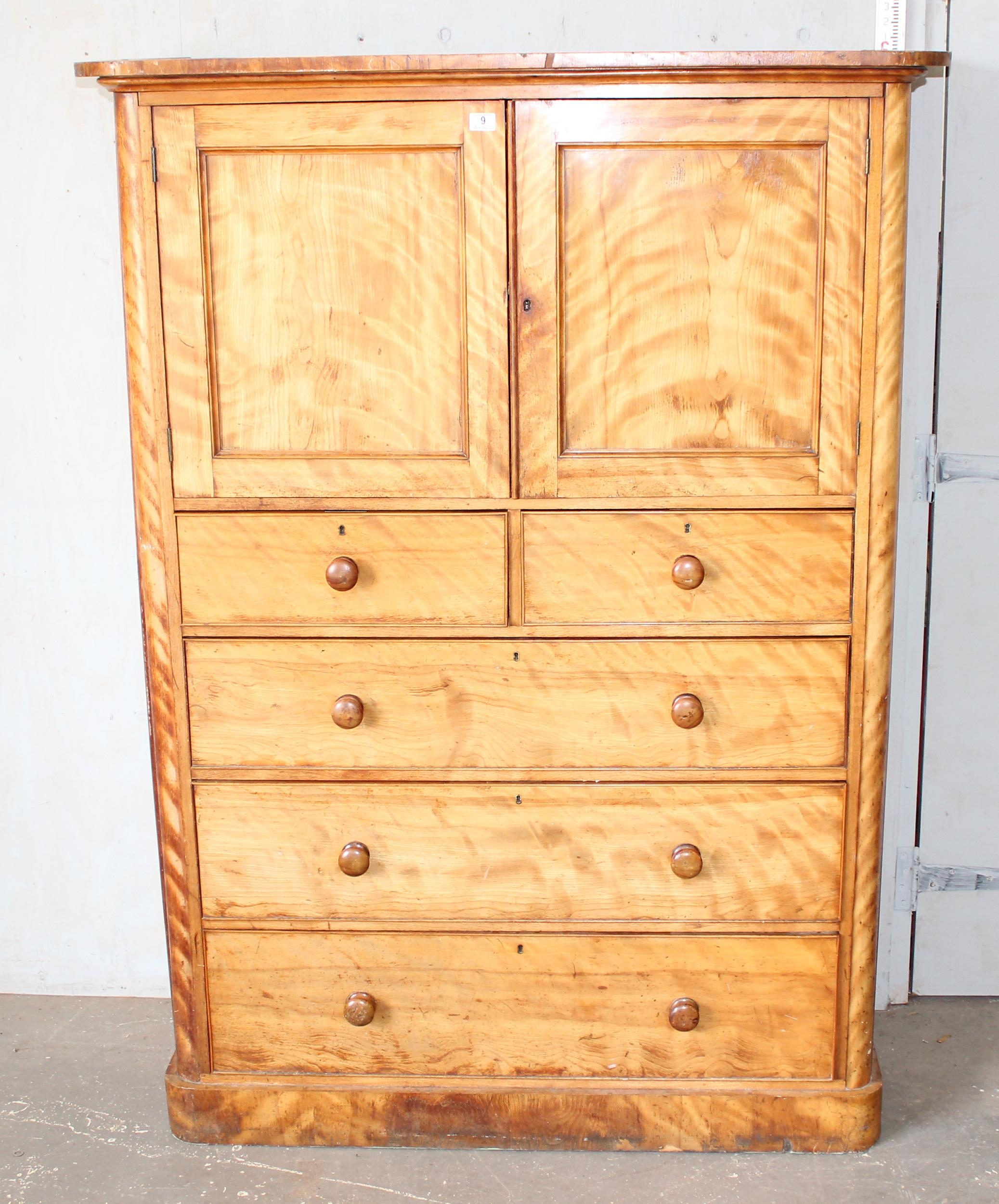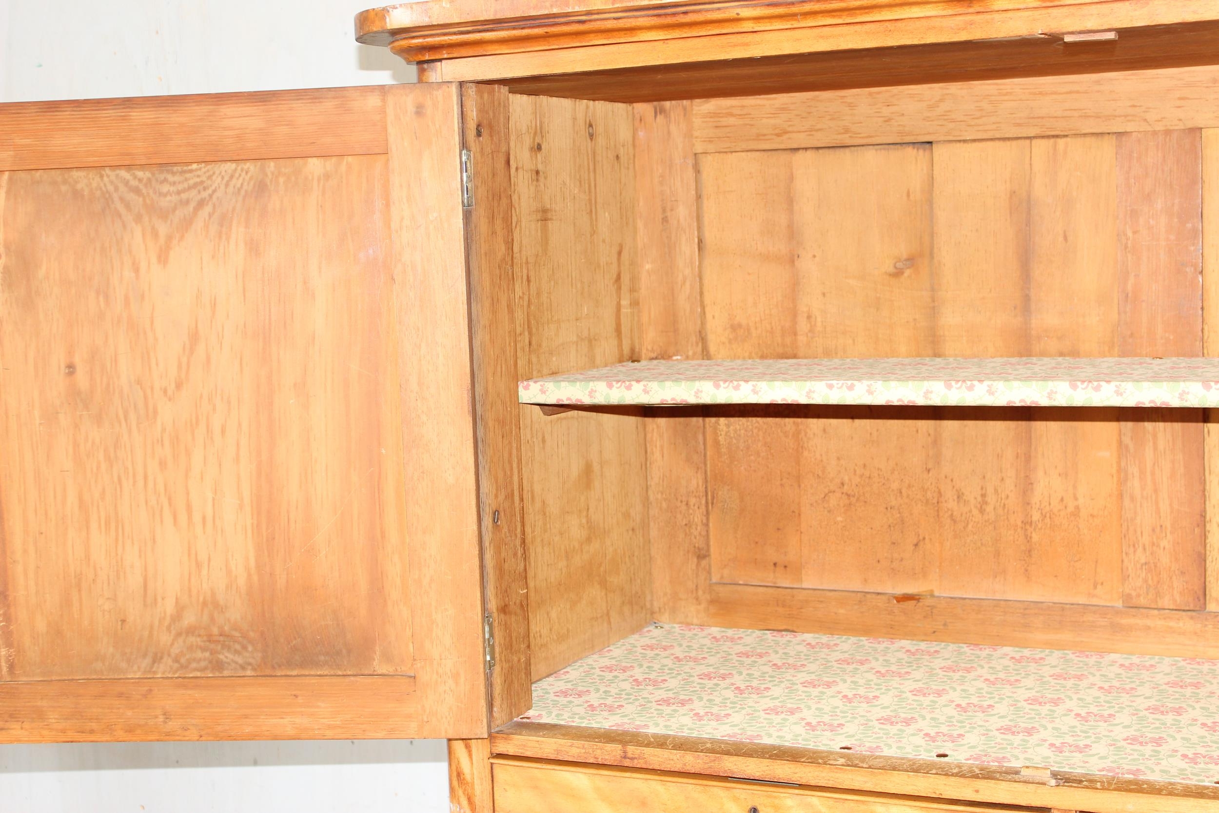 An antique satinwood linen press type cupboard standing on over 2/3 drawers