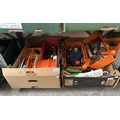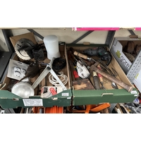 2 Boxes containing a cable reel and assorted tools