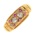 A ruby and diamond ring, c1900, in gold, unmarked, 2.9g, size M