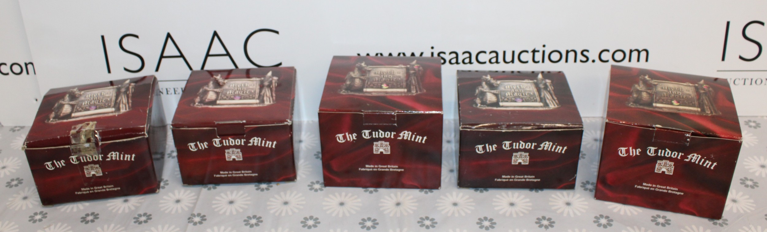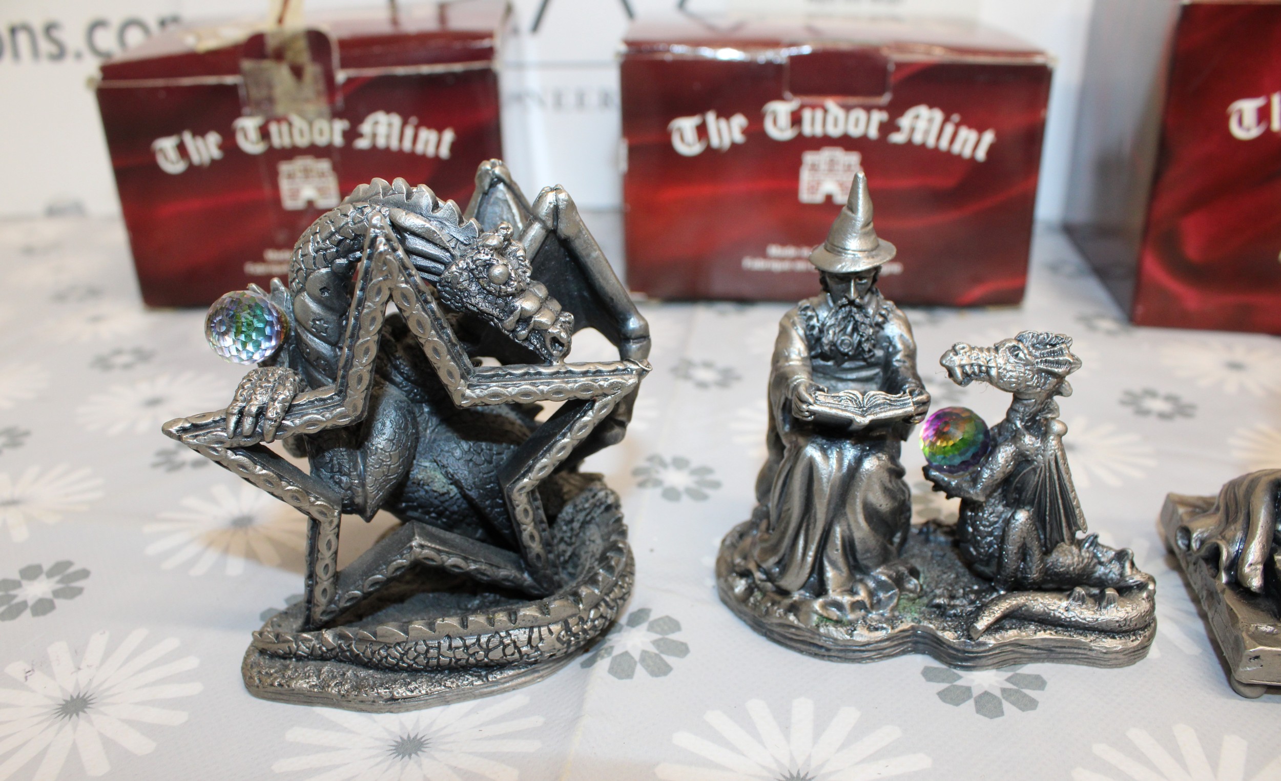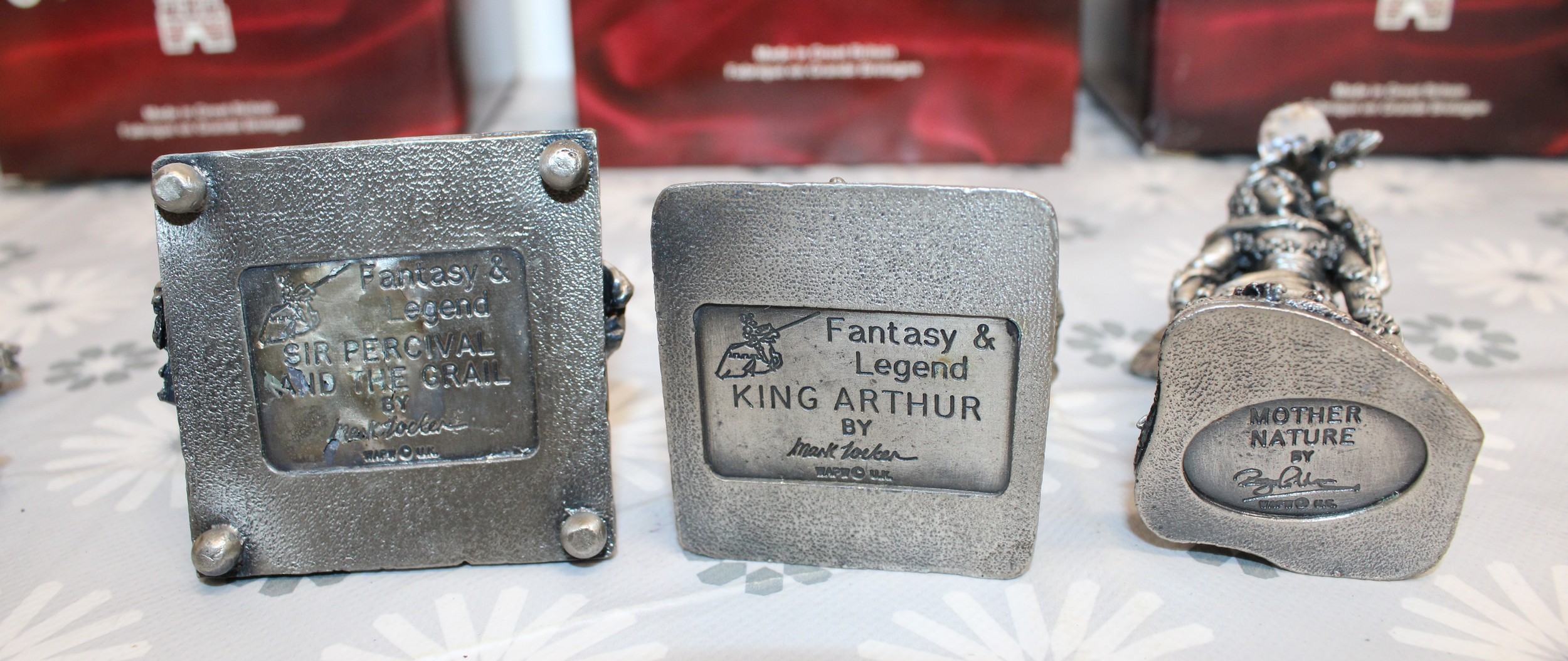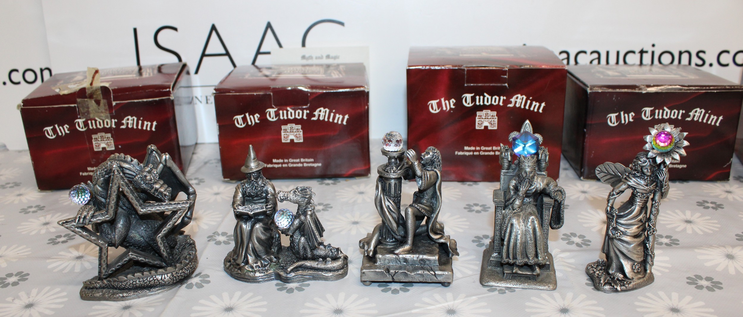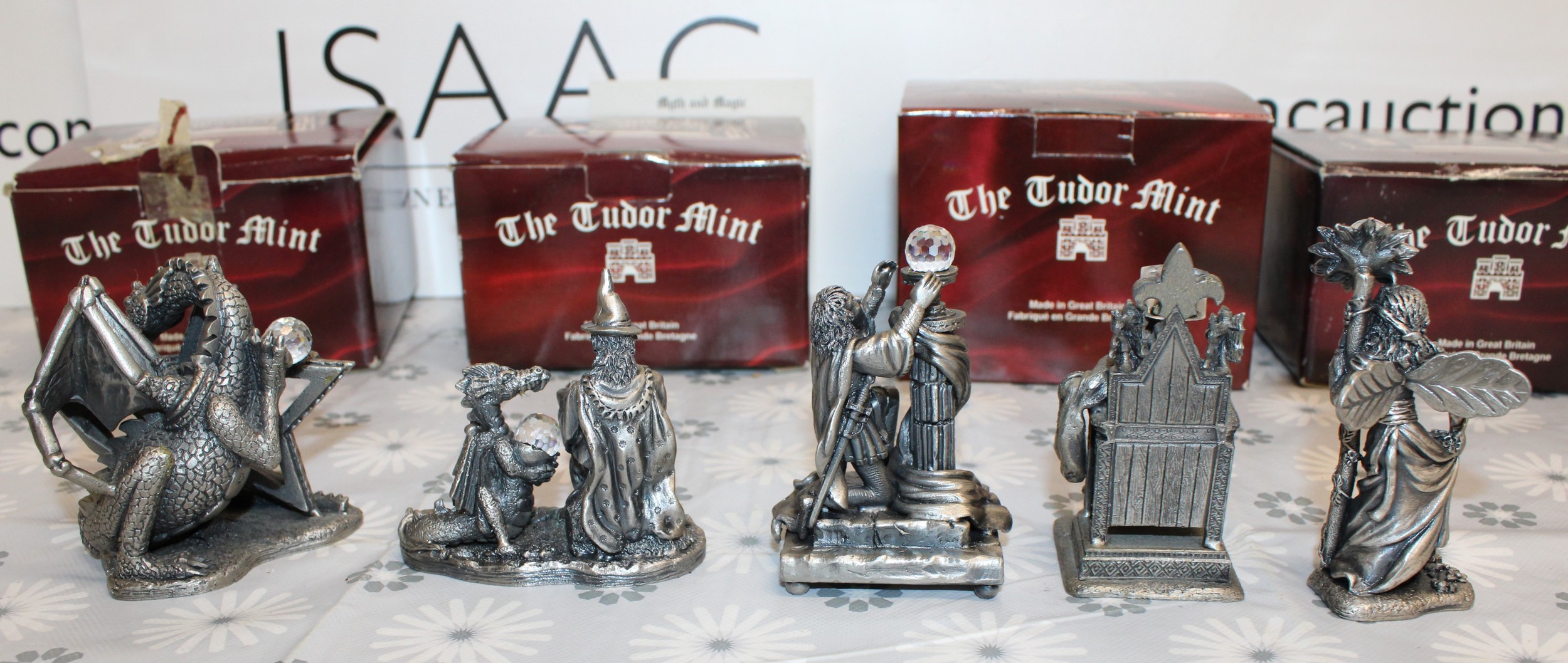 5 x Boxed Myth And Magic Collectables Figurines By The Tudor Mint Inc: The Dragon Of The Stars/Runelore/Fantasy & Legend Sir Percival And The Grail/Fantasy & Legend King Arthur And Mother Nature As Shown