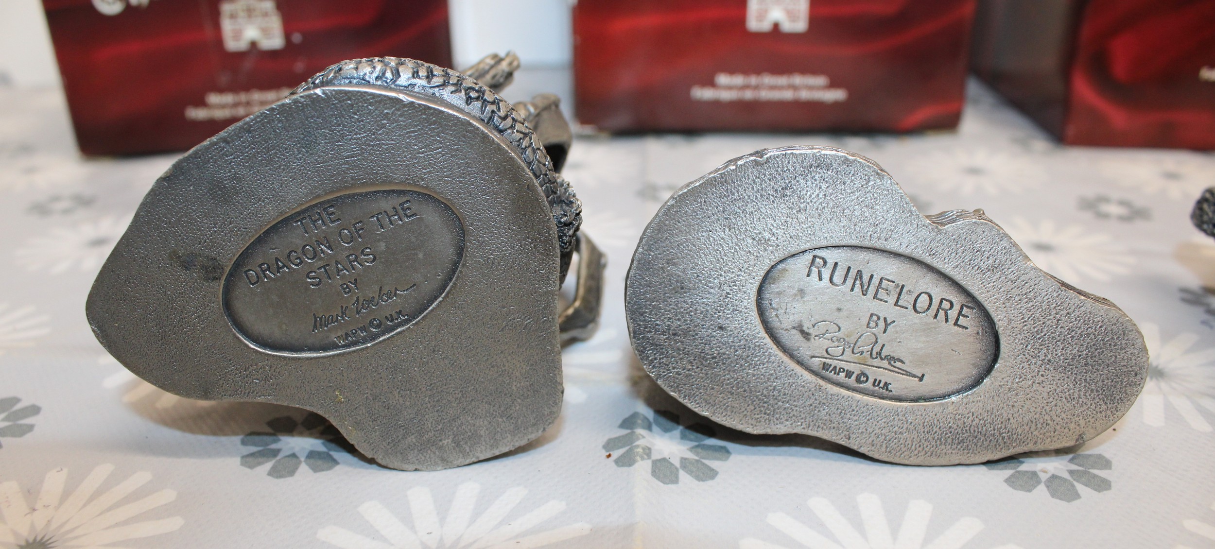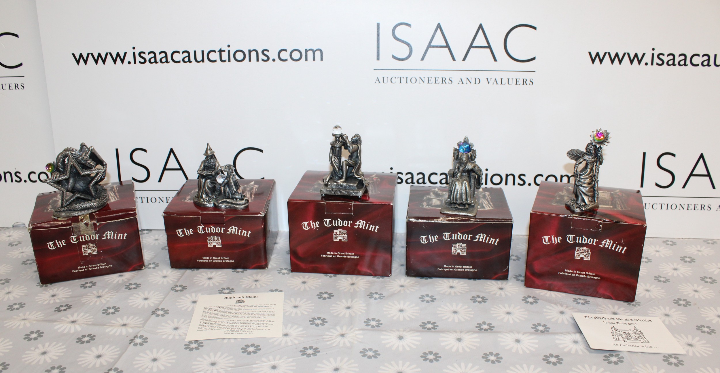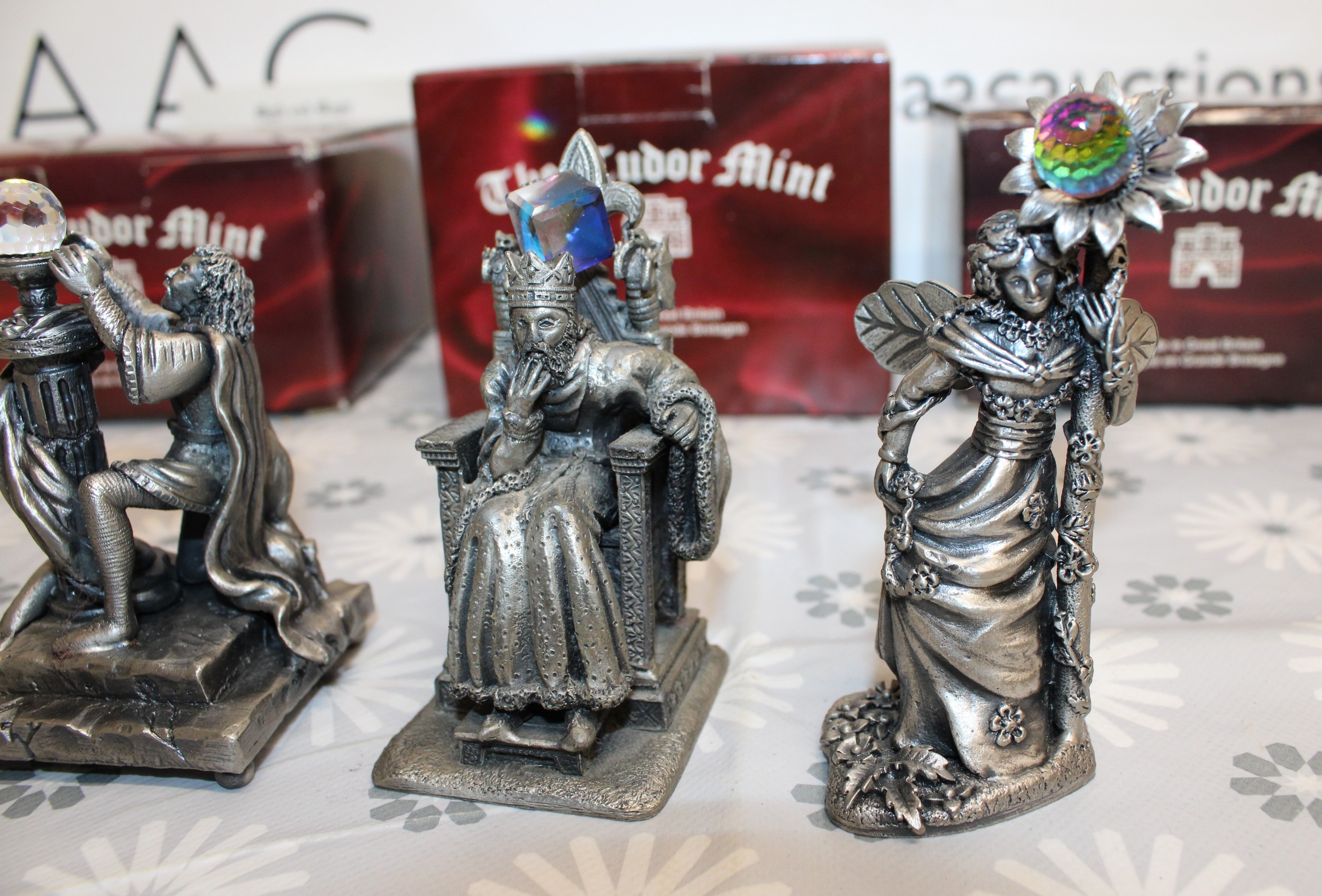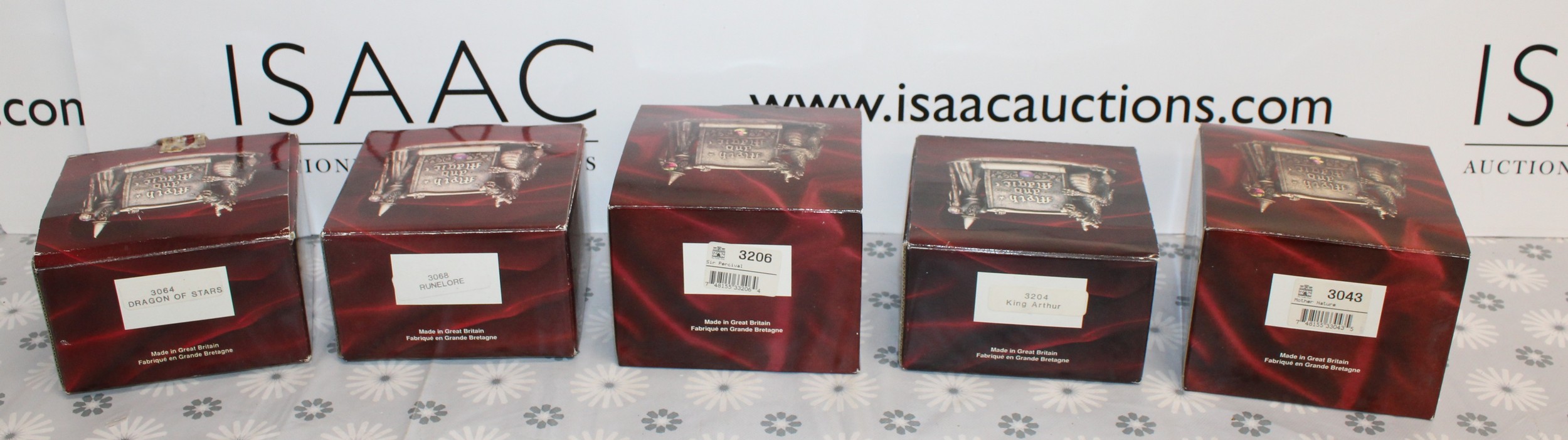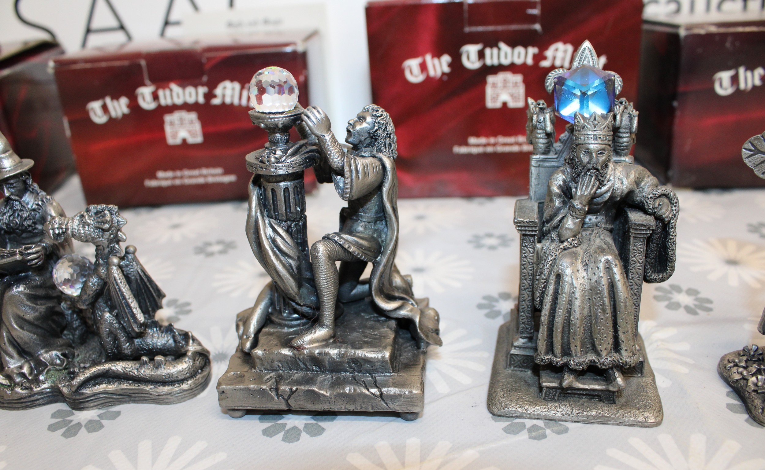 5 x Boxed Myth And Magic Collectables Figurines By The Tudor Mint Inc: The Dragon Of The Stars/Runelore/Fantasy & Legend Sir Percival And The Grail/Fantasy & Legend King Arthur And Mother Nature As Shown