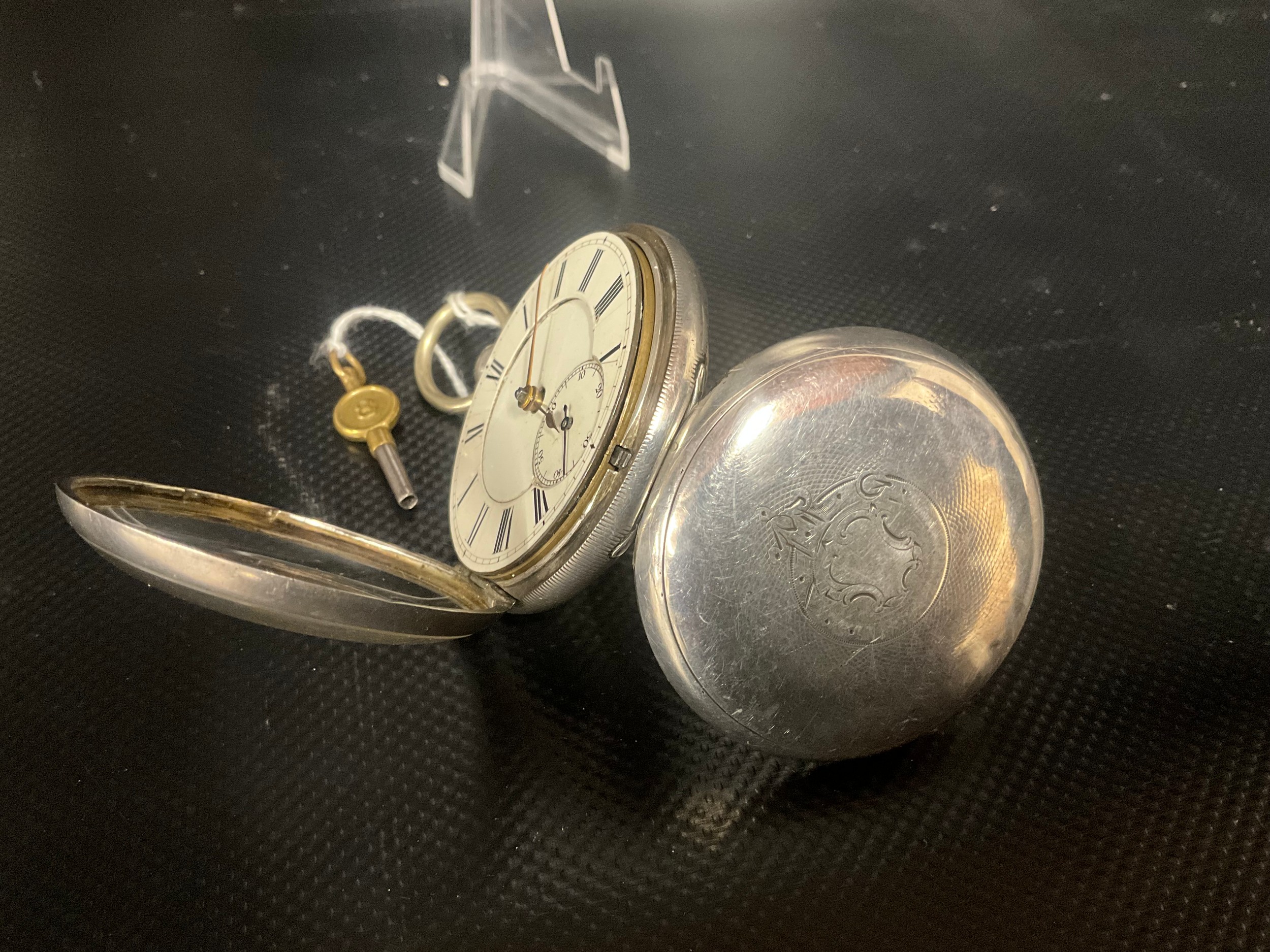 HALLMARK SILVER CASED VICTORIAN POCKET WATCH WITH KEY