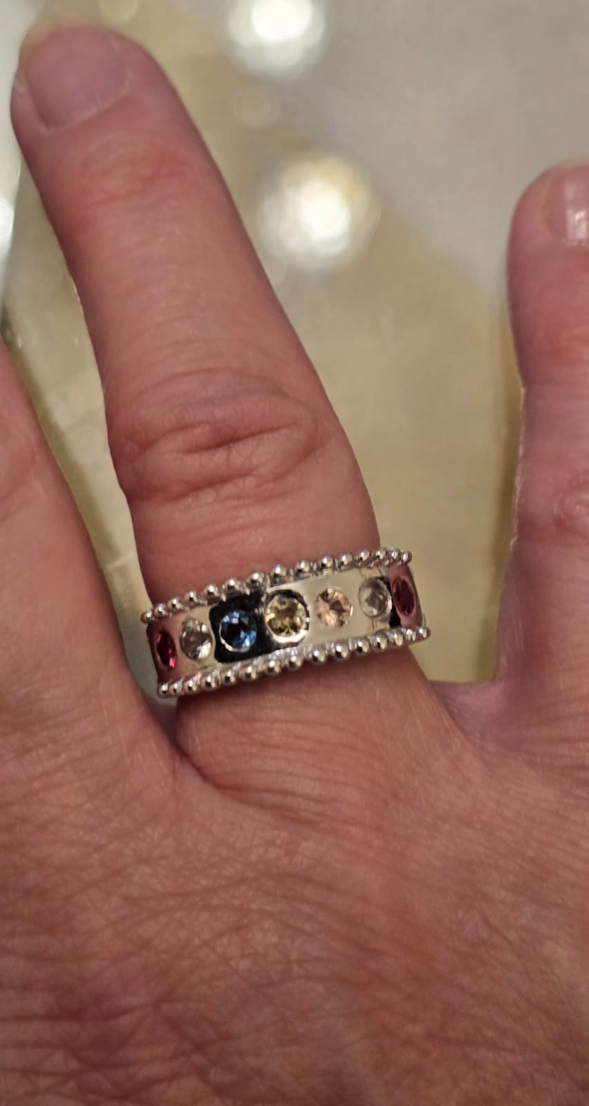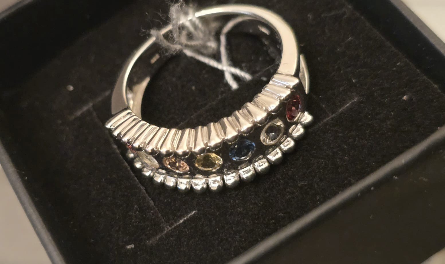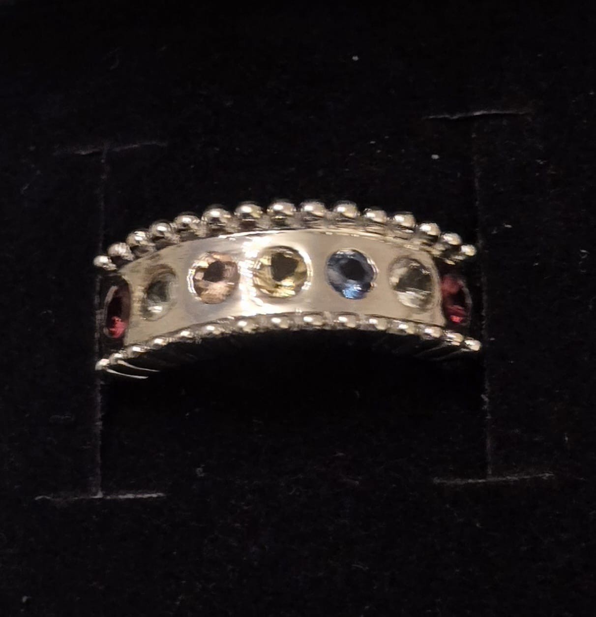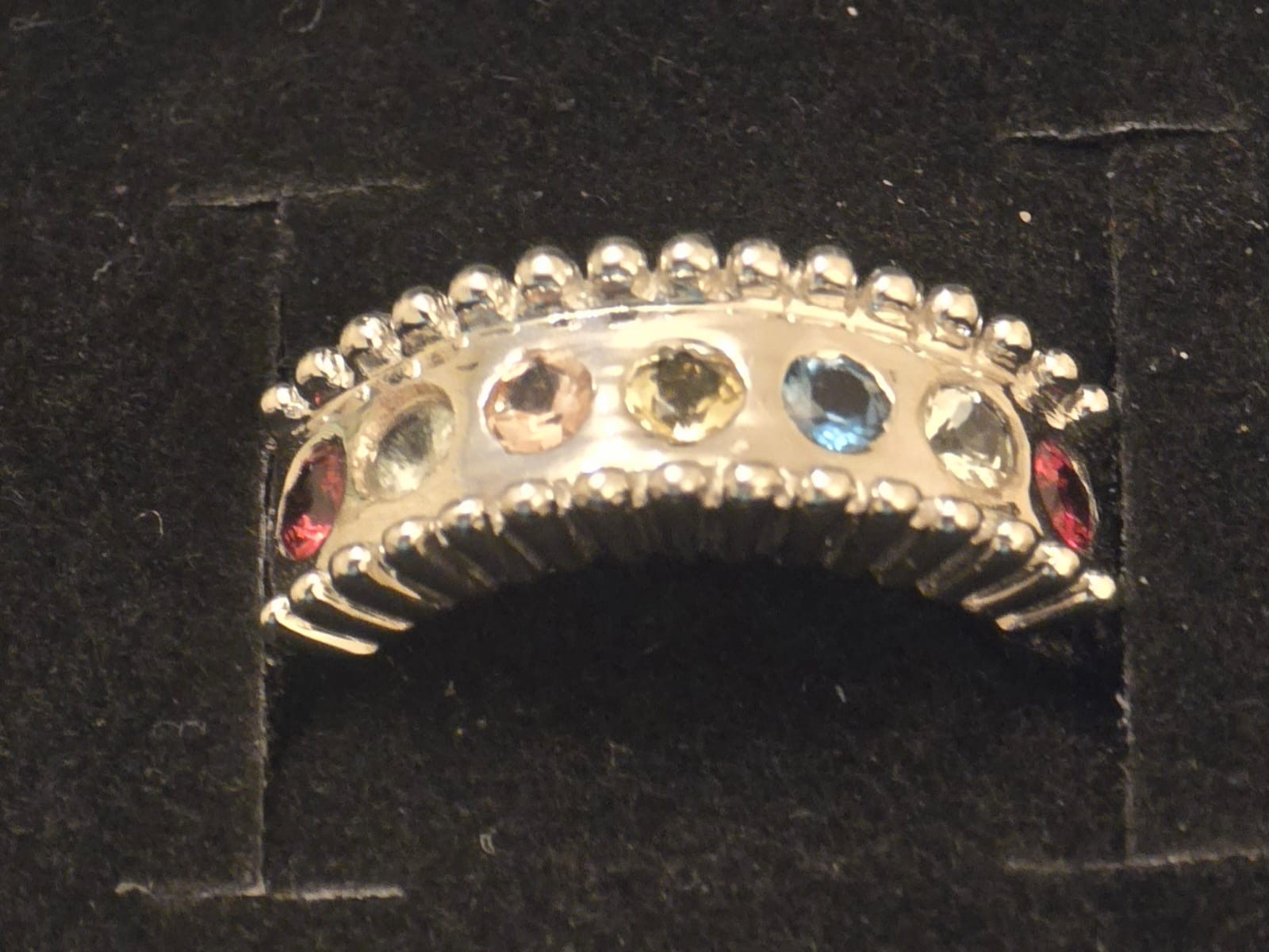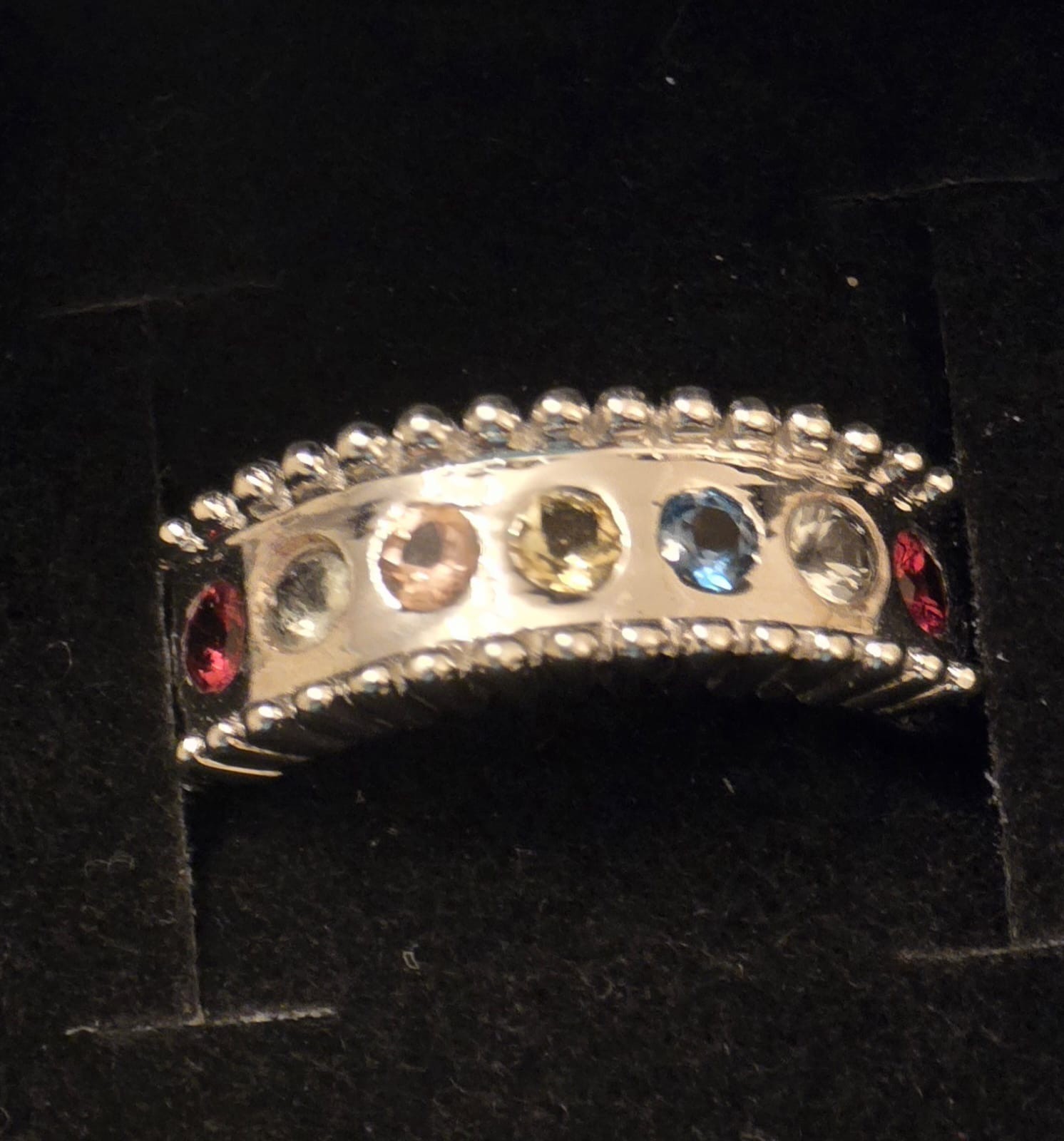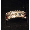 New Modern Style Sterling Silver & 7 Gem RingSize Q